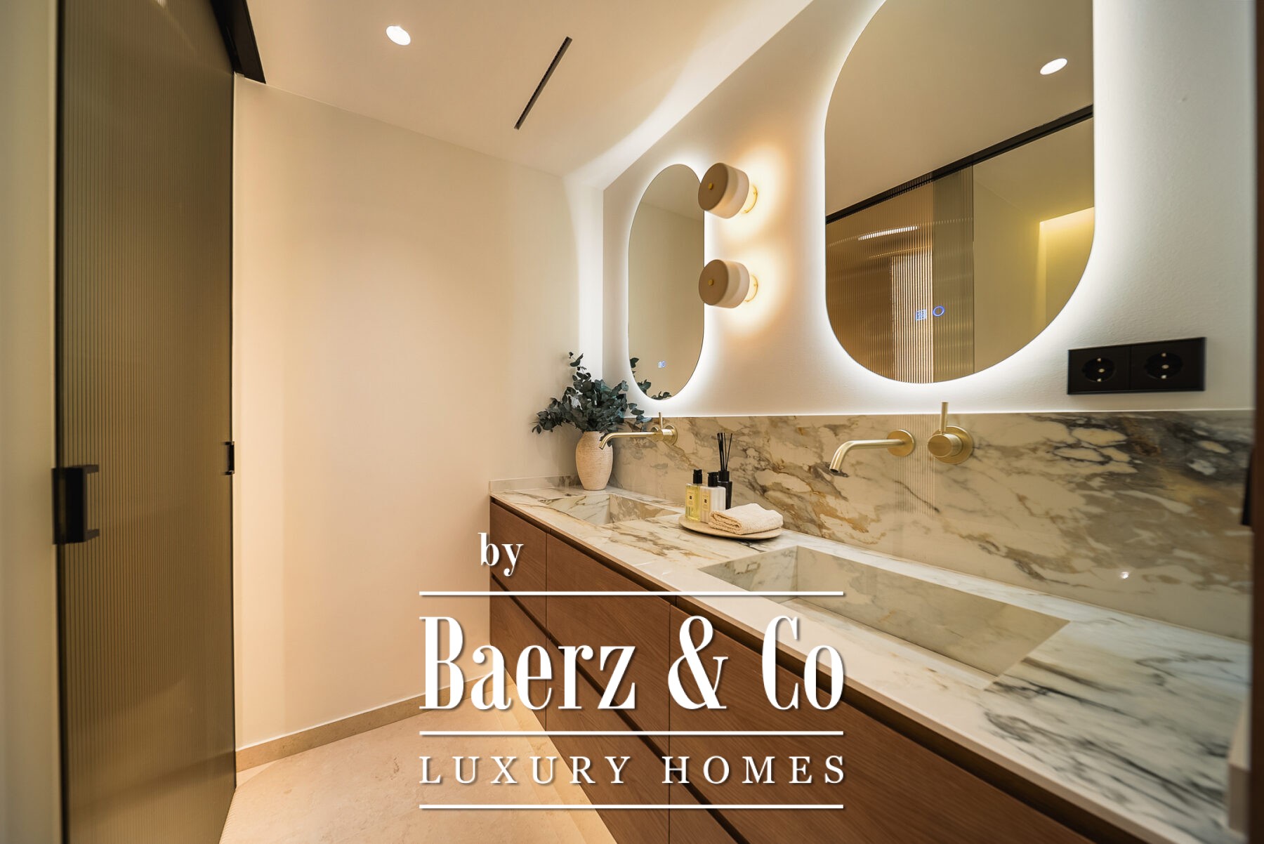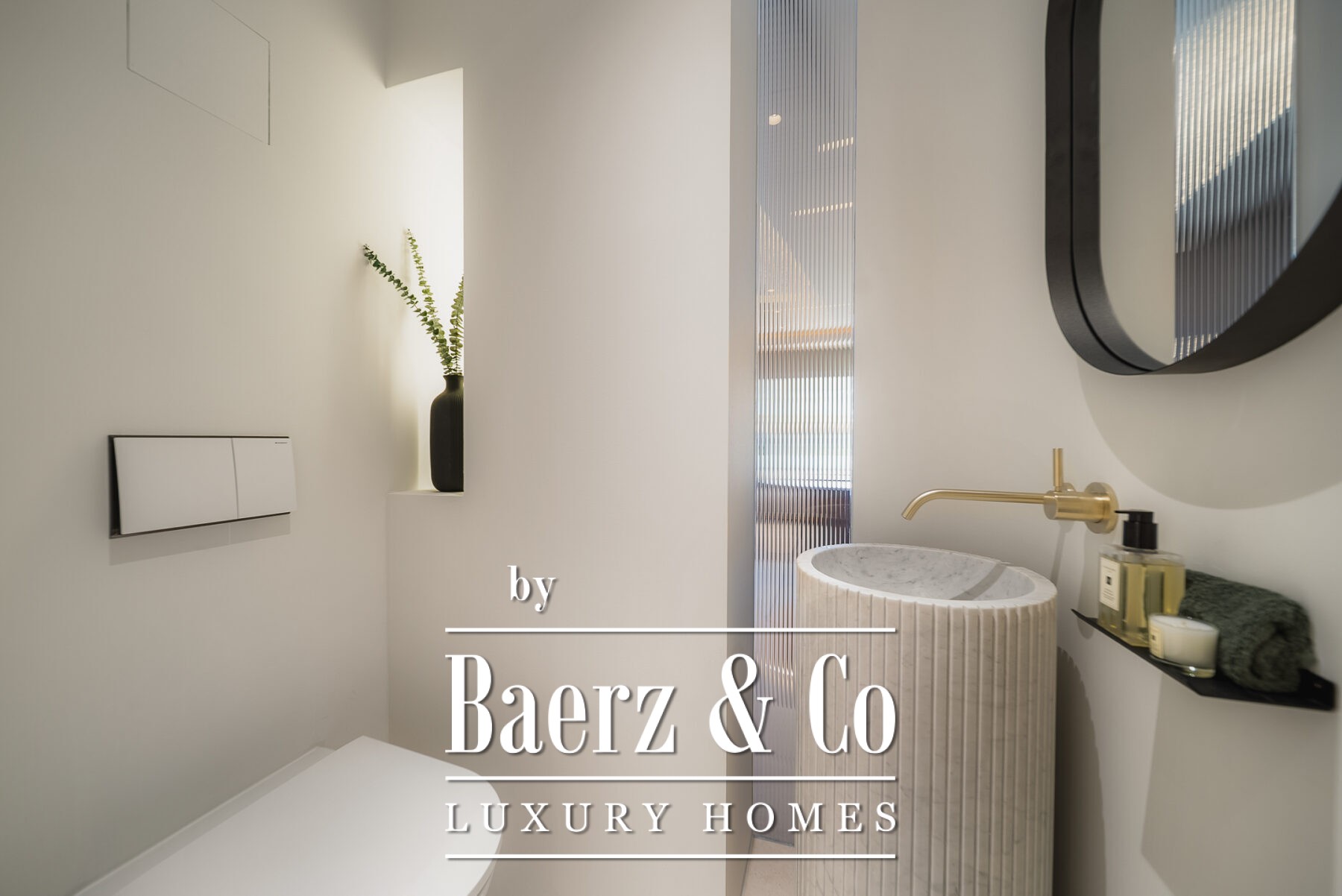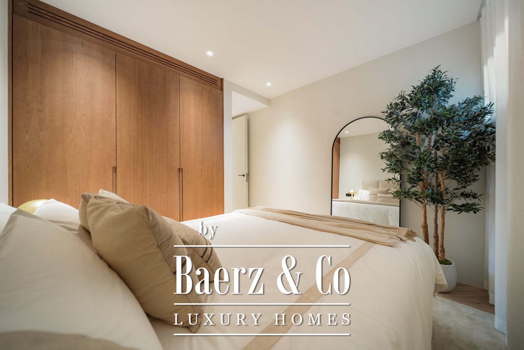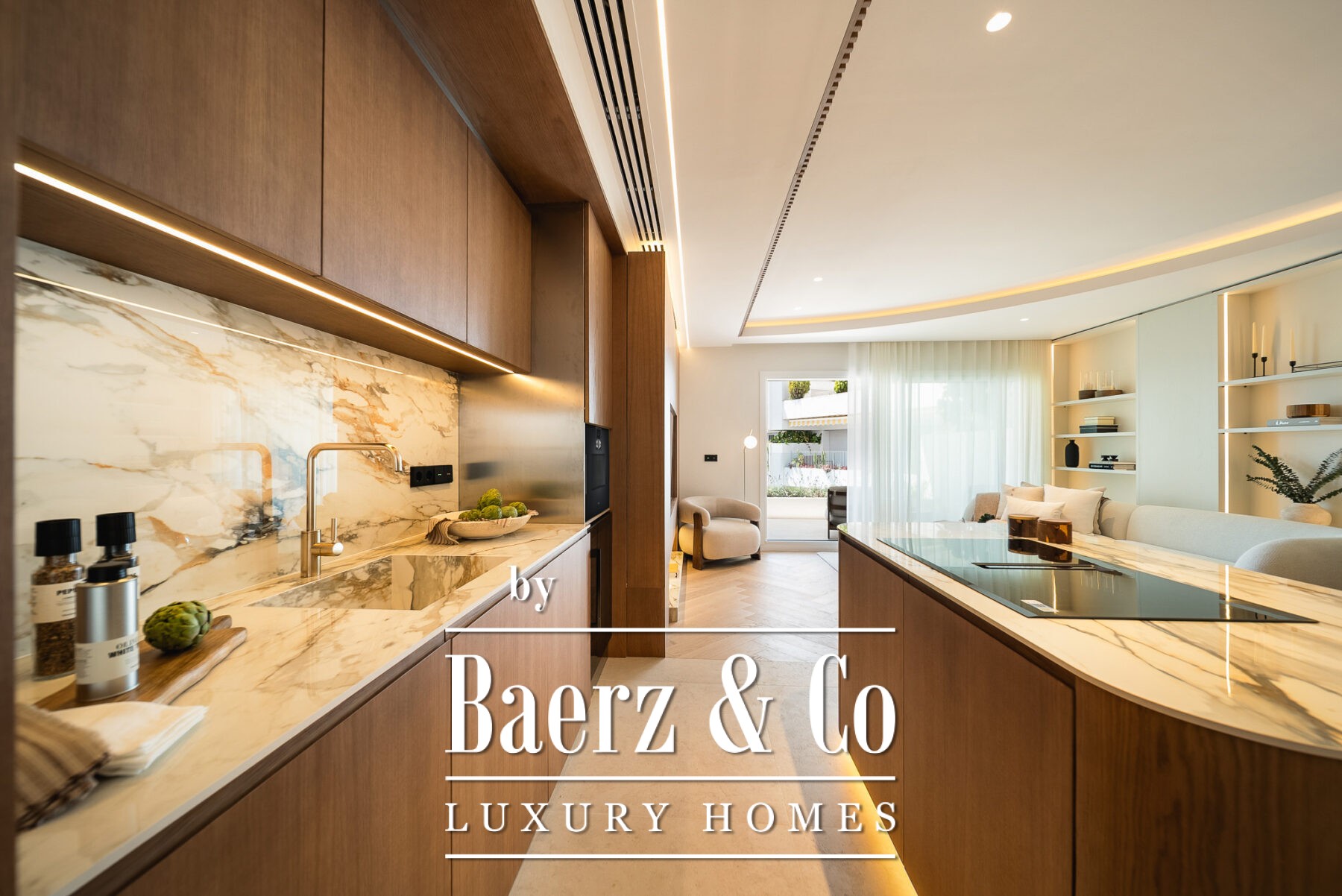 Διαμέρισμα Marbella Golden Mile με πανοραμική θέα στη θάλασσα, ένας προορισμός για όσους εκτιμούν τη θέση, το σχεδιασμό και την ευκολία. Αυτό το διαμέρισμα τριών υπνοδωματίων προσφέρει 110 m² προσεκτικά ανακαινισμένων εσωτερικών χώρων και βεράντα 20 m², ανοιχτή σε πανοραμικές θαλασσινές όψεις. Οι κύριοι χώροι διαβίωσης διαμορφώνονται για ηρεμία και άνεση, με δάπεδα από ψαροκόκαλο BOEN, ηλεκτρικές συσκευές Gaggenau και Siemens, καθώς και αυτοματισμούς έξυπνης κατοικίας. Τα μπάνια διαθέτουν επιλεγμένα είδη υγιεινής Dornbracht, επιβεβαιώνοντας τη σταθερή επένδυση στην ποιότητα.