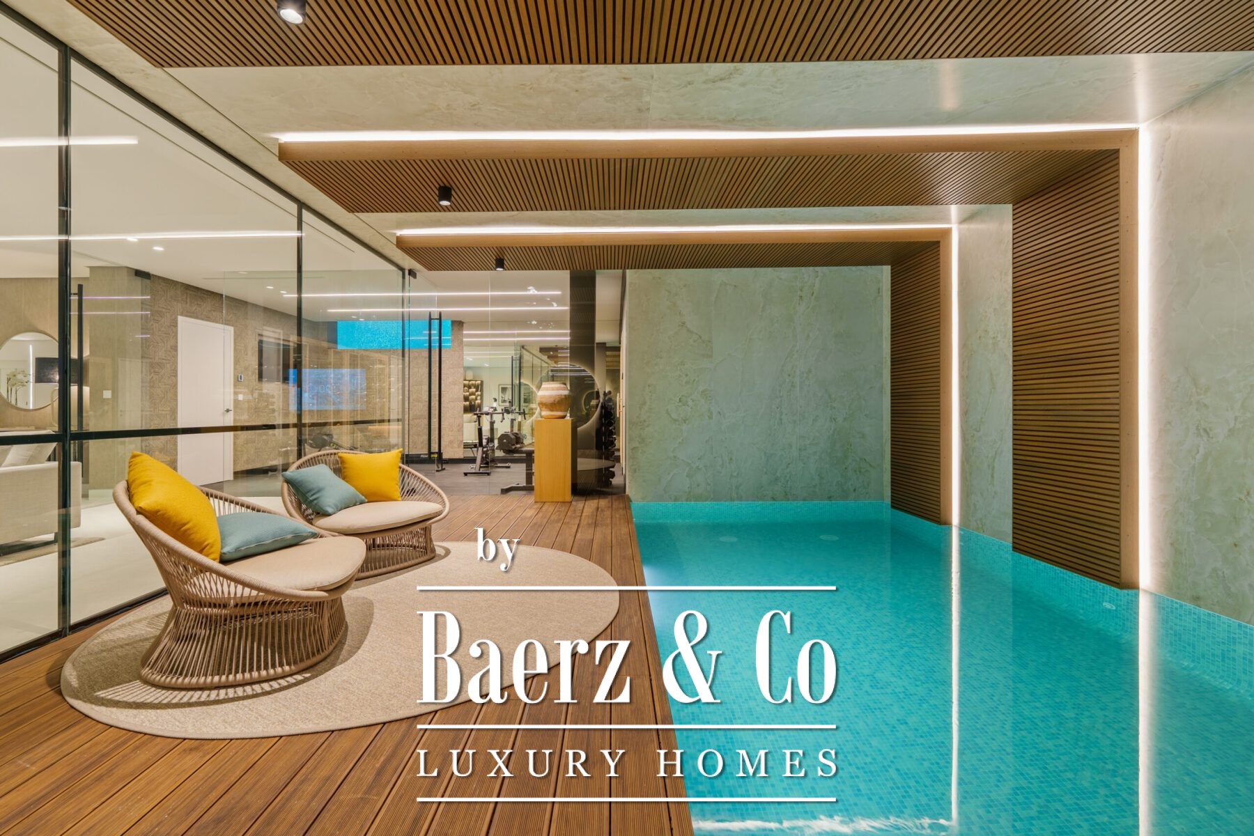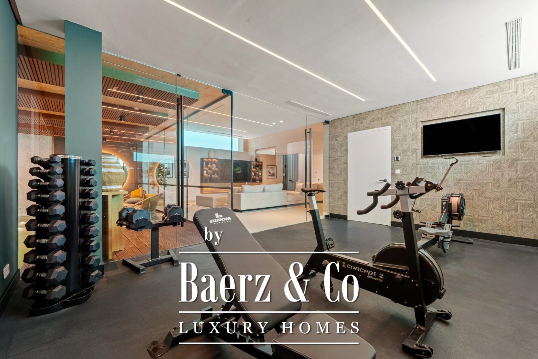Η βίλα είναι σχεδιασμένη τόσο για καθημερινή ζωή όσο και για εκλεπτυσμένη φιλοξενία, με πολλαπλούς χώρους lounge και υπαίθριες ζώνες τραπεζαρίας. Ένα αποκλειστικό επίπεδο ψυχαγωγίας προσφέρει οικιακό γυμναστήριο, σπα με σάουνα, εσωτερική πισίνα και ευέλικτο χώρο ψυχαγωγίας — ιδανικό για οικιακό σινεμά, παιχνίδια ή κοινωνικές συγκεντρώσεις. Προσεγμένες παροχές όπως ανελκυστήρας, κελάρι κρασιών και κορυφαία συστήματα ασφαλείας αναδεικνύουν τον σύγχρονο χαρακτήρα της.