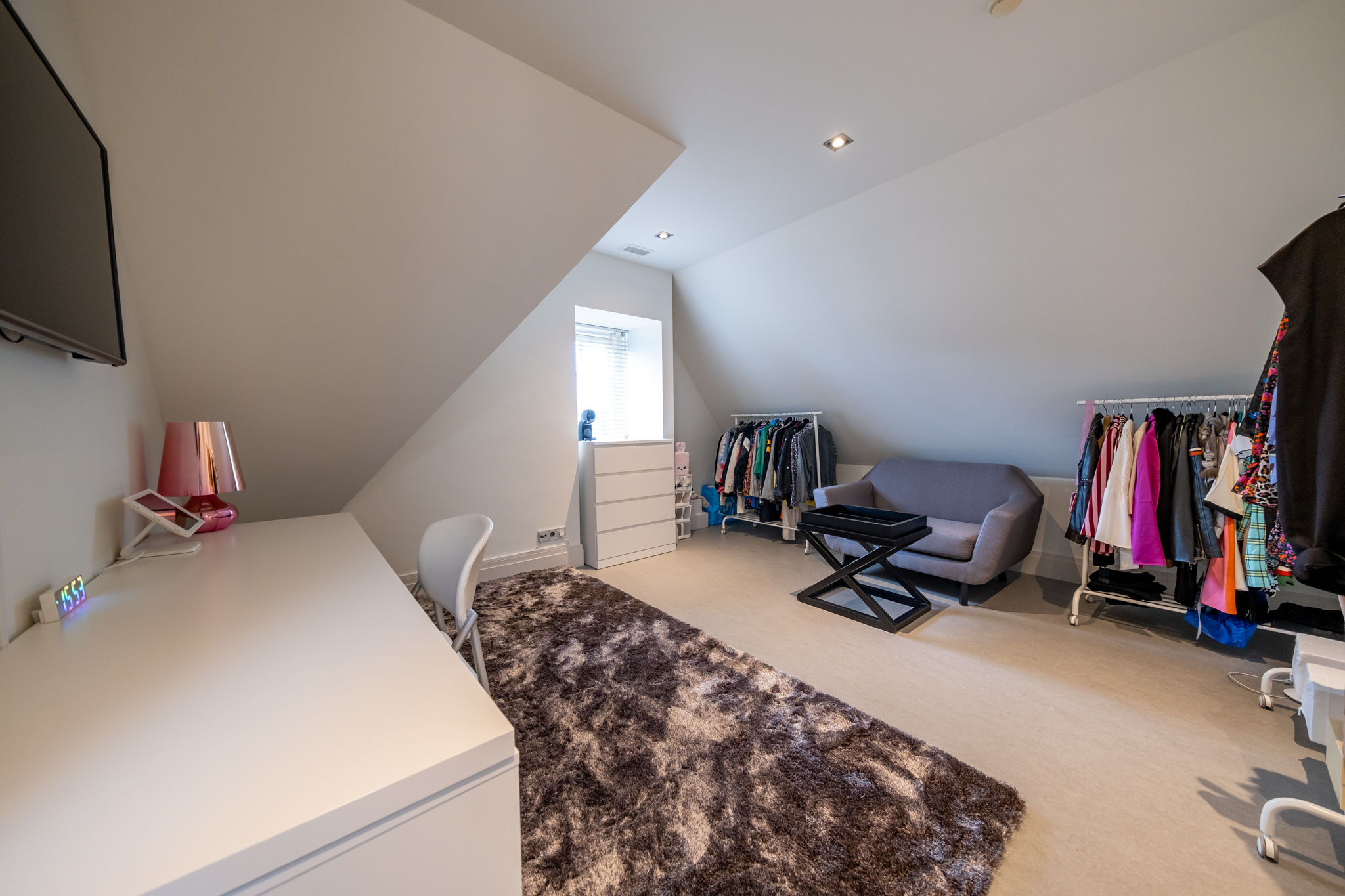 Κατά την είσοδο, το επιβλητικό χολ και η εντυπωσιακή σκάλα θέτουν το ύφος, οδηγώντας σε έναν χώρο σαλονιού σε σχήμα L κάτω από υαλοσκεπείς πάνελ. Η designer κουζίνα Eggersman προσφέρει ένα γλυπτικό νησί μαγειρέματος, επιφάνειες Caesarstone και προηγμένες συσκευές Viking. Οκτώ υπνοδωμάτια και έξι μπάνια, σχεδιασμένα για ιδιωτικότητα και λειτουργικότητα, διαμορφώνουν μια οικογενειακή εστία με σουίτες επιπέδου ξενοδοχείου· μεταξύ αυτών, η κύρια σουίτα διαθέτει γκαρνταρόμπα, μπαλκόνι και δύο ιδιωτικά μπάνια. Δάπεδα από δρυς, εξατομικευμένη κεραμική και ένα κεντρικό σύστημα αυτοματισμού σπιτιού τονίζουν μία αίσθηση δεξιοτεχνίας και άνεσης.
