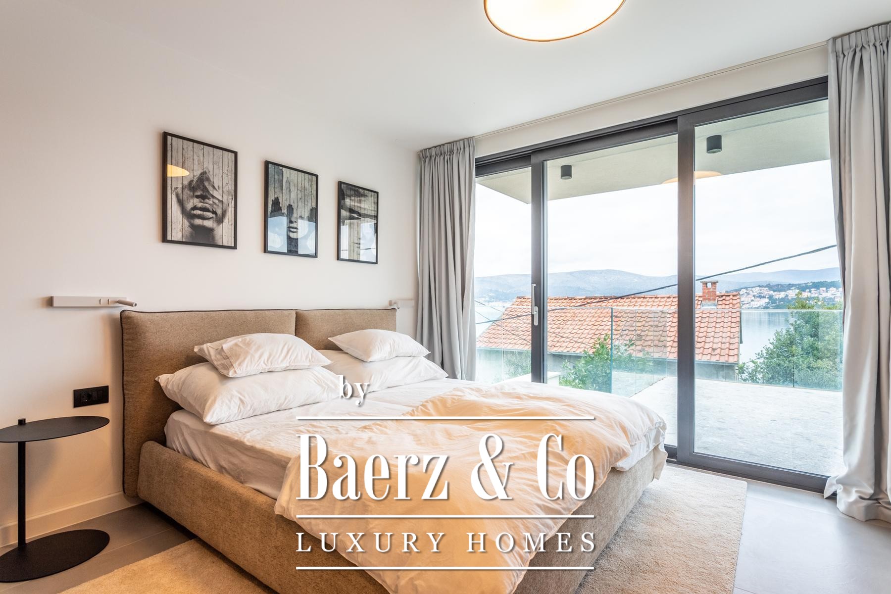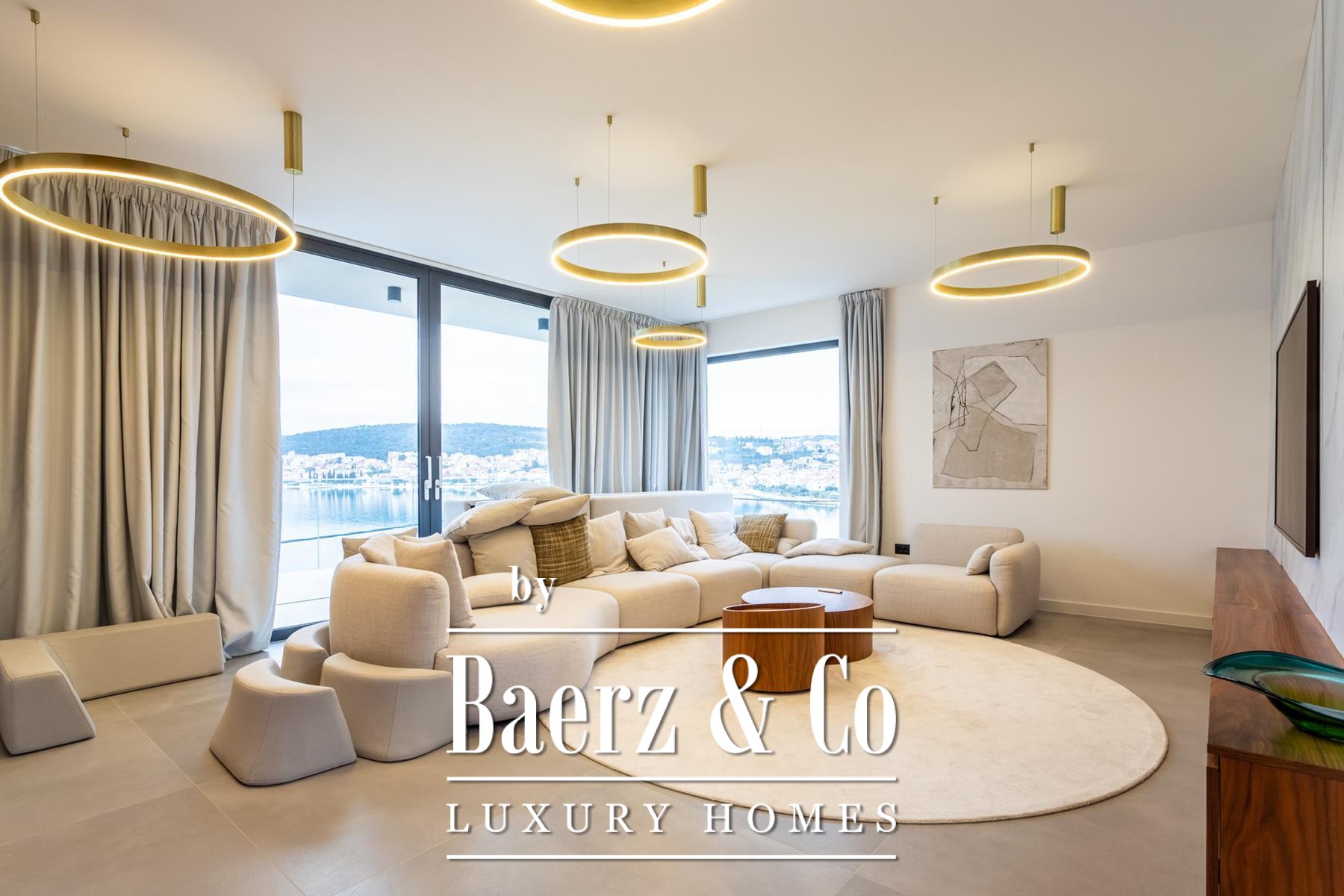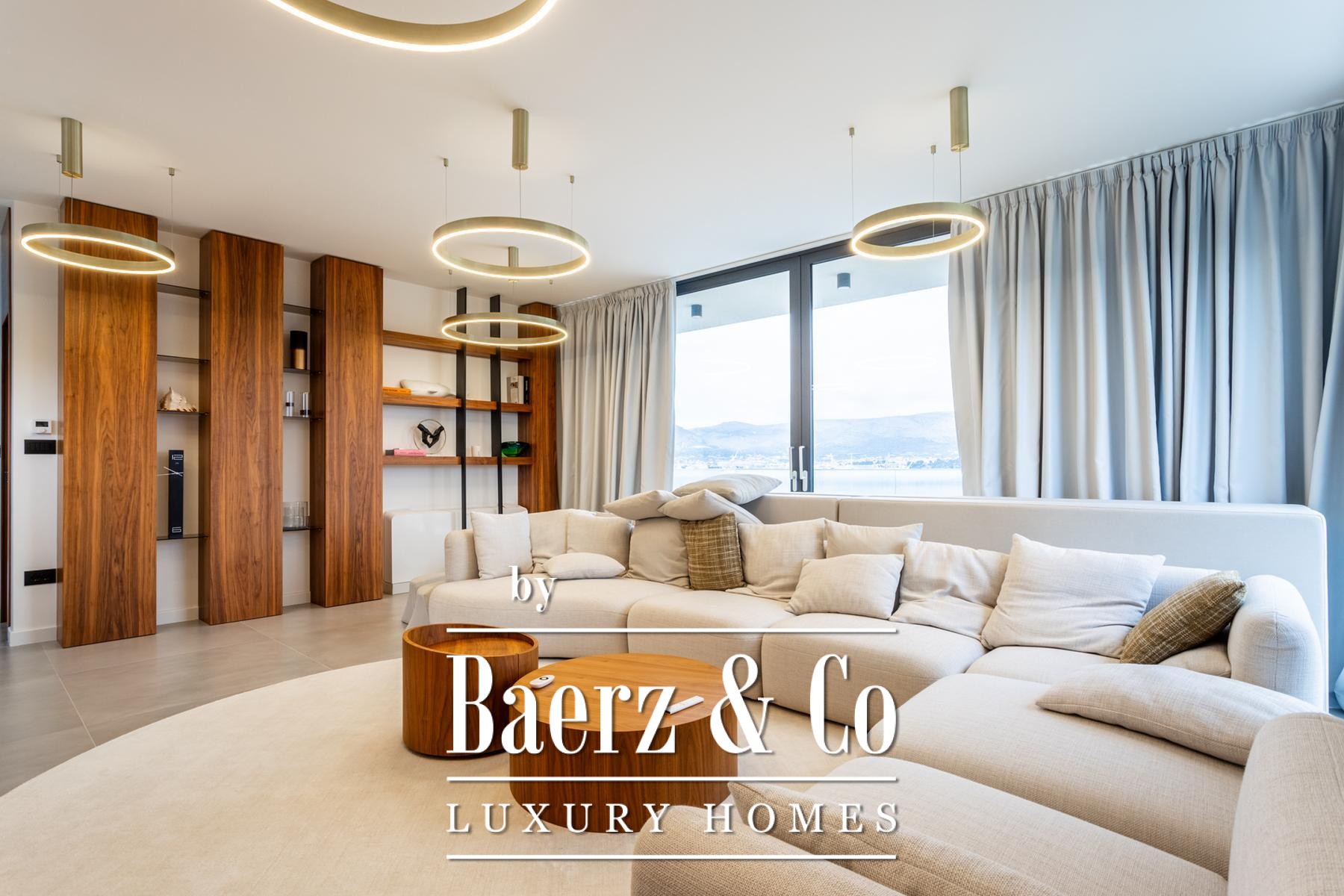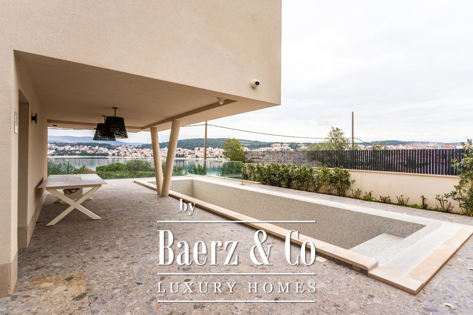 Η Villa Okrug με πανοραμική θέα βρίσκεται μόλις πενήντα μέτρα από την παραλία με βότσαλα, προσφέροντας ηρεμία και εκλεπτυσμένη διαβίωση στην Κροατία. Αυτή η σύγχρονη βίλα διαθέτει 400 τ.μ. προσεγμένα διαμορφωμένου χώρου και είναι χτισμένη σε οικόπεδο 470 τ.μ., με αρχιτεκτονική που αξιοποιεί το φυσικό φως, την ανοιχτότητα και την αρμονική ροή των χώρων.