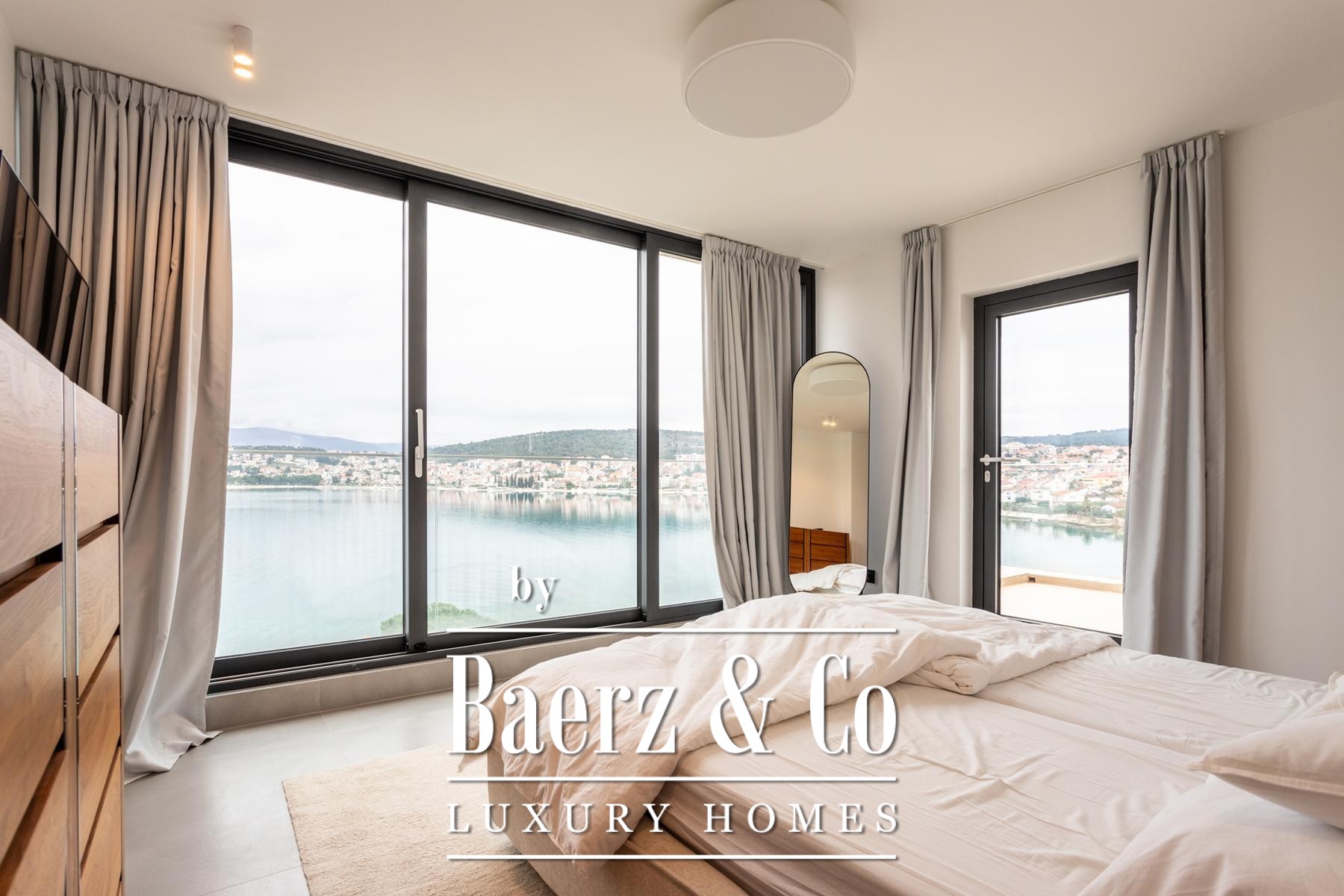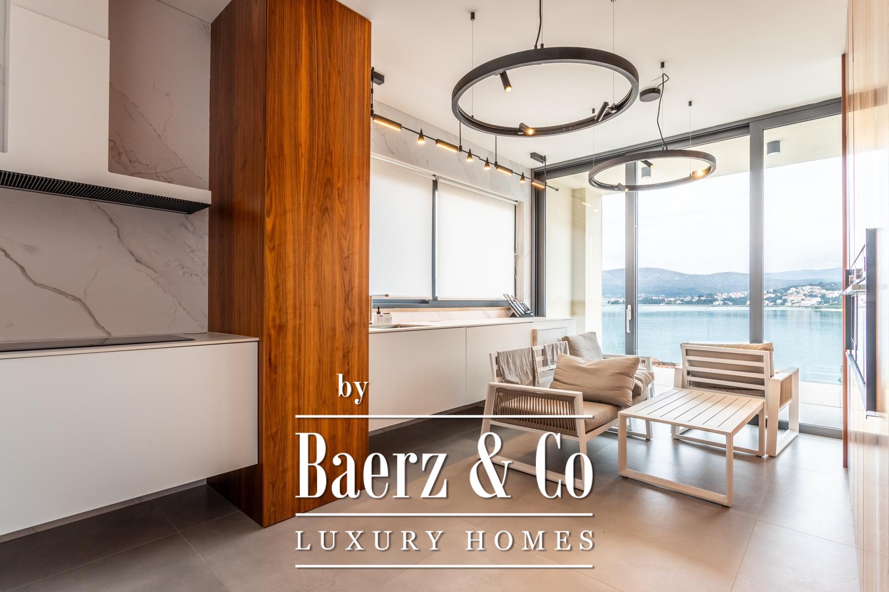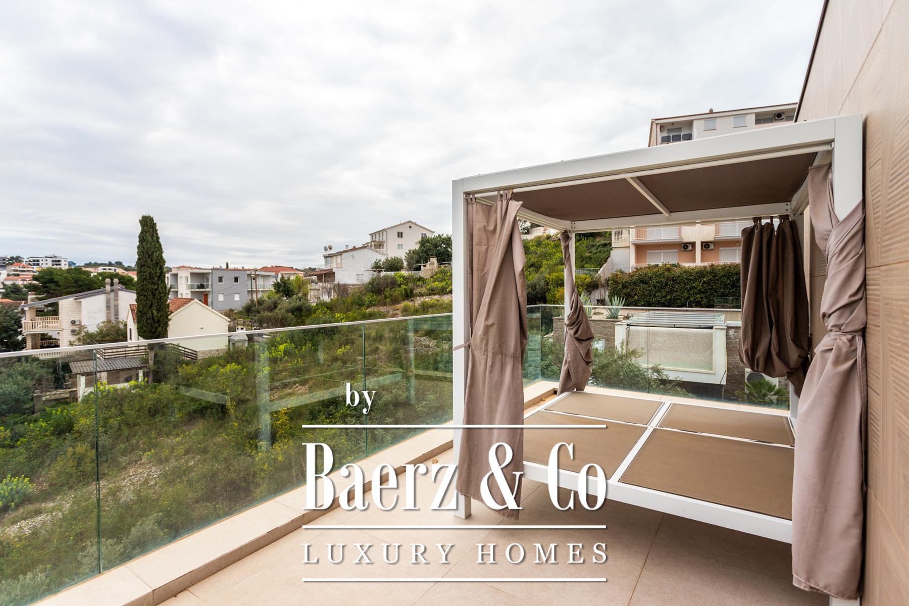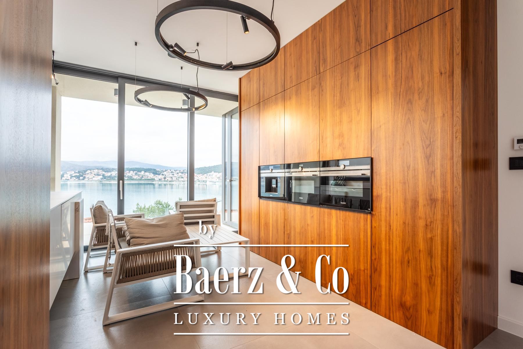 Η Villa Okrug με πανοραμική θέα βρίσκεται μόλις πενήντα μέτρα από την παραλία με βότσαλα, προσφέροντας ηρεμία και εκλεπτυσμένη διαβίωση στην Κροατία. Αυτή η σύγχρονη βίλα διαθέτει 400 τ.μ. προσεγμένα διαμορφωμένου χώρου και είναι χτισμένη σε οικόπεδο 470 τ.μ., με αρχιτεκτονική που αξιοποιεί το φυσικό φως, την ανοιχτότητα και την αρμονική ροή των χώρων.