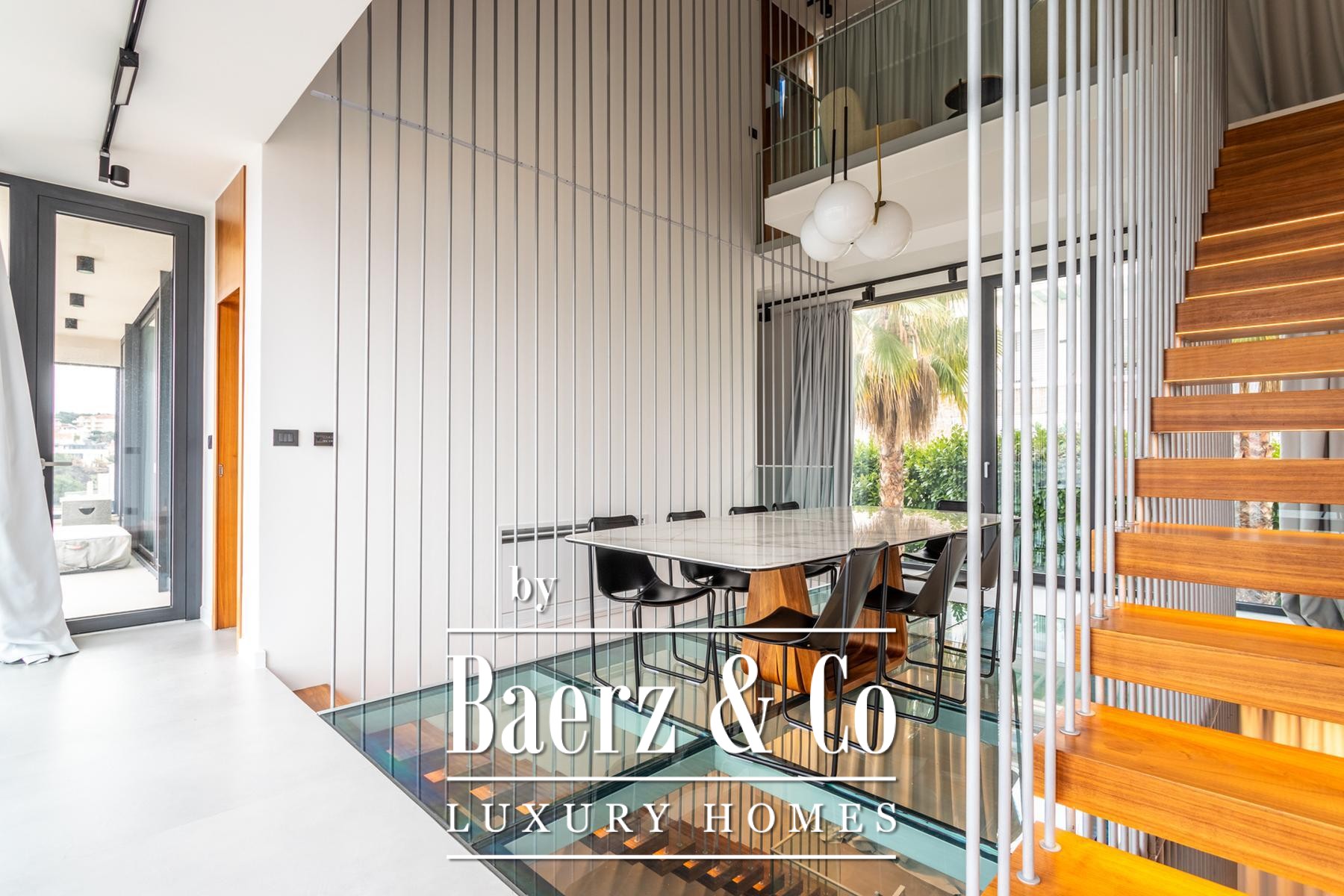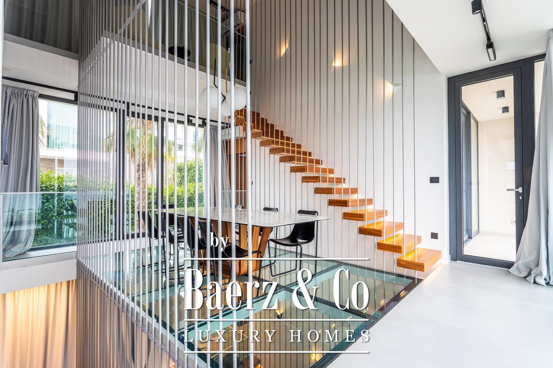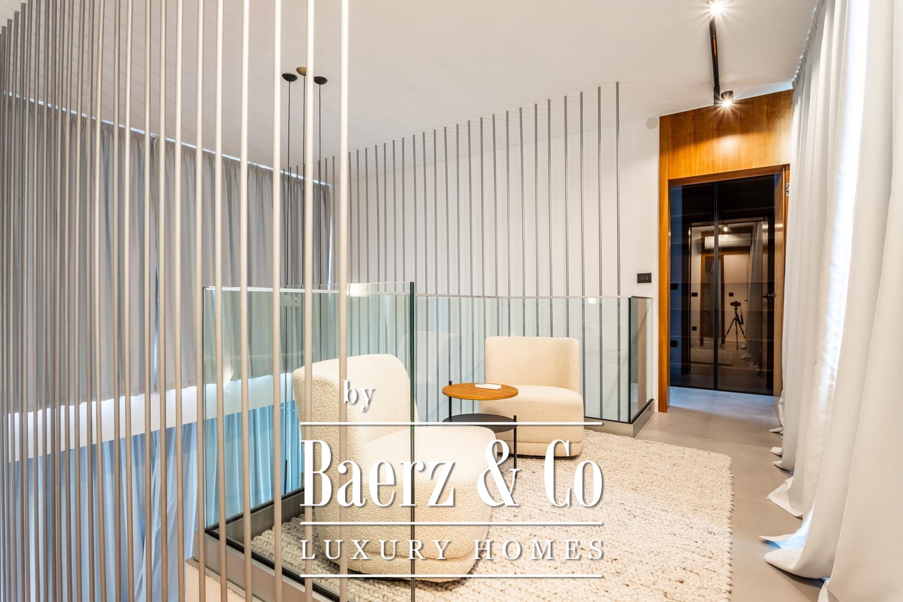 Στο εσωτερικό, τέσσερα επίπεδα φιλοξενούν τέσσερα υπνοδωμάτια και τέσσερα μπάνια, με κάθε όροφο να αναδεικνύει προσεγμένο σχεδιασμό, ειδικά κατασκευασμένη επίπλωση και λεπτομερώς επιλεγμένες παροχές. Το υπόγειο είναι αφιερωμένο στην ευεξία και την ψυχαγωγία, με κελάρι κρασιών, σάουνα, αίθουσα παιχνιδιών, γυμναστήριο και πλυντήριο, προσφέροντας μια διακριτική πολυτέλεια στην καθημερινότητα. Το ισόγειο οδηγεί σε βεράντα με ιδιωτική πισίνα και χώρο ηλιοθεραπείας, ενώ τα ανώτερα επίπεδα στεγάζουν μοντέρνα κουζίνα, τραπεζαρία και ευρύχωρο σαλόνι με άμεση πρόσβαση σε μπαλκόνι.