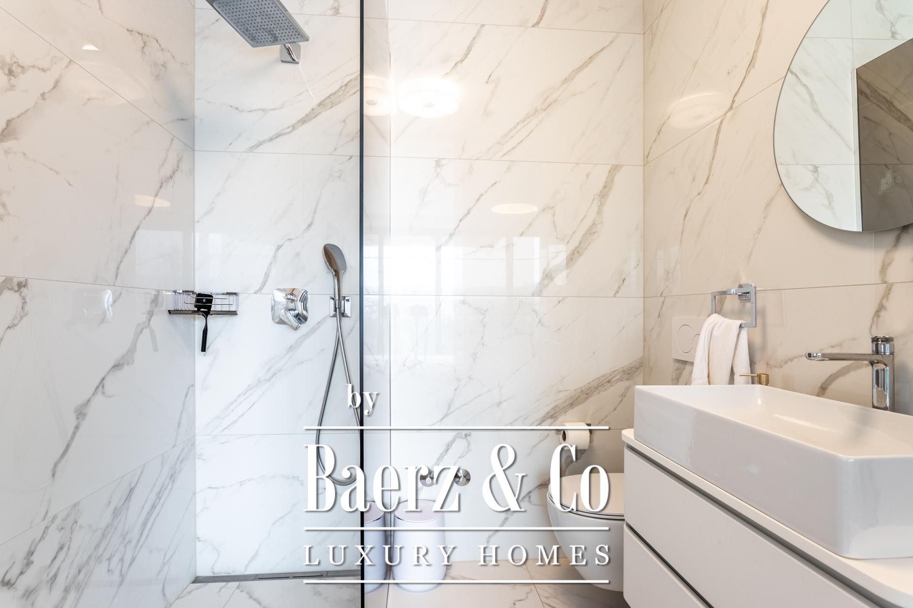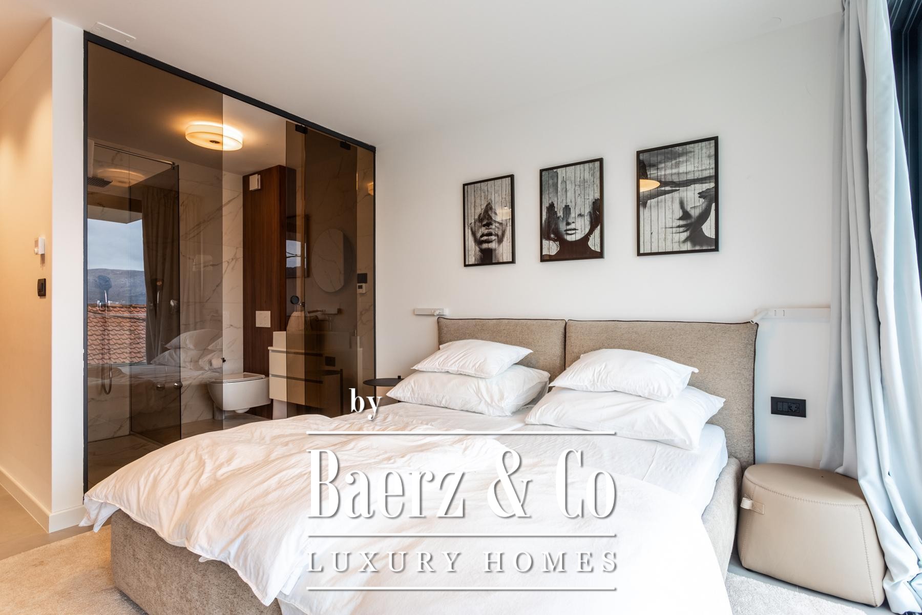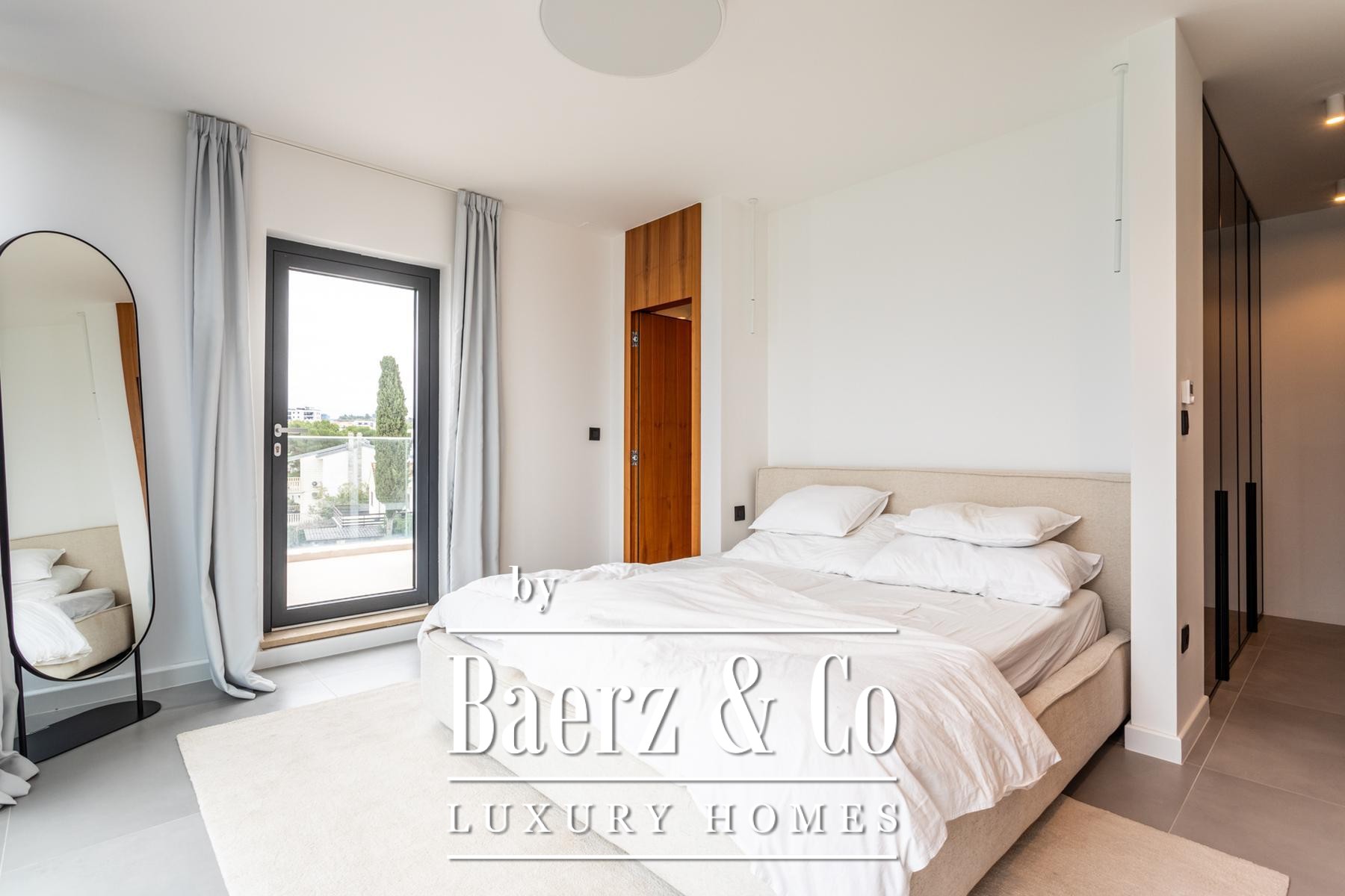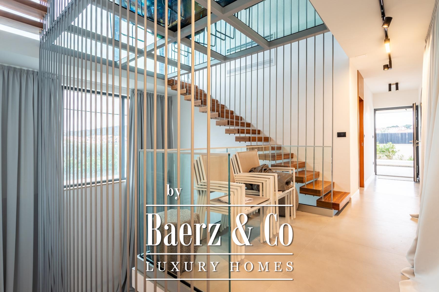 Στο εσωτερικό, τέσσερα επίπεδα φιλοξενούν τέσσερα υπνοδωμάτια και τέσσερα μπάνια, με κάθε όροφο να αναδεικνύει προσεγμένο σχεδιασμό, ειδικά κατασκευασμένη επίπλωση και λεπτομερώς επιλεγμένες παροχές. Το υπόγειο είναι αφιερωμένο στην ευεξία και την ψυχαγωγία, με κελάρι κρασιών, σάουνα, αίθουσα παιχνιδιών, γυμναστήριο και πλυντήριο, προσφέροντας μια διακριτική πολυτέλεια στην καθημερινότητα. Το ισόγειο οδηγεί σε βεράντα με ιδιωτική πισίνα και χώρο ηλιοθεραπείας, ενώ τα ανώτερα επίπεδα στεγάζουν μοντέρνα κουζίνα, τραπεζαρία και ευρύχωρο σαλόνι με άμεση πρόσβαση σε μπαλκόνι.
