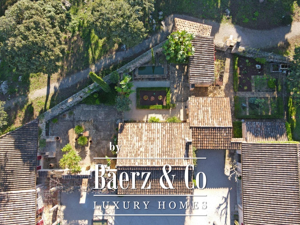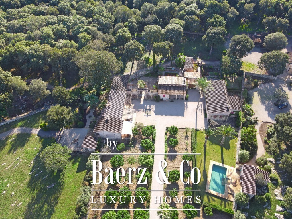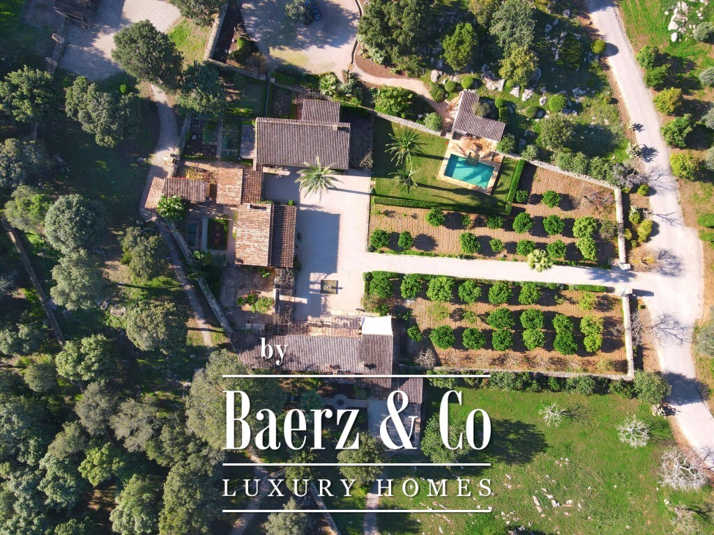 Ακίνητο προς πώληση στην Πογιένσα προσφέρει ένα εξαιρετικό καταφύγιο σε 172.483 τ.μ. γαλήνιου μαγιορκίνικου τοπίου, εξασφαλίζοντας απόλυτη ιδιωτικότητα και πανοραμική θέα στα βουνά. Ο κύριος οικιστικός χώρος του ακινήτου εκτείνεται σε 1.307 τ.μ., αποτελούμενος από τρία ανεξάρτητα μπανγκαλόου που ενώνονται μέσω στοών, βεραντών και όμορφα διαμορφωμένων κήπων. Οι αυτόνομες κατοικίες, που χτίστηκαν πριν περίπου είκοσι χρόνια, διατηρούνται με προσήλωση στη λεπτομέρεια και συνδέονται με φιλόξενους εξωτερικούς χώρους.