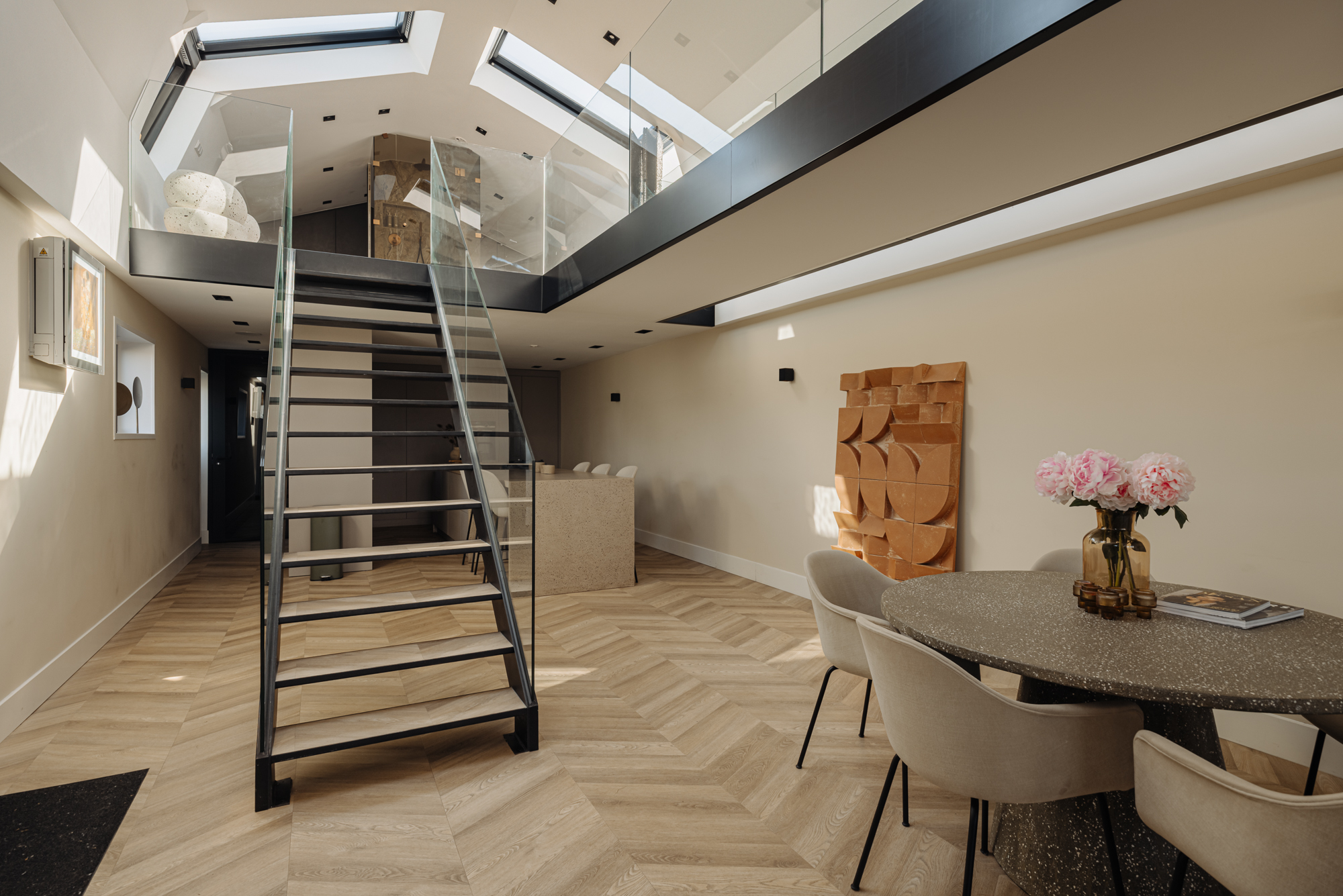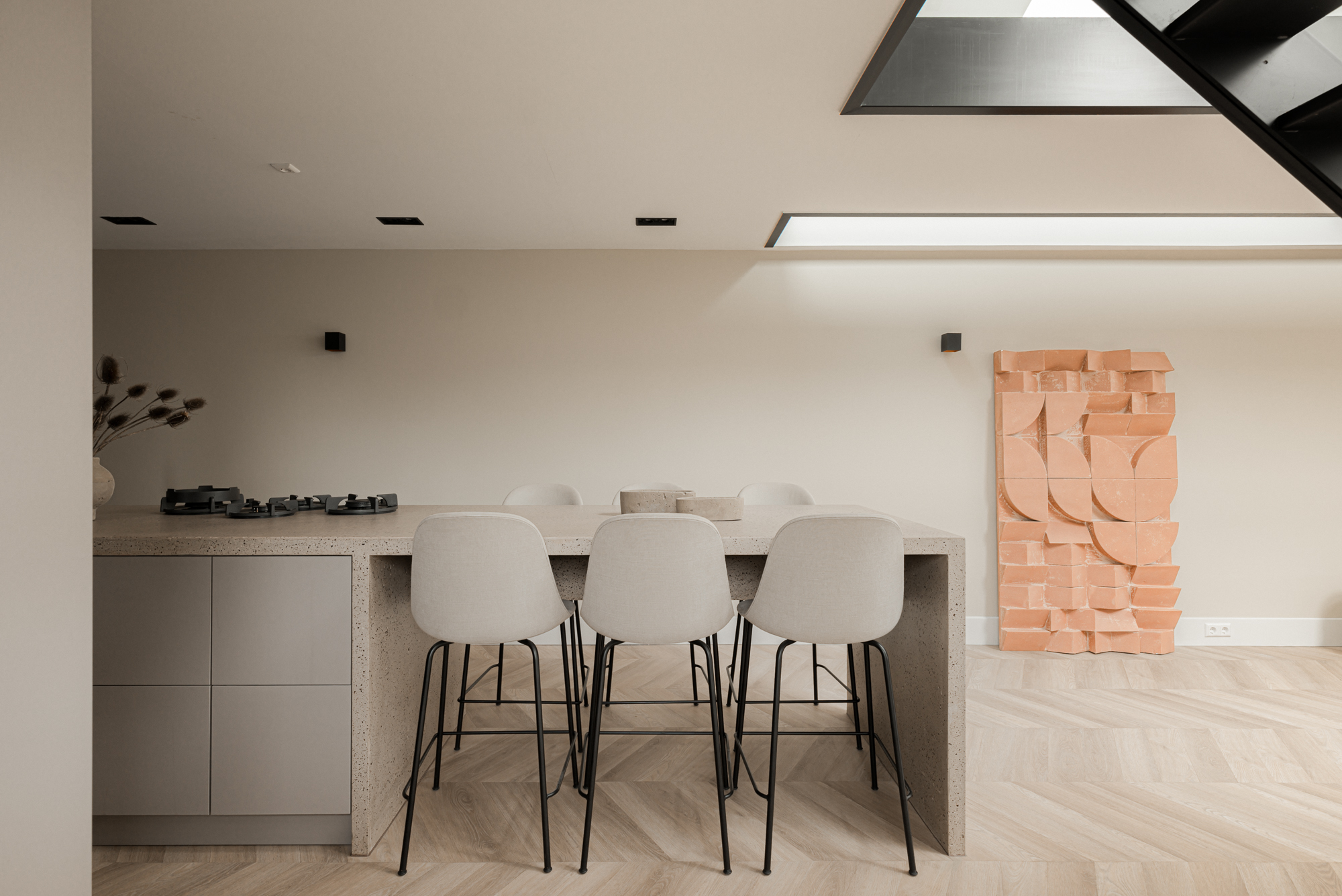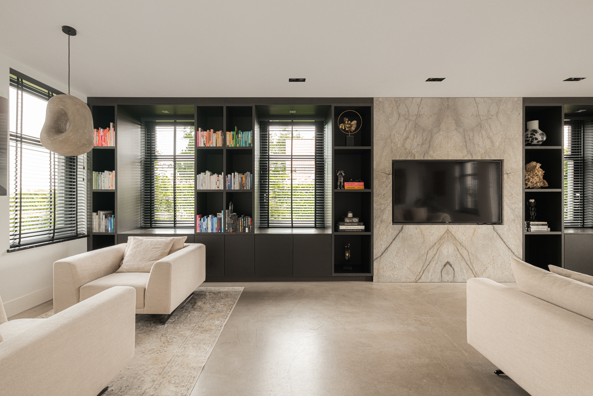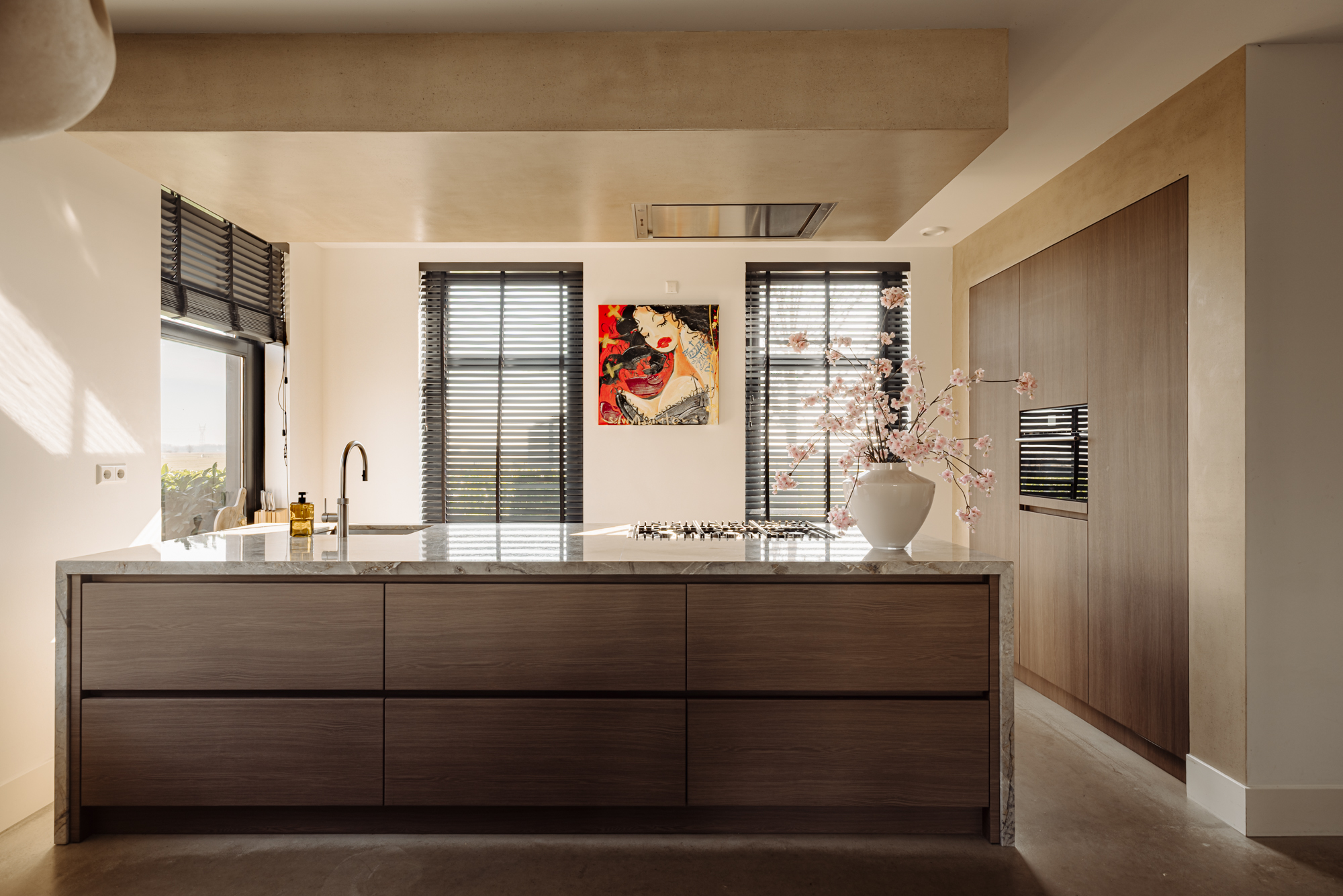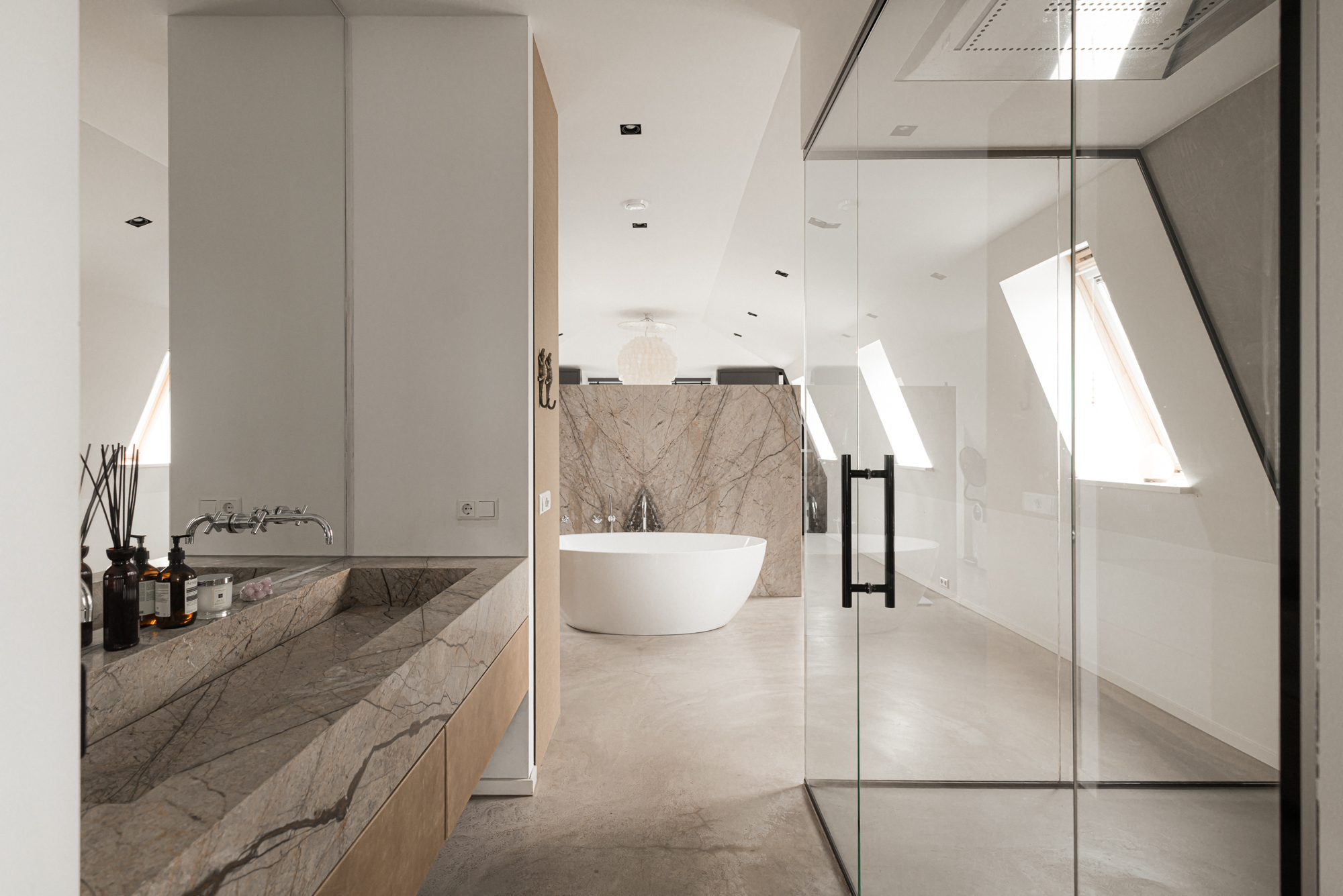 Σχεδιασμένη από τον Marcel Wolterink, τόσο η βίλα όσο και οι διαμορφωμένοι κήποι εκφράζουν μια διακριτική αρμονία μεταξύ πολυτέλειας και τοπίου. Η κύρια κατοικία καλύπτει 590 m², με ένα ανεξάρτητο ξενώνα 139 m², διασφαλίζοντας σύνδεση και ιδιωτικότητα ταυτόχρονα. Η βίλα διαθέτει οκτώ υπνοδωμάτια και επτά μπάνια, κατανεμημένα σε τρία φωτεινά επίπεδα. Στην κύρια κατοικία, ένας ευρύχωρος χώρος καθιστικού εφάπτεται με κουζίνα υψηλής ποιότητας κατασκευής, εξοπλισμένη με Boretti pitt cooking και συσκευές Gaggenau. Ένα γυάλινο αίθριο οδηγεί στο γυμναστήριο και σε ανεξάρτητο στούντιο-διαμέρισμα, ενώ το υπόγειο αποκαλύπτει μια απομονωμένη αυλή και θερμαινόμενη πισίνα, δημιουργώντας απόλυτη σύνδεση με τον εξωτερικό χώρο.
