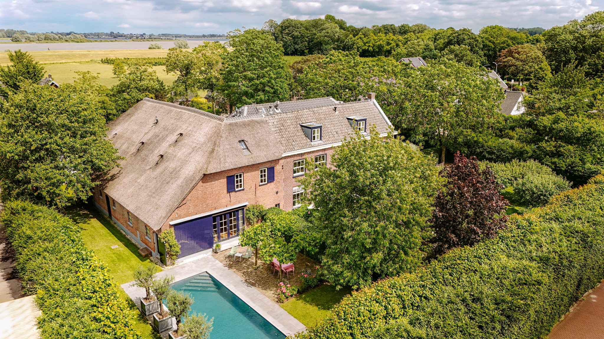 Εξωτερικά, ευρείες βεράντες, θερμαινόμενη πισίνα 10 μέτρων δίπλα σε οπωροφόρα δέντρα και υπερυψωμένες παρτέρια δημιουργούν μια απομονωμένη όαση. Πέρα από τους φράχτες, το Rossum προσφέρει μια οικεία χωριάτικη ζωή περιστοιχισμένη από ποτάμι και απέχει λεπτά από τον αυτοκινητόδρομο A2, επιτρέποντας άμεση πρόσβαση σε Ουτρέχτη και Άμστερνταμ. Το αγροτικό κτήμα Rossum συγκαταλέγεται στα μεγαλύτερα αγροκτήματα της περιοχής, ενσαρκώνοντας μια σπάνια συνάντηση κλίμακας, άνεσης και ιστορικής κληρονομιάς.