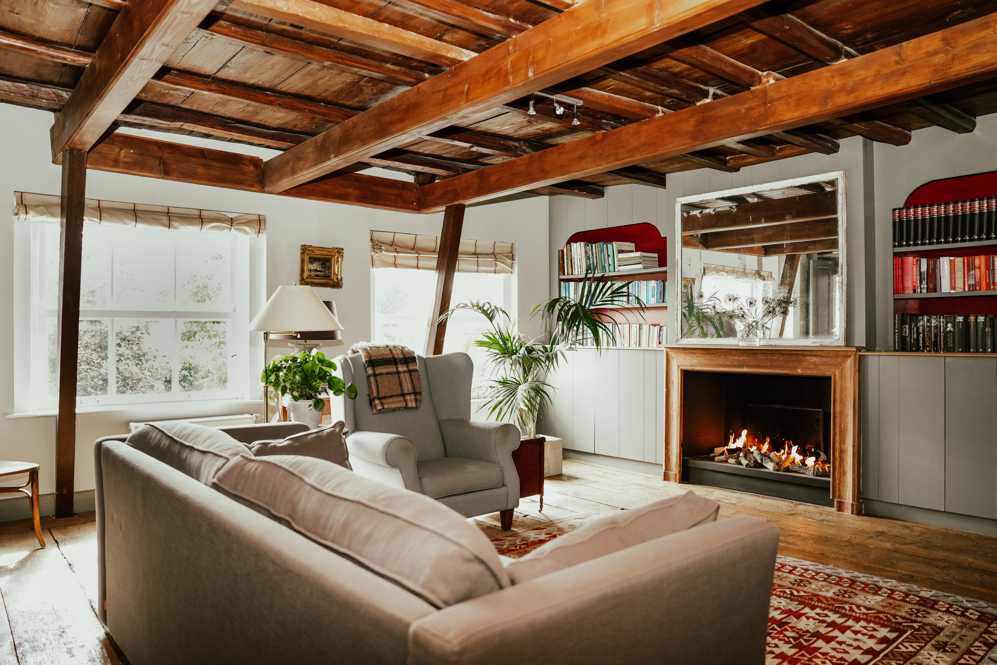 Η κύρια οικία προσφέρει διαδοχή φινετσάτων χώρων: φωτεινό καθιστικό με ανοιχτό τζάκι, τραπεζαρία με θέα στον κήπο, εξατομικευμένη κουζίνα από δρυ με AGA και πέτρινο τζάκι, καθώς και γραφείο που αντικρίζει ιστορικούς δρόμους του χωριού. Κάθε δωμάτιο αποκαλύπτει προσεκτική διατήρηση—ψηλά παράθυρα με κάθετα φύλλα, δάπεδα βερσαλλιών και αυθεντικές δοκούς—ενισχυμένη από διακριτικές τεχνολογικές λύσεις όπως ενδοδαπέδια θέρμανση, υαλοπίνακες κενού και νέα συστήματα ηλιακής ενέργειας. Ένας πλήρως ανεξάρτητος ξενώνας, με δικό του σαλόνι και μπάνιο, προσφέρει άνεση σε επισκέπτες ή οικογένεια.
