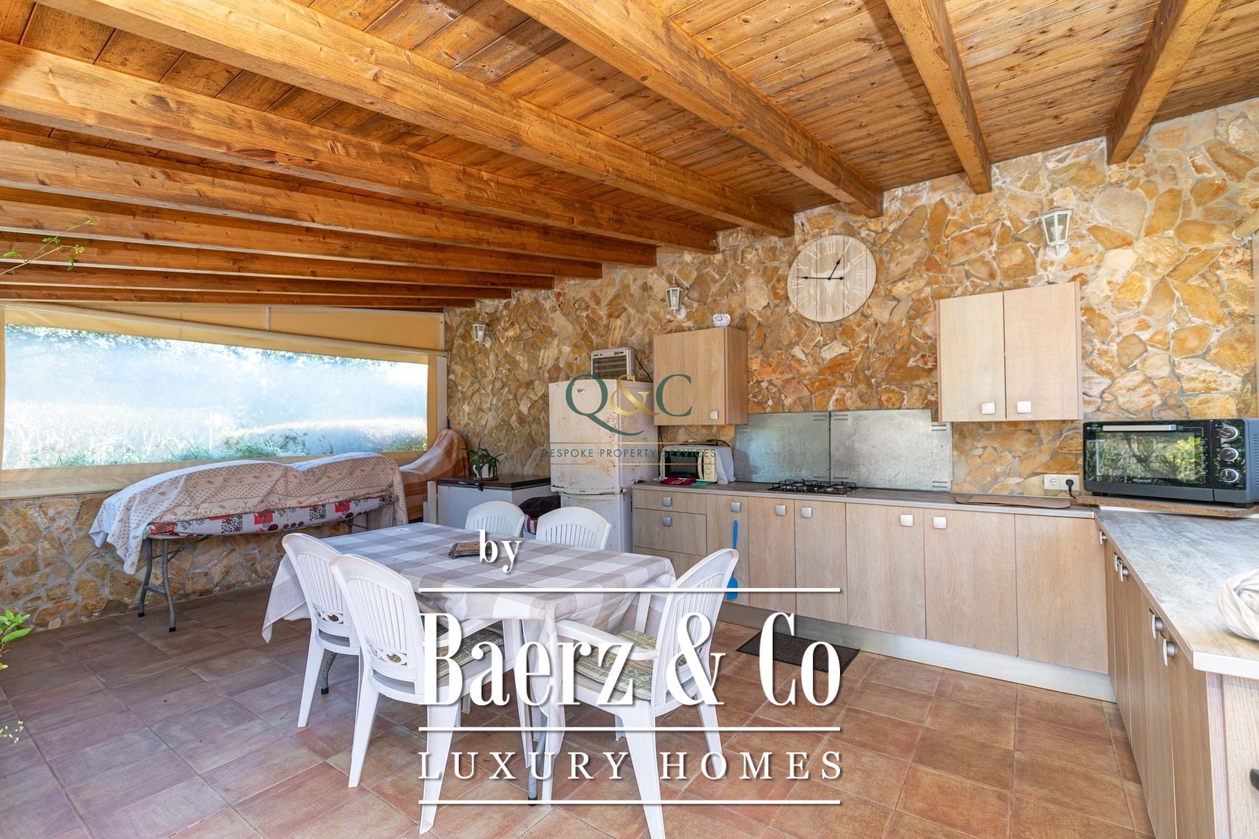 Οι εξωτερικοί χώροι είναι σχεδιασμένοι για ιδιωτικότητα και πρακτικότητα, με περιφραγμένους, εύκολους στη φροντίδα κήπους και πλήρως εξοπλισμένη καλοκαιρινή εξωτερική κουζίνα. Η επάνω ταράτσα αγκαλιάζει τη φύση, προσφέροντας ήλιο και ησυχία. Αποθηκευτικοί χώροι, πλυντήριο, ηλεκτρικές πύλες και οπτική ίνα εγγυώνται απόλυτη άνεση. Αυτή η βίλα προς πώληση στο São Brás de Alportel σας φέρνει κοντά στα φημισμένα προνόμια της πόλης—αγορές, καφέ, σχολεία, ιατρικές υπηρεσίες, καθώς και τις παραλίες του Αλγκάρβε και το αεροδρόμιο του Φάρο, όλα σε άμεση πρόσβαση.