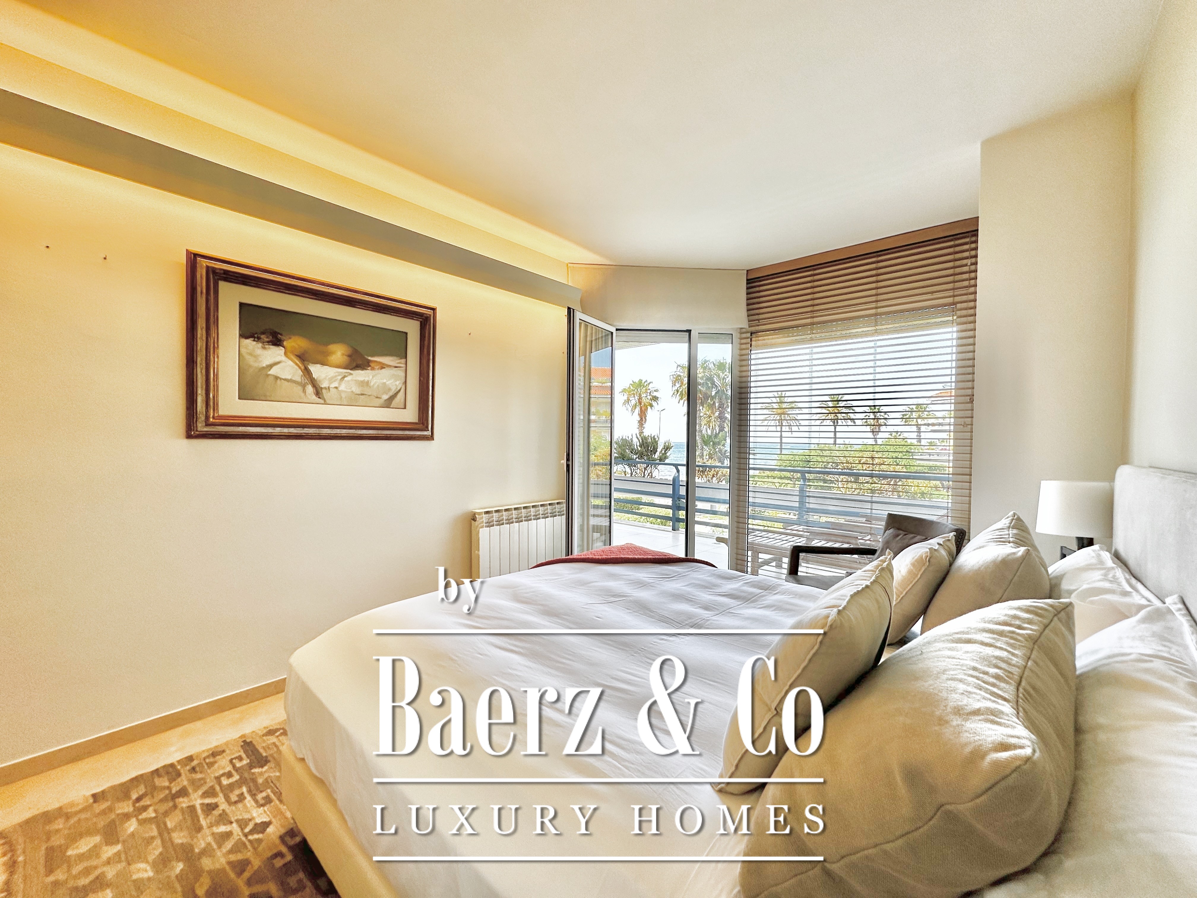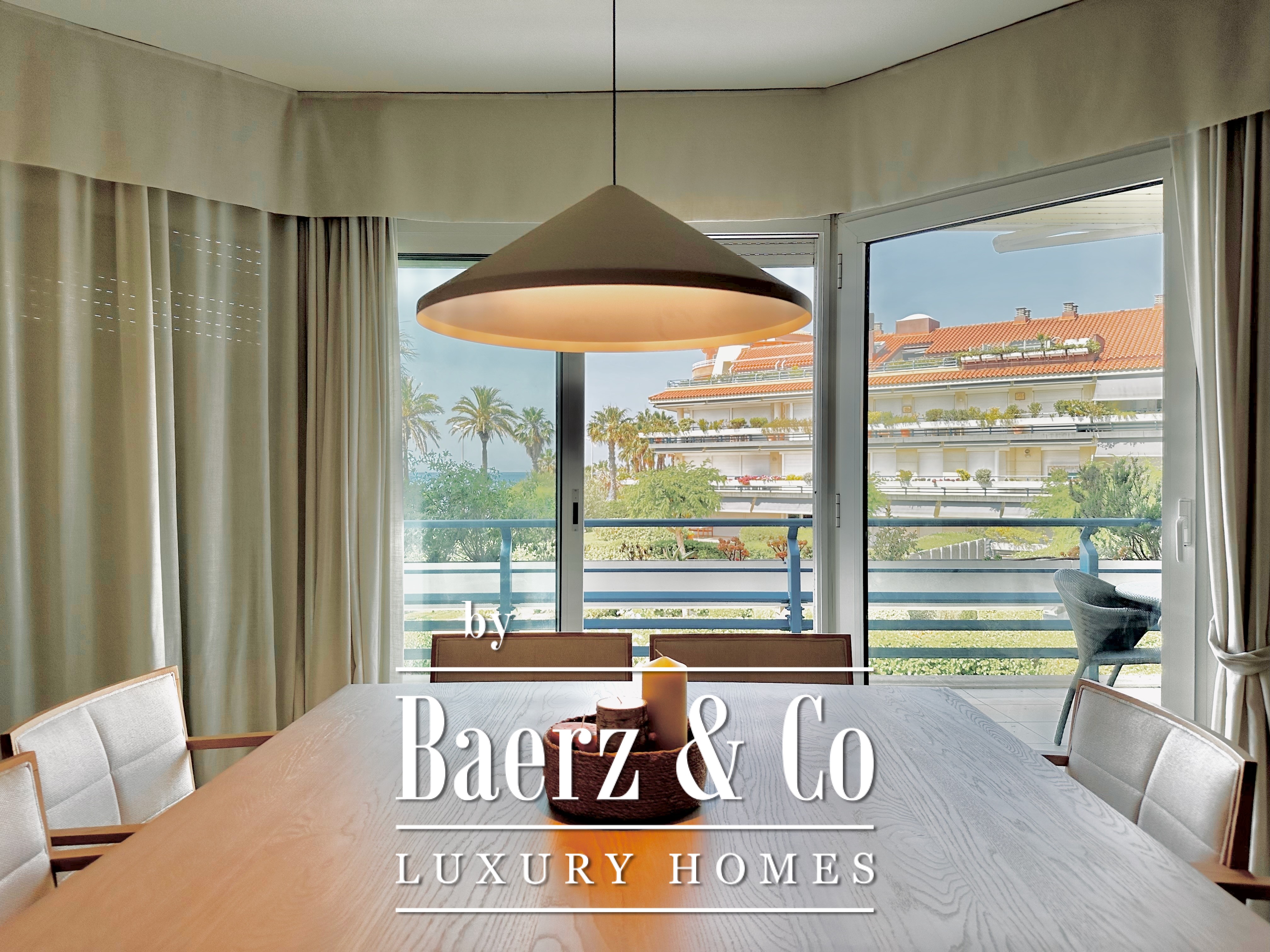 Δύο μεγάλες βεράντες, συνολικής επιφάνειας 71 m², περιβάλλουν το διαμέρισμα: η μία αγναντεύει τους ήσυχους κοινόχρηστους κήπους, ενώ η άλλη είναι τοποθετημένη απευθείας πάνω από το κύμα, εξασφαλίζοντας απρόσκοπτη θέα. Η κουζίνα και η τραπεζαρία συνδυάζουν λειτουργικότητα και ανοιχτότητα, επεκτεινόμενες σε μια βεράντα που περιβάλλεται από καταπράσινα φυτά. Το ακίνητο έχει ανακαινιστεί πρόσφατα και περιλαμβάνει δύο θέσεις στάθμευσης καθώς και αποθήκη 14 m².