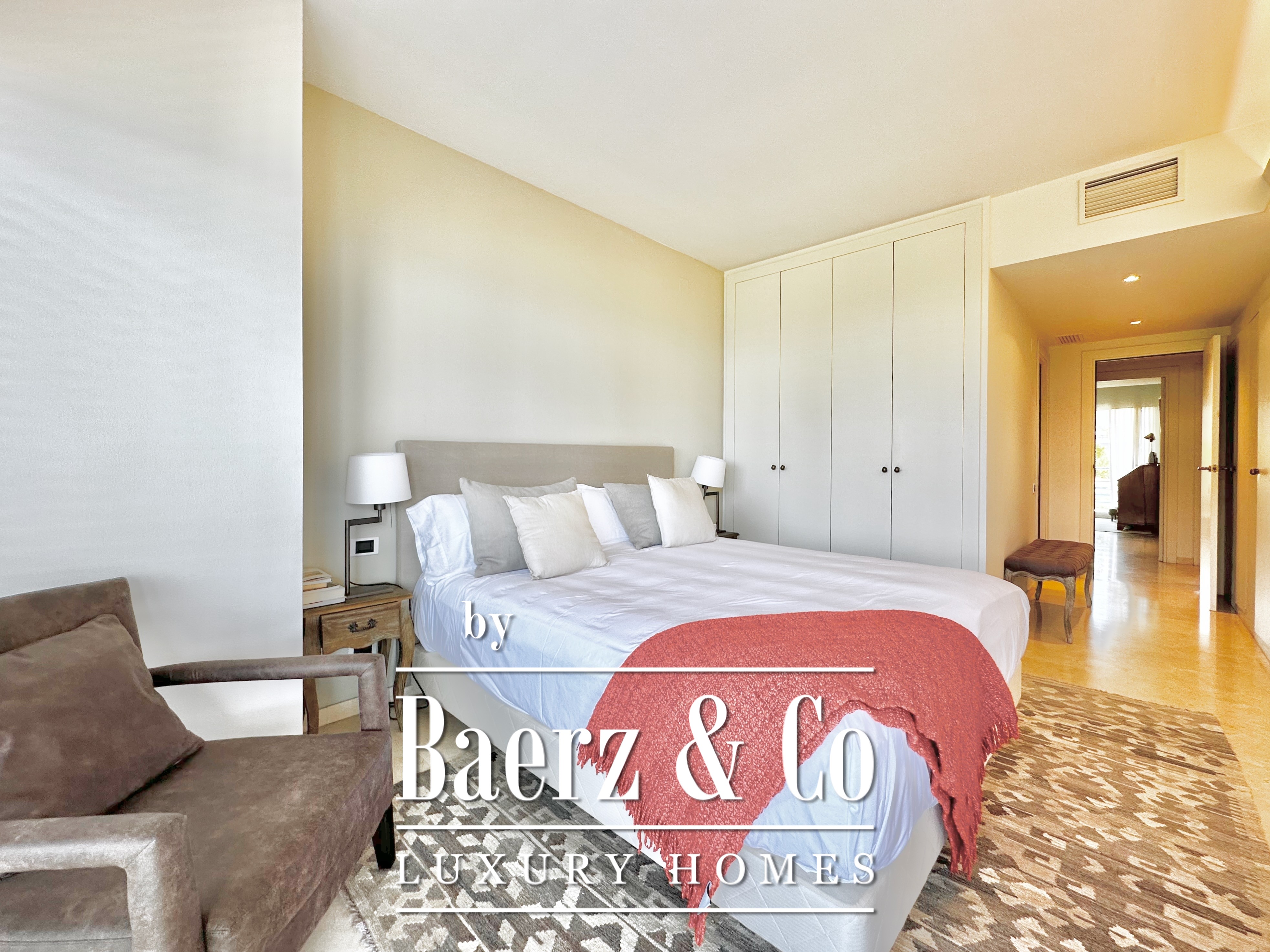 Αυτό το παραθαλάσσιο διαμέρισμα στη Sitges βρίσκεται στο περιζήτητο συγκρότημα Terramar και ανοίγει απευθείας στη Μεσόγειο Θάλασσα. Η άνεση και η διακριτική κομψότητα καθορίζουν τα 216 m² προσεκτικά μελετημένων εσωτερικών χώρων, όπου κάθε δωμάτιο προσφέρει πρόσβαση στον υπαίθριο χώρο. Τέσσερα υπνοδωμάτια με διπλά κρεβάτια, το καθένα με άμεση πρόσβαση στη βεράντα και ιδιωτικό μπάνιο, δημιουργούν ένα ρυθμό διακριτικής ιδιωτικότητας και άμεσης επαφής με τη θάλασσα. Η κυρίως σουίτα προσκαλεί να ατενίσετε το νερό από το κρεβάτι, ενώ ο κύριος χώρος υποδοχής φέρνει το φως και τον ορίζοντα στην καθημερινότητά σας.