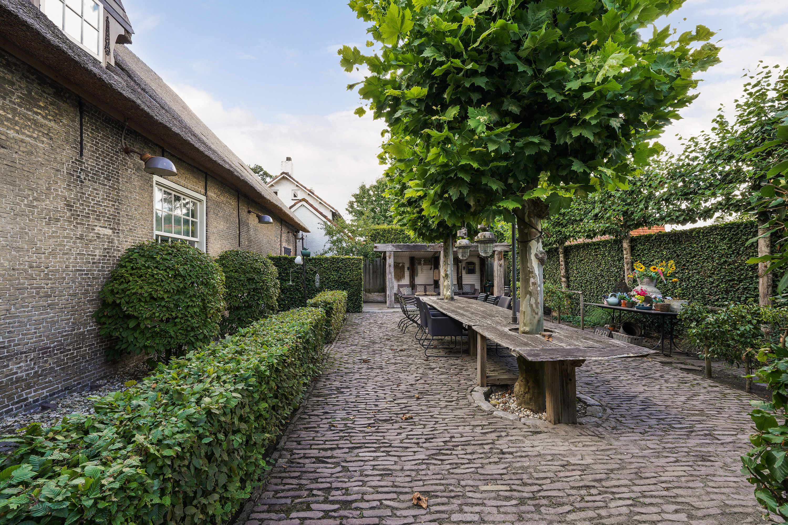 Η κατοικία πολιτιστικής κληρονομιάς στο Sprang-Capelle ενσωματώνει την ιστορία και την προσεγμένη ανακαίνιση, προσφέροντας σπάνιο χώρο διαβίωσης 420 m² σε οικόπεδο 658 m². Το εθνικά προστατευόμενο αυτό ακίνητο ξεχωρίζει για το εξαιρετικό ιστορικό του, με ρίζες που φτάνουν στον 17ο αιώνα, εμφανείς στις γυμνές ξύλινες δοκούς, τις θολωτές οροφές και την επιβλητική αίσθηση της άφιξης. Το κύριο σαλόνι, σχεδόν 90 m², διαθέτει σόμπα pellet και φωτίζεται από ψηλά παράθυρα, ενώ οι όγκοι απαλύνονται από λευκό σοβά και ξύλινα δάπεδα. Η καρδιά του σπιτιού είναι μια ειδικά κατασκευασμένη κουζίνα του 2024, με αμπλάκωμα φτιαγμένο κατά παραγγελία από την Ecker Interieurbouw και άνετο χώρο για φαγητό, συγκεντρώσεις ή ήσυχη απόλαυση του κήπου.
