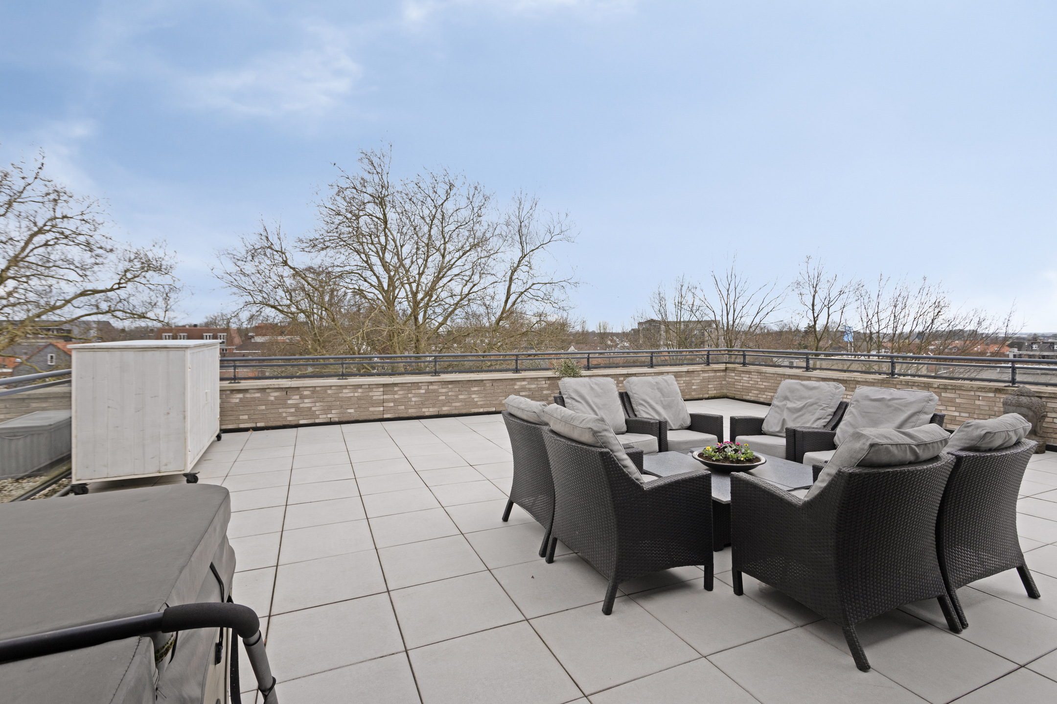 Το Penthouse Steenbergen προσφέρει μια εκλεπτυσμένη σύνθεση ιδιωτικότητας, ποιότητας και σύγχρονης άνεσης στον τρίτο όροφο του συγκροτήματος The New Villa, που ολοκληρώθηκε το 2018. Η κατοικία των 131 m² διαθέτει τρία υπνοδωμάτια και μια μοναδική ταράτσα 165 m²—έναν υπαίθριο χώρο σχεδόν αδύνατο να βρεθεί στη σύγχρονη αστική ζωή. Το διαμέρισμα ξεχωρίζει για τα εξαιρετικά του φινιρίσματα, από την κουζίνα Poggenpohl με πολυτελείς ηλεκτρικές συσκευές και γρανιτένο πάγκο, μέχρι το σαλόνι που λούζεται από φυσικό φως και κυριαρχείται από ενεργειακό τζάκι αερίου. Η ενδοδαπέδια θέρμανση σε κάθε χώρο, ο κλιματισμός, η ενσωματωμένη καλωδίωση UTP, τα ηλεκτρικά σκίαστρα και οι έξυπνες εσωτερικές πόρτες παρέχουν διακριτικά και αποτελεσματικά σύγχρονη λειτουργικότητα.