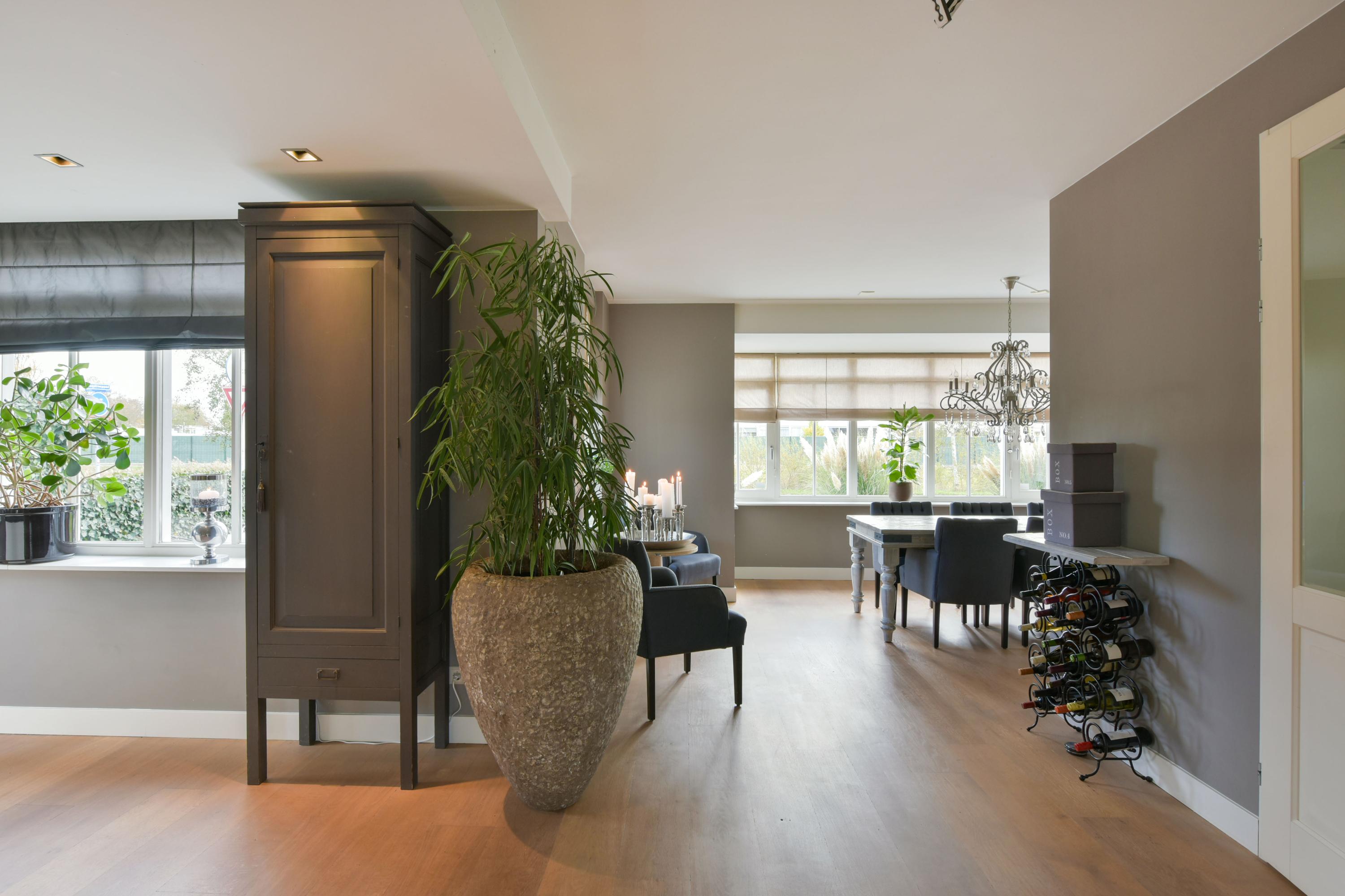Η Villa Uithoorn προσφέρει μια εξαιρετική ισορροπία μεταξύ άπλετου χώρου και εκλεπτυσμένης διαμονής στη δημοφιλή κατοικημένη περιοχή Legmeer-West. Από την πρώτη στιγμή, η διάταξη των 290 m² υποδέχεται με φως, ιδιωτικότητα και ευελιξία. Το σκηνικό της προσέγγισης δημιουργεί αίσθηση γαλήνης, με έναν πλατύ ιδιωτικό δρόμο στάθμευσης για πολλά οχήματα και έναν ήσυχο δρόμο που πλαισιώνει τη γαλήνια παρουσία του ακινήτου.