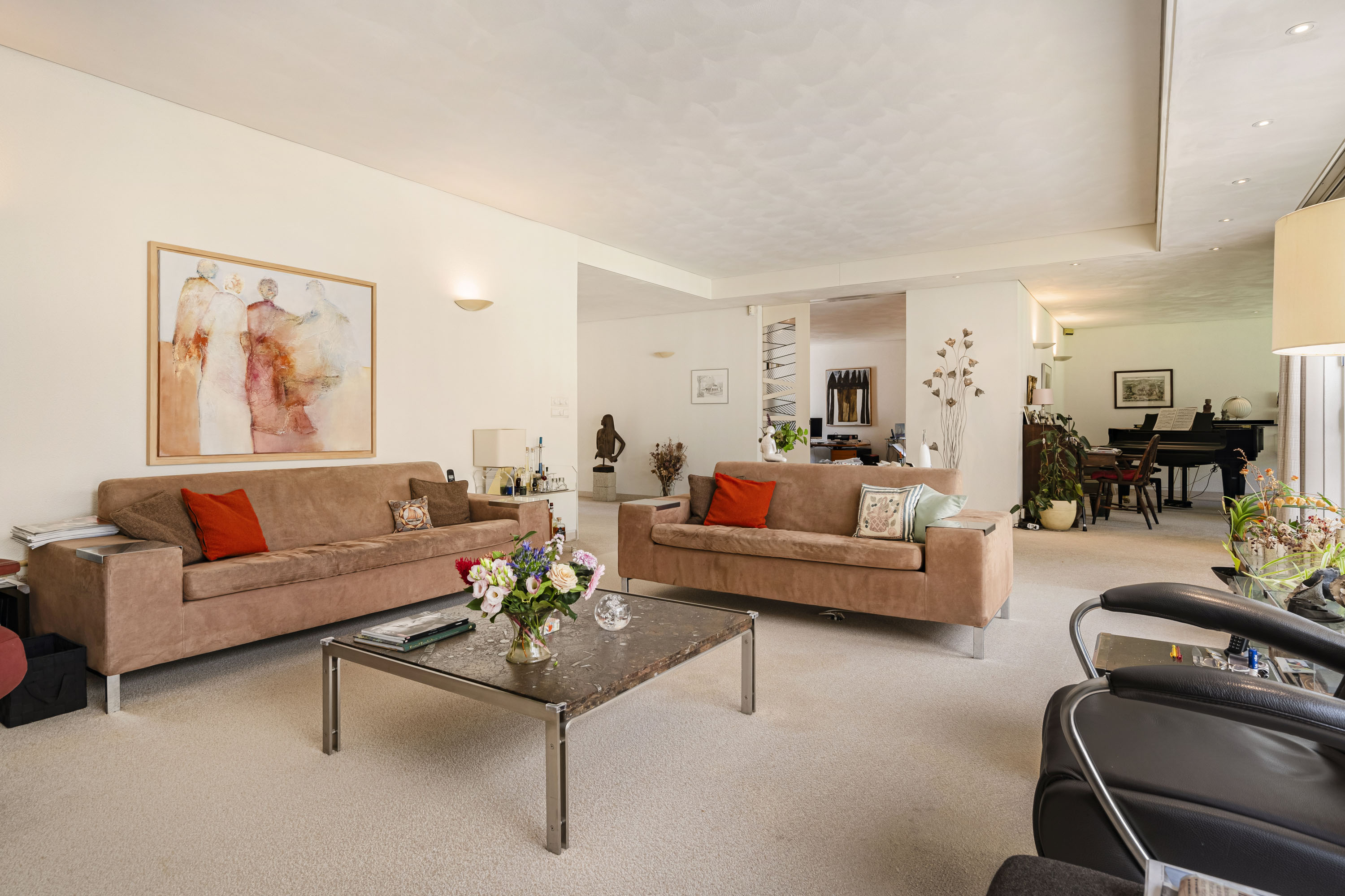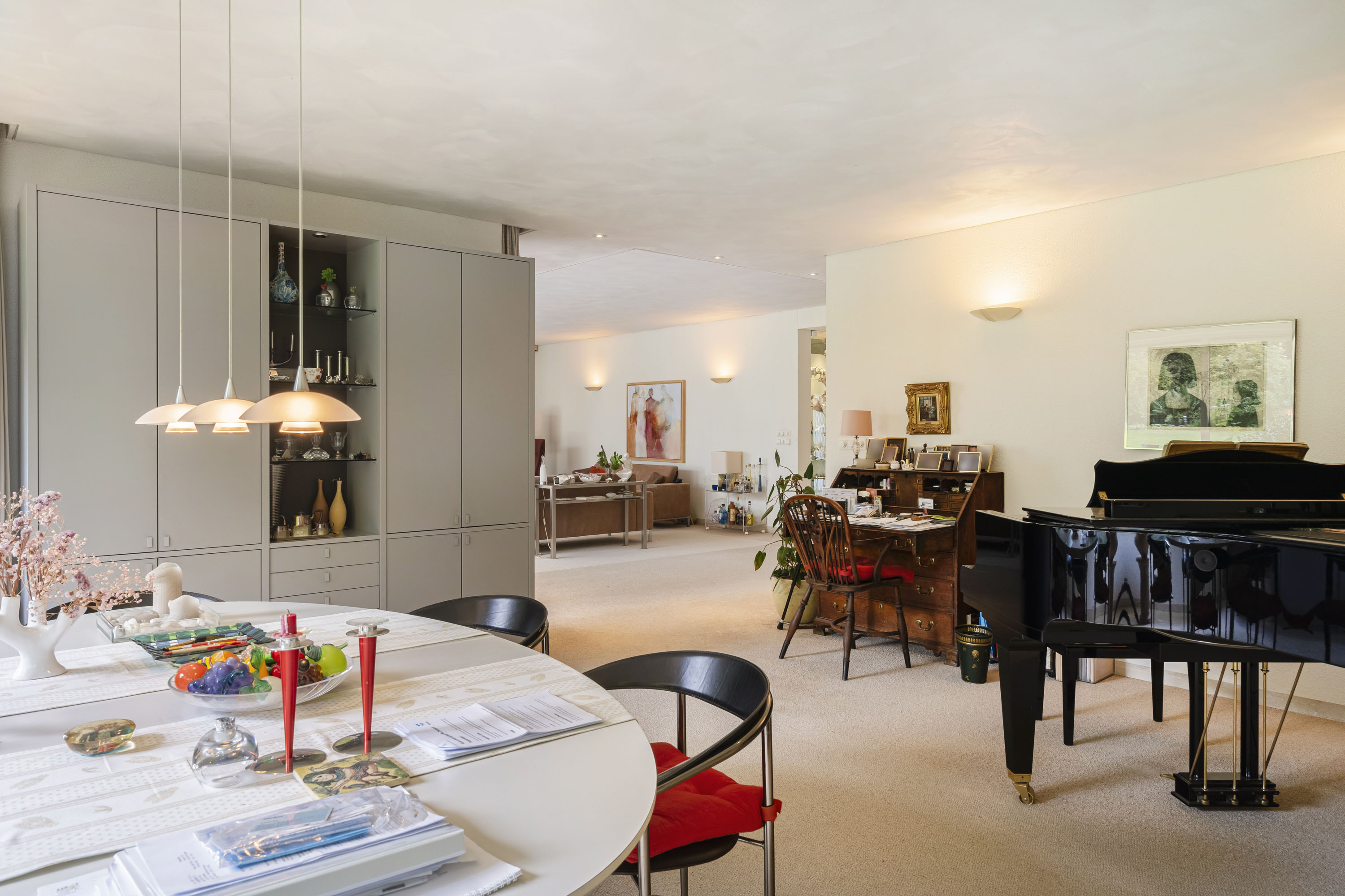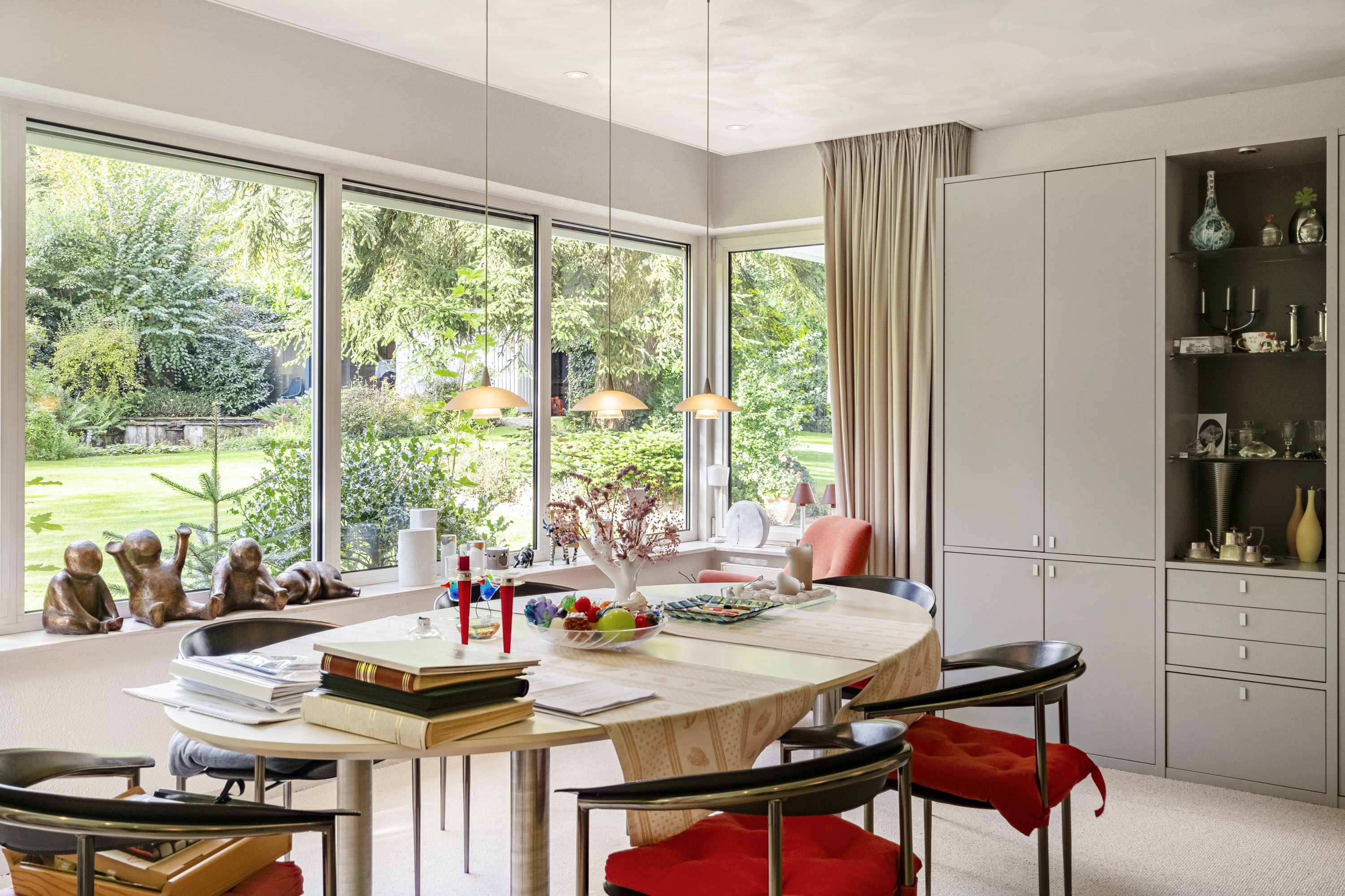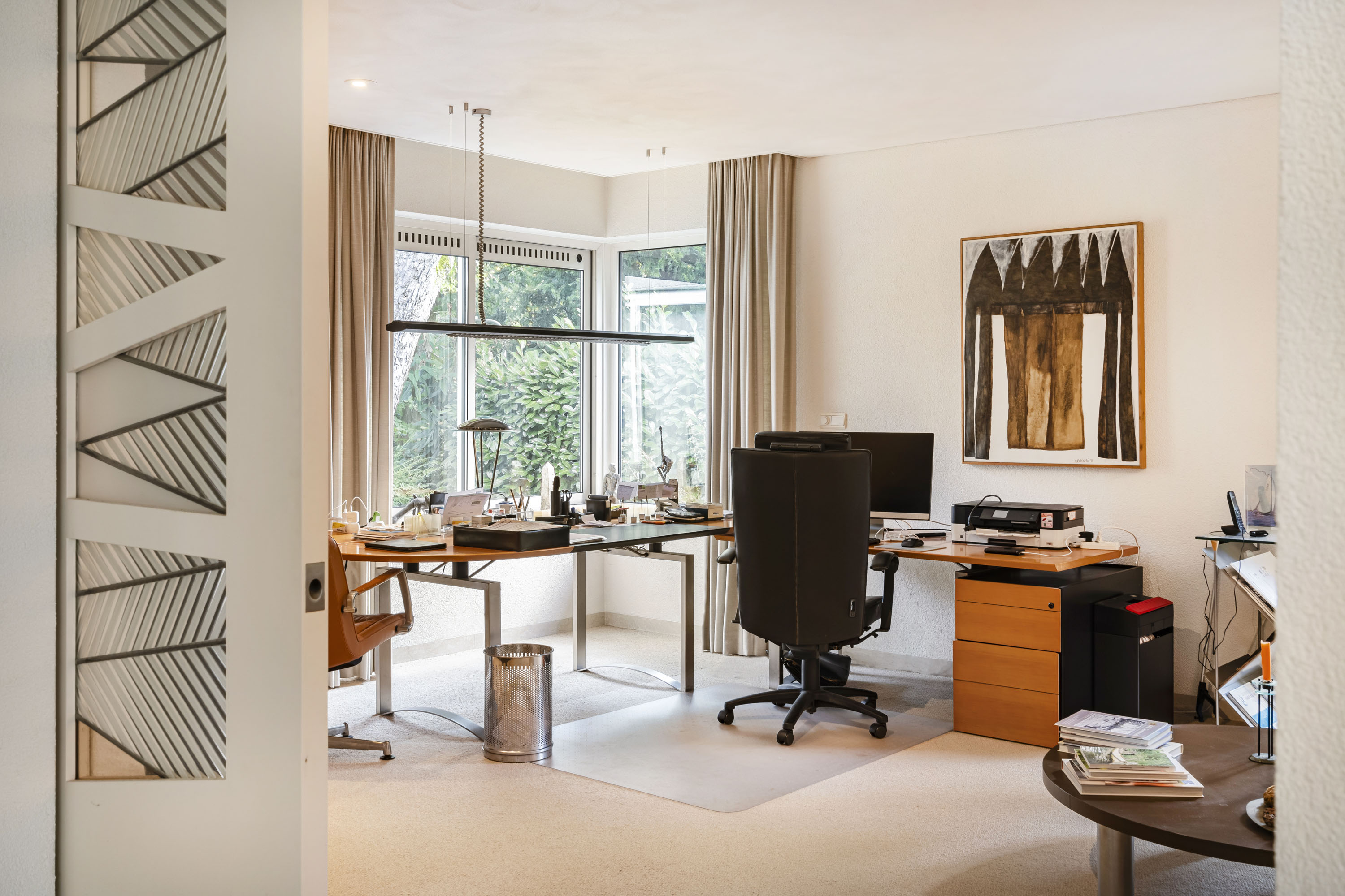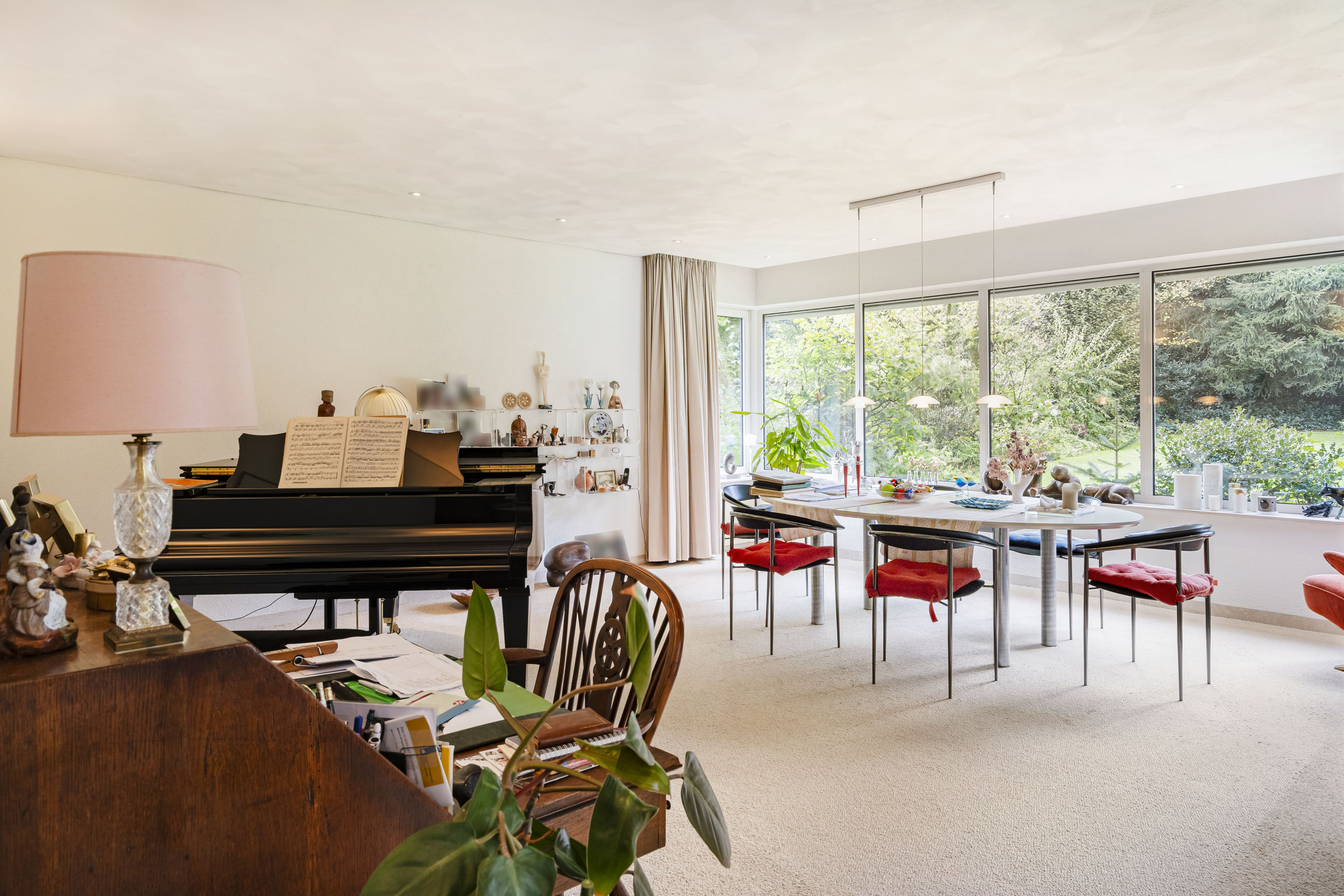 Η έξυπνη διαρρύθμιση περιλαμβάνει μεγάλο σαλόνι, τραπεζαρία με θέα στον κήπο, γραφείο, καθώς και κουζίνα ανοιχτής διάταξης που επικοινωνεί με βοηθητικό χώρο και διακριτικό αναβατόριο. Κομψές συρόμενες πόρτες εξισορροπούν τη διαφάνεια με την ιδιωτικότητα. Η εσωτερική πισίνα, με jet stream και συρόμενες πόρτες που οδηγούν στον κήπο, αποτελεί την επιτομή ευζωίας στο σπίτι. Η κύρια σουίτα διαθέτει κλιματισμό και άμεση πρόσβαση στον κήπο, ενώ τα δύο μπάνια προσφέρουν επιλογή μπανιέρας και ντουζ.