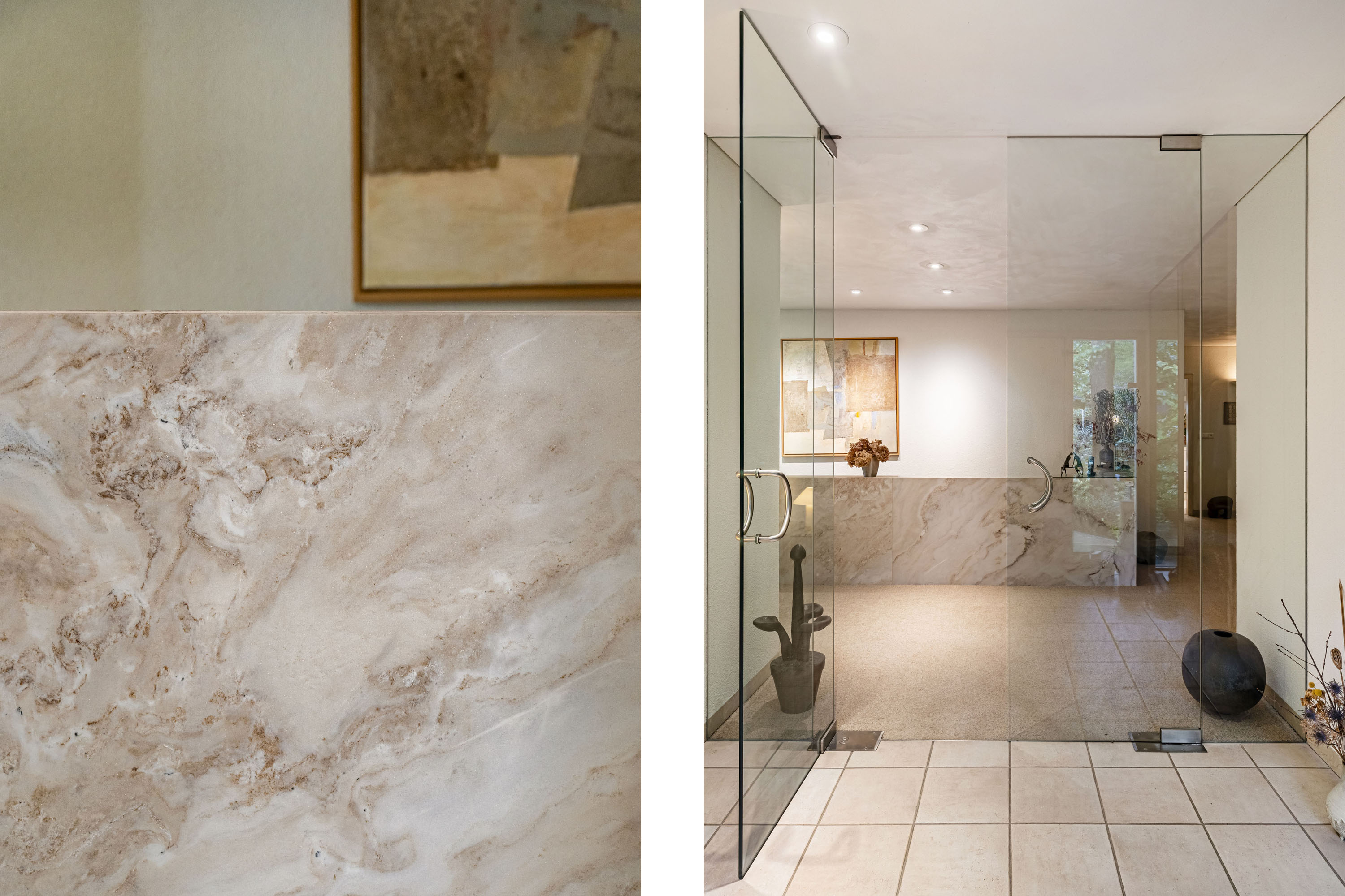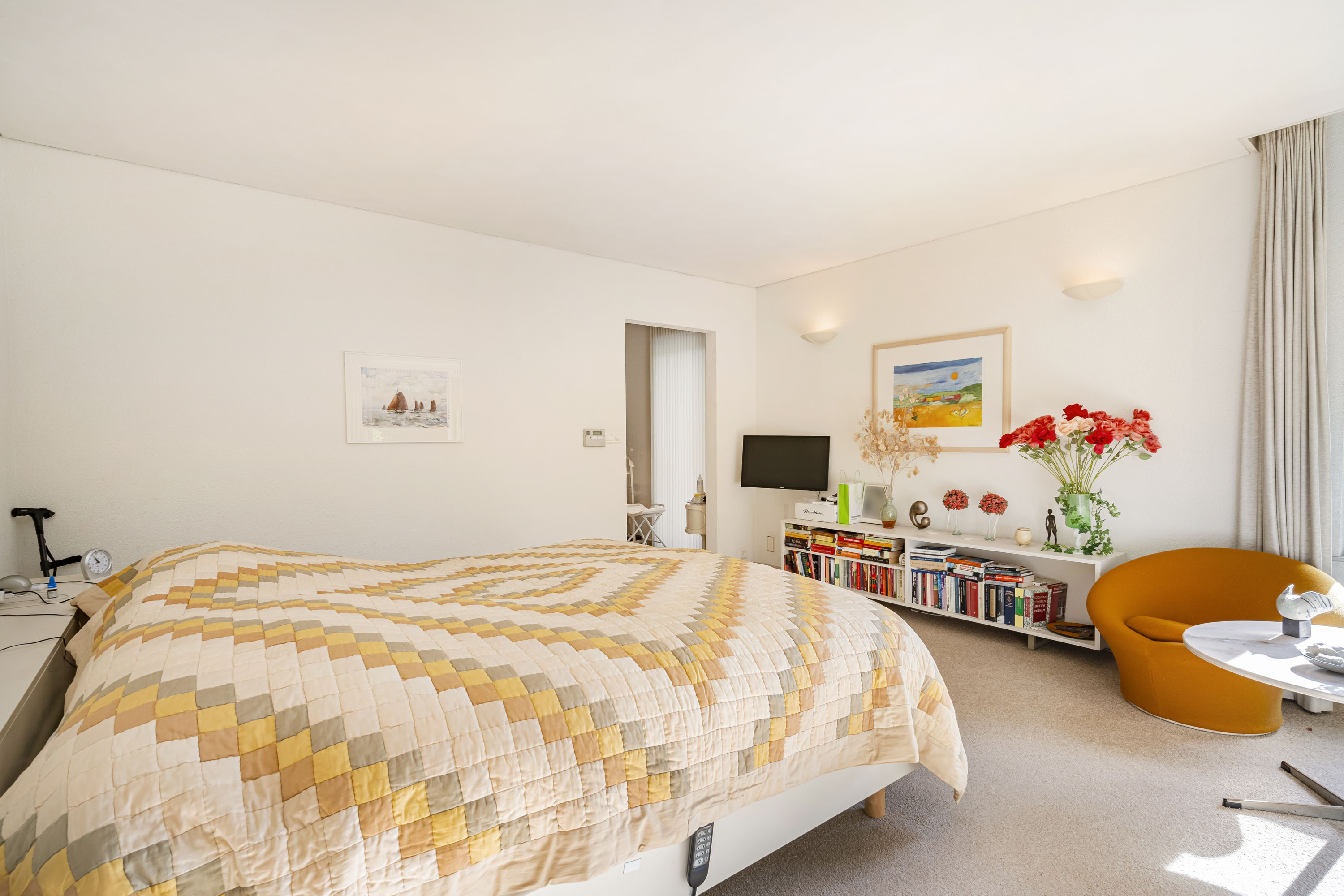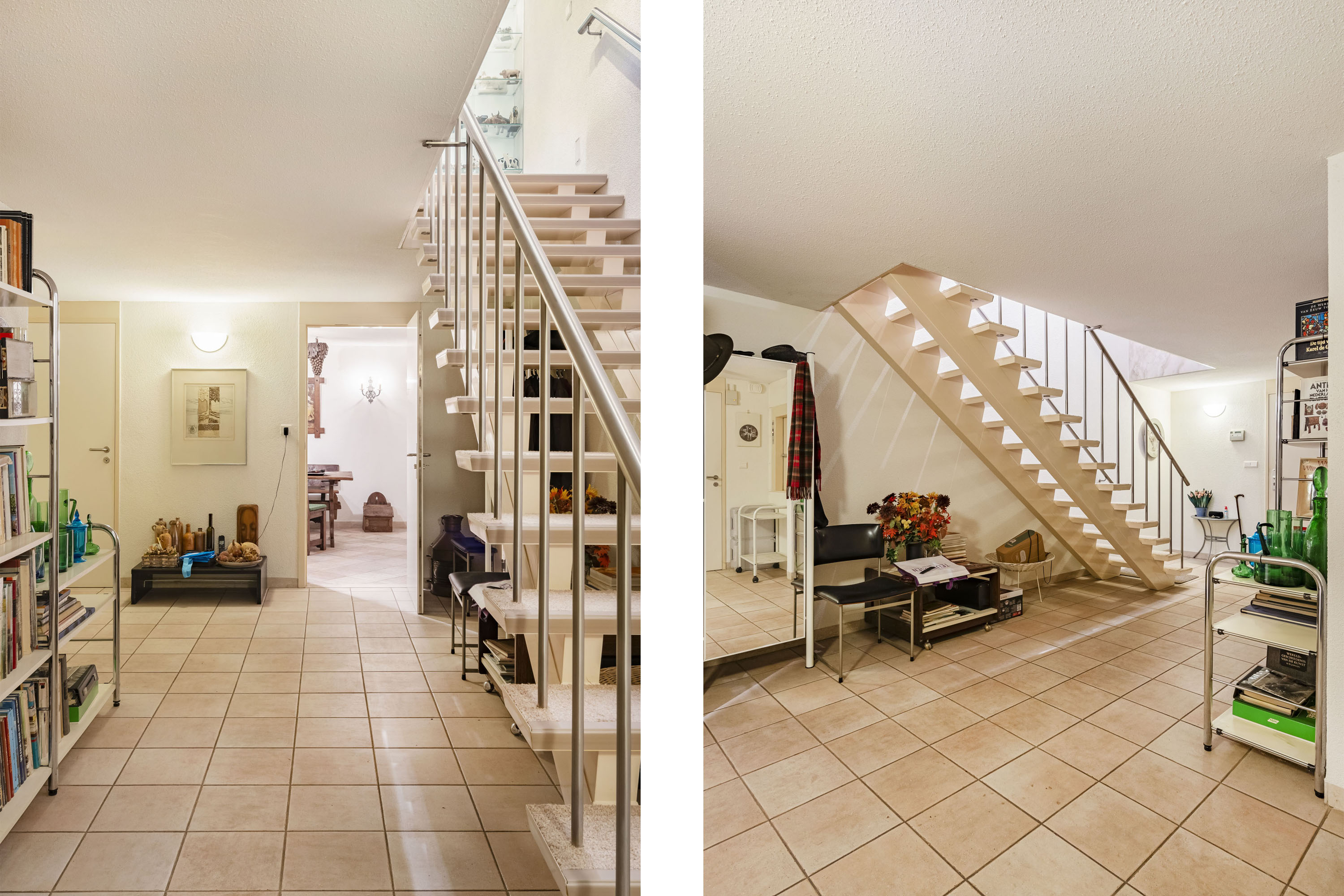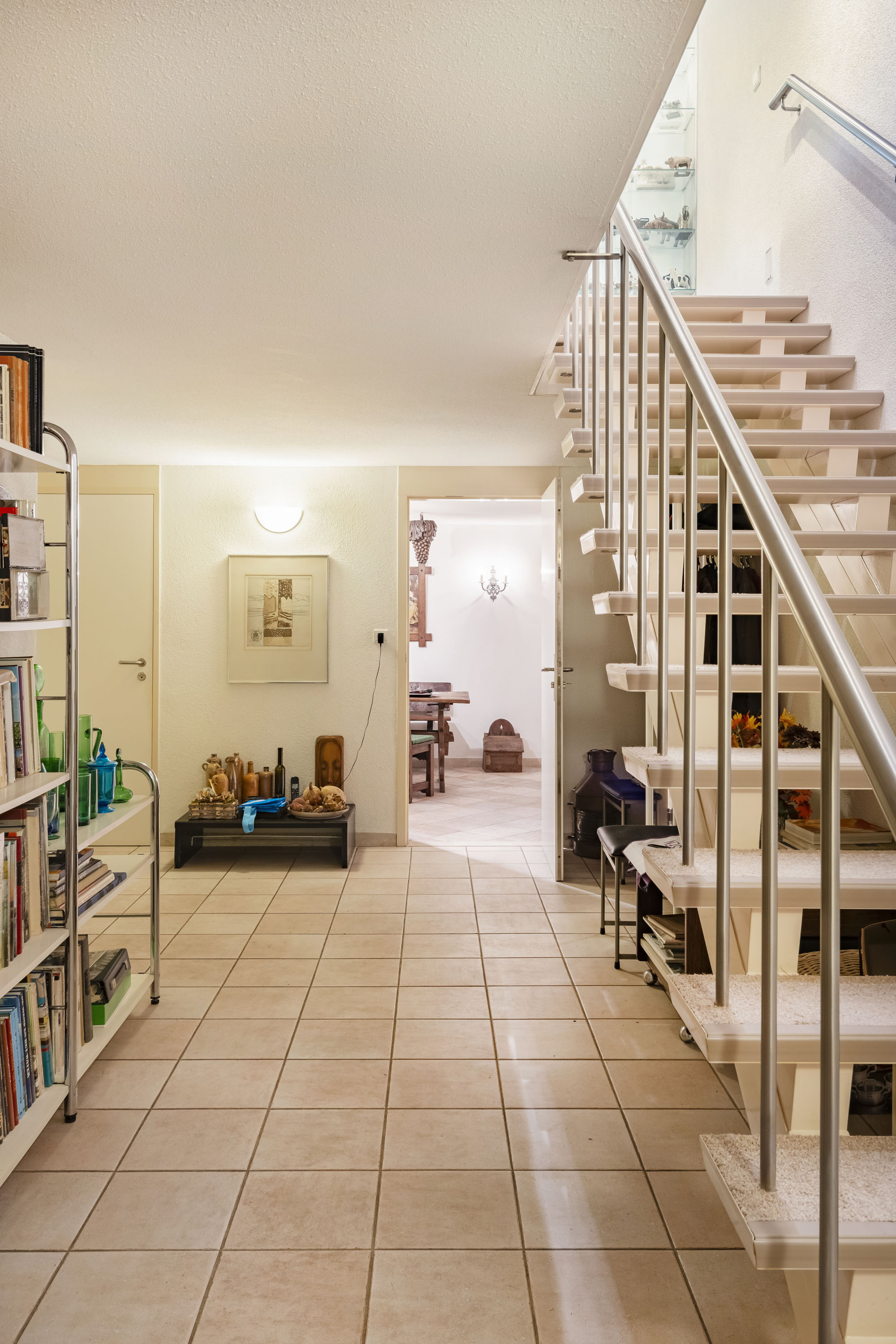 Η έξυπνη διαρρύθμιση περιλαμβάνει μεγάλο σαλόνι, τραπεζαρία με θέα στον κήπο, γραφείο, καθώς και κουζίνα ανοιχτής διάταξης που επικοινωνεί με βοηθητικό χώρο και διακριτικό αναβατόριο. Κομψές συρόμενες πόρτες εξισορροπούν τη διαφάνεια με την ιδιωτικότητα. Η εσωτερική πισίνα, με jet stream και συρόμενες πόρτες που οδηγούν στον κήπο, αποτελεί την επιτομή ευζωίας στο σπίτι. Η κύρια σουίτα διαθέτει κλιματισμό και άμεση πρόσβαση στον κήπο, ενώ τα δύο μπάνια προσφέρουν επιλογή μπανιέρας και ντουζ.