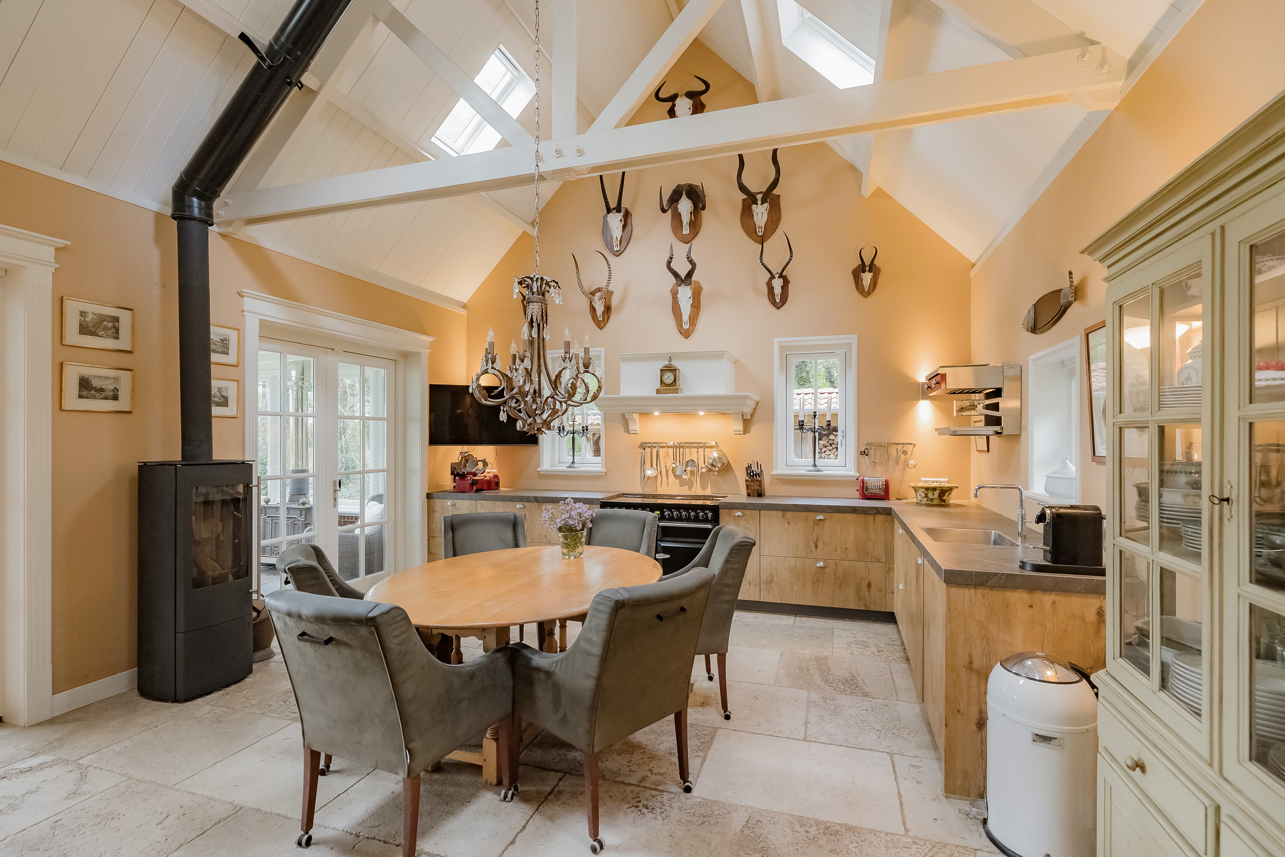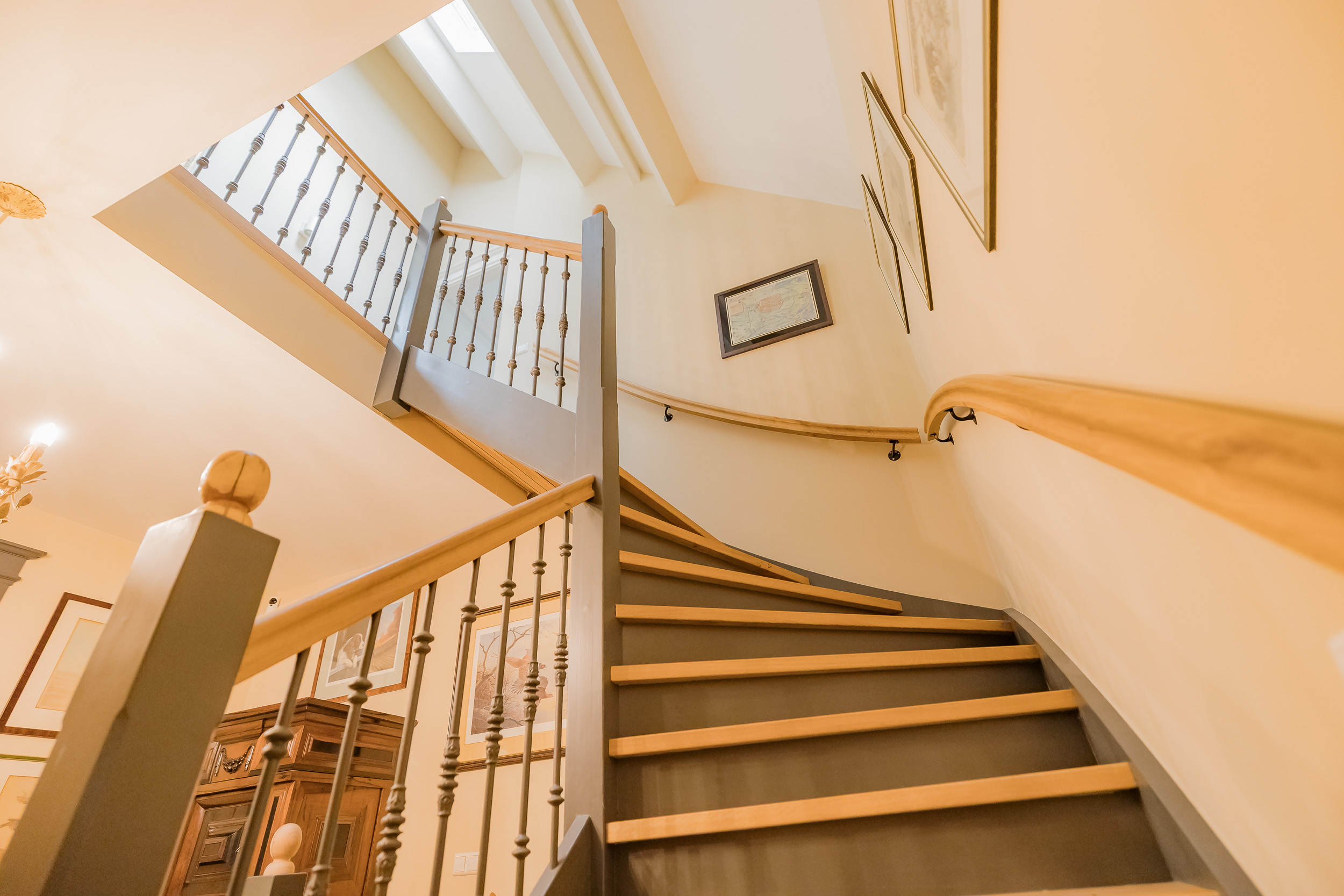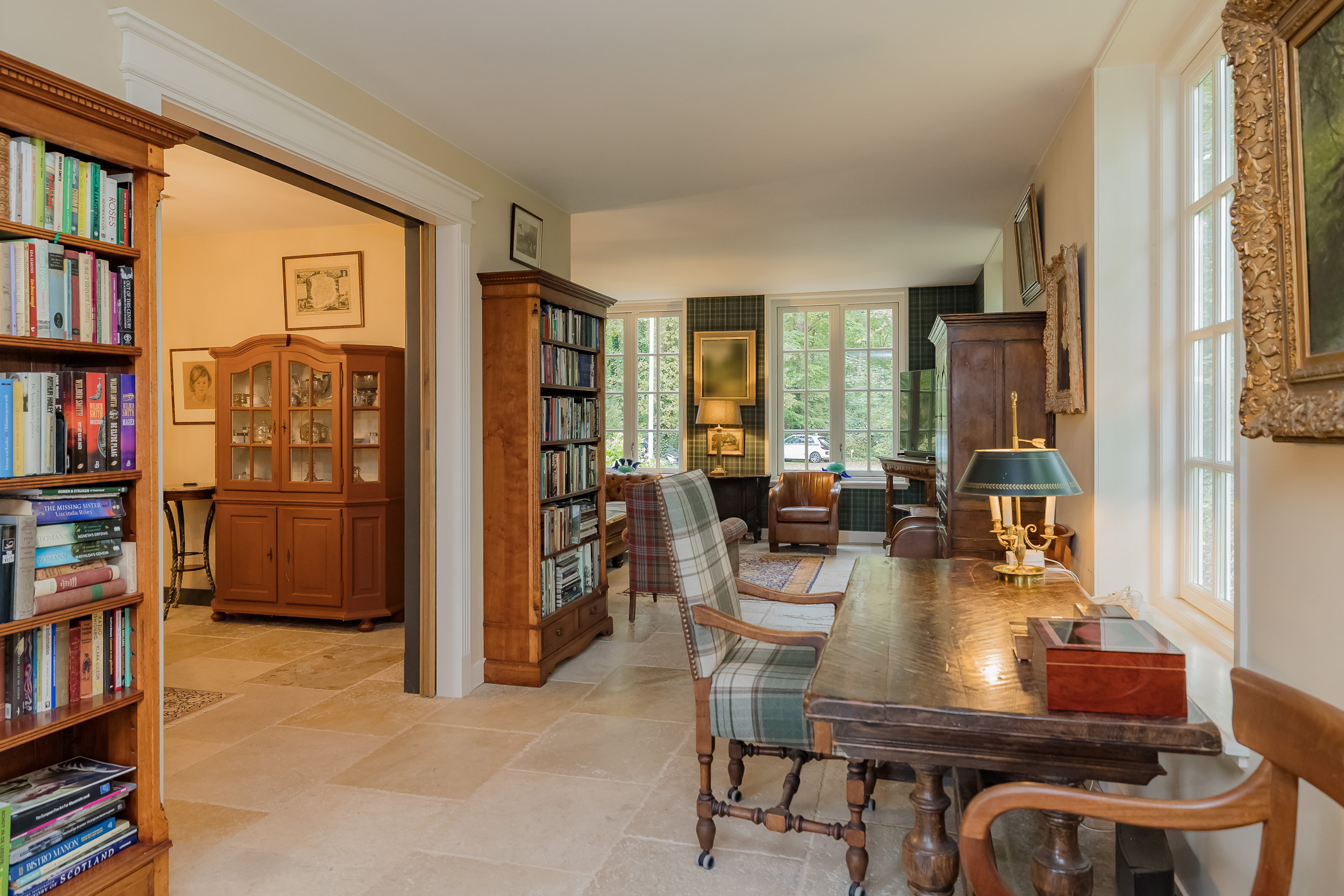 Ο χωρικός ρυθμός είναι γενναιόδωρος αλλά ταυτόχρονα μετρημένος. Μια επιβλητική είσοδος με σκάλα και ανελκυστήρα προσφέρει πρόσβαση σε όλο το σπίτι. Το σαλόνι, με τζάκι και ενδοδαπέδια θέρμανση, ανοίγεται σε βεράντα με θέα στο ώριμο δάσος, δημιουργώντας έναν αδιάλειπτο διάλογο ανάμεσα στον εσωτερικό και τον εξωτερικό χώρο. Η φιλόξενη κουζίνα διαθέτει επαγωγική κουζίνα AGA, υψηλά ταβάνια, πατάρι και άμεση πρόσβαση στον κήπο. Ο επάνω όροφος πλημμυρίζει από φυσικό φως μέσω φεγγιτών και παραθύρων τύπου dormer, ενώ η master σουίτα διαθέτει και δωμάτιο-γκαρνταρόμπα και πολυτελές μπάνιο. Δύο επιπλέον υπνοδωμάτια και δεύτερο μπάνιο φιλοξενούν με άνεση οικογένεια ή επισκέπτες.