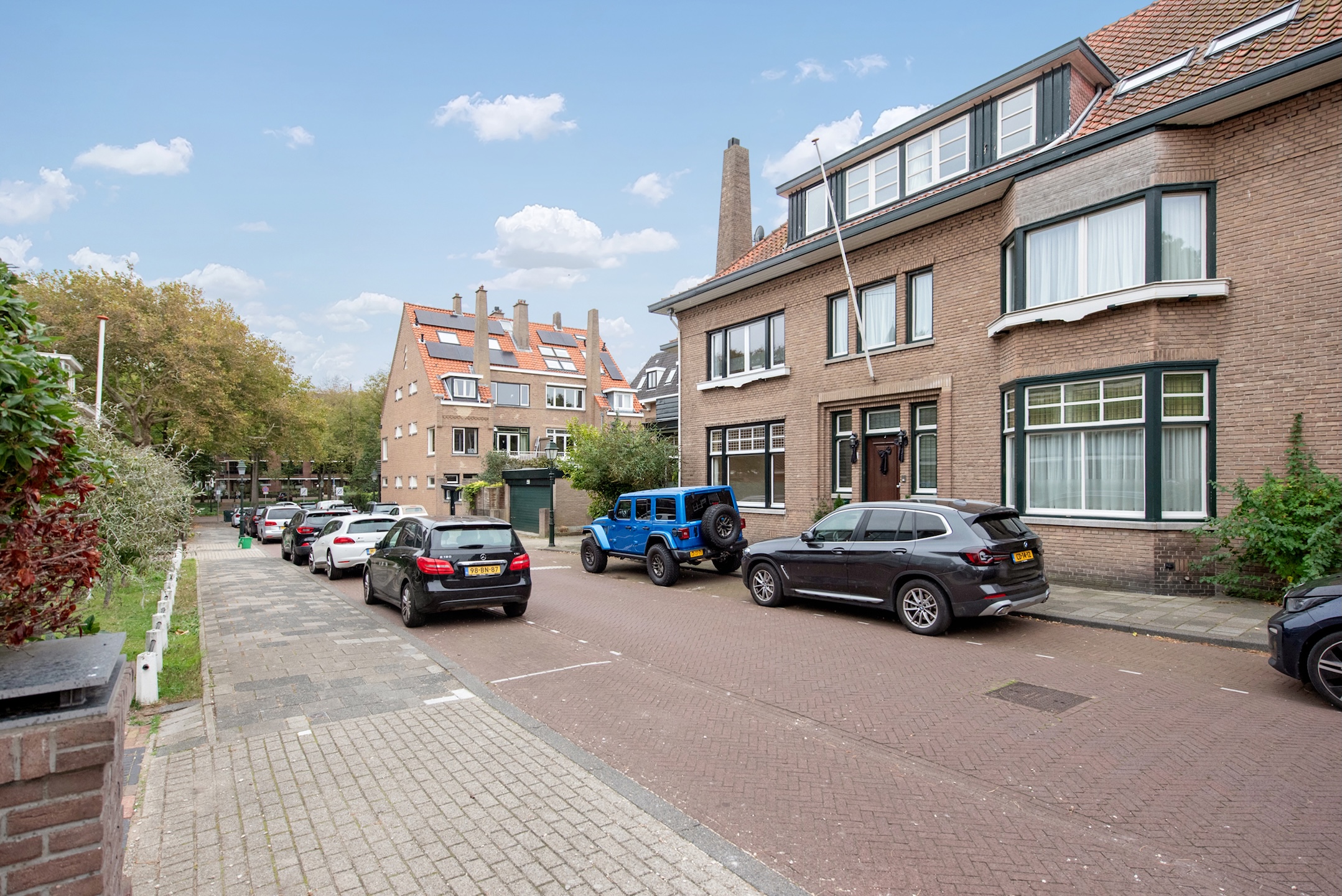 A truly distinguished, classic corner townhouse with multiple cellars, enjoying a semi-detached position with three open sides, a sunny south-facing back garden, and a charming side garden. Parking is conveniently located right beside the front door on your private driveway, with the possibility to create a sunken garage.