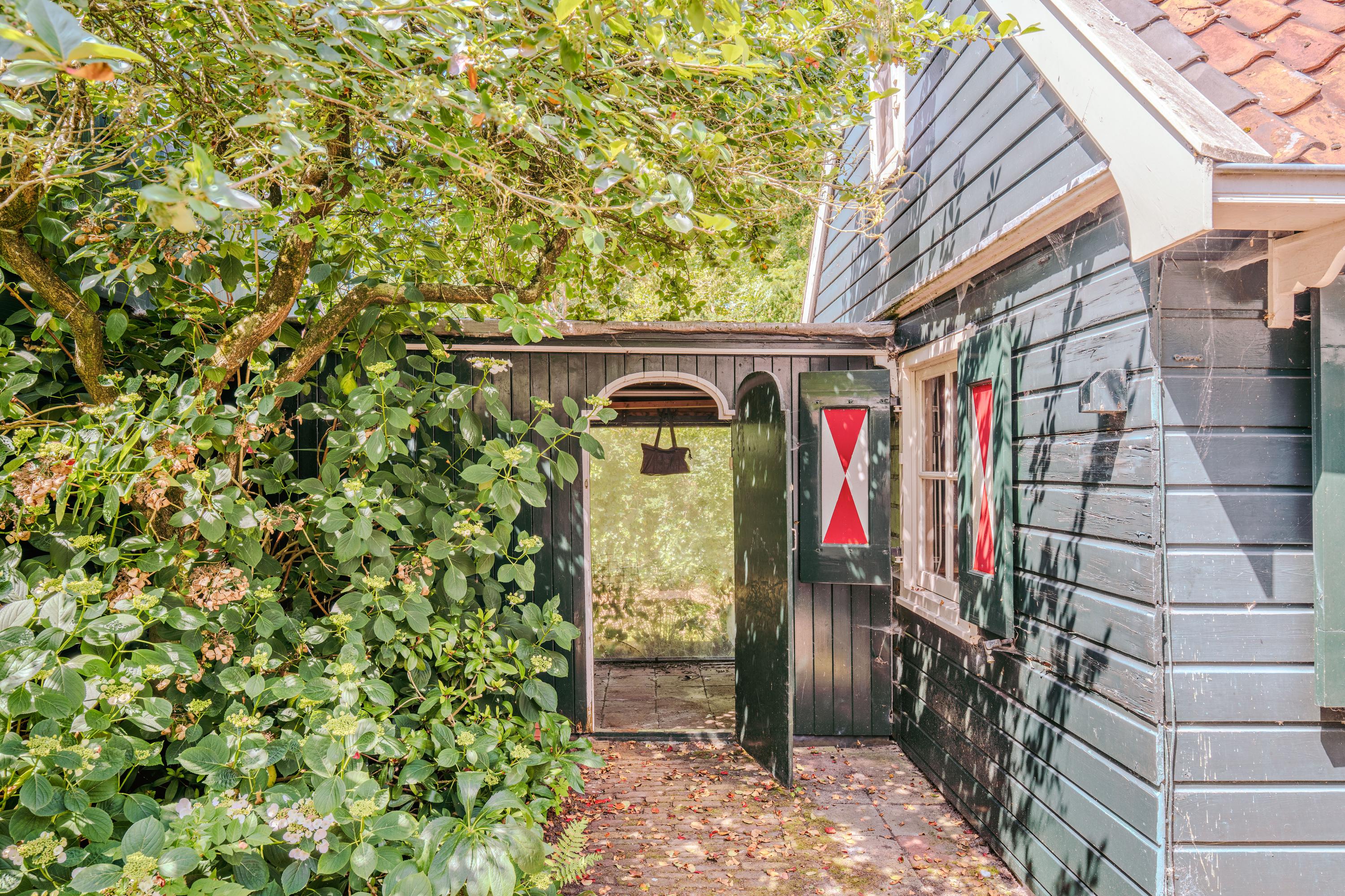 This authentic property offers a unique opportunity for those seeking a characteristic home in a special location, ready to be renovated entirely to one’s own taste. Situated along the Amsteldijk, the house lies slightly below road level and is partly hidden among the greenery. From the dike, a staircase descends to the front garden – a green space offering peace and privacy. On the right-hand side of the house, a narrow path runs along the façade to the front door, subtly set into the exterior wall.