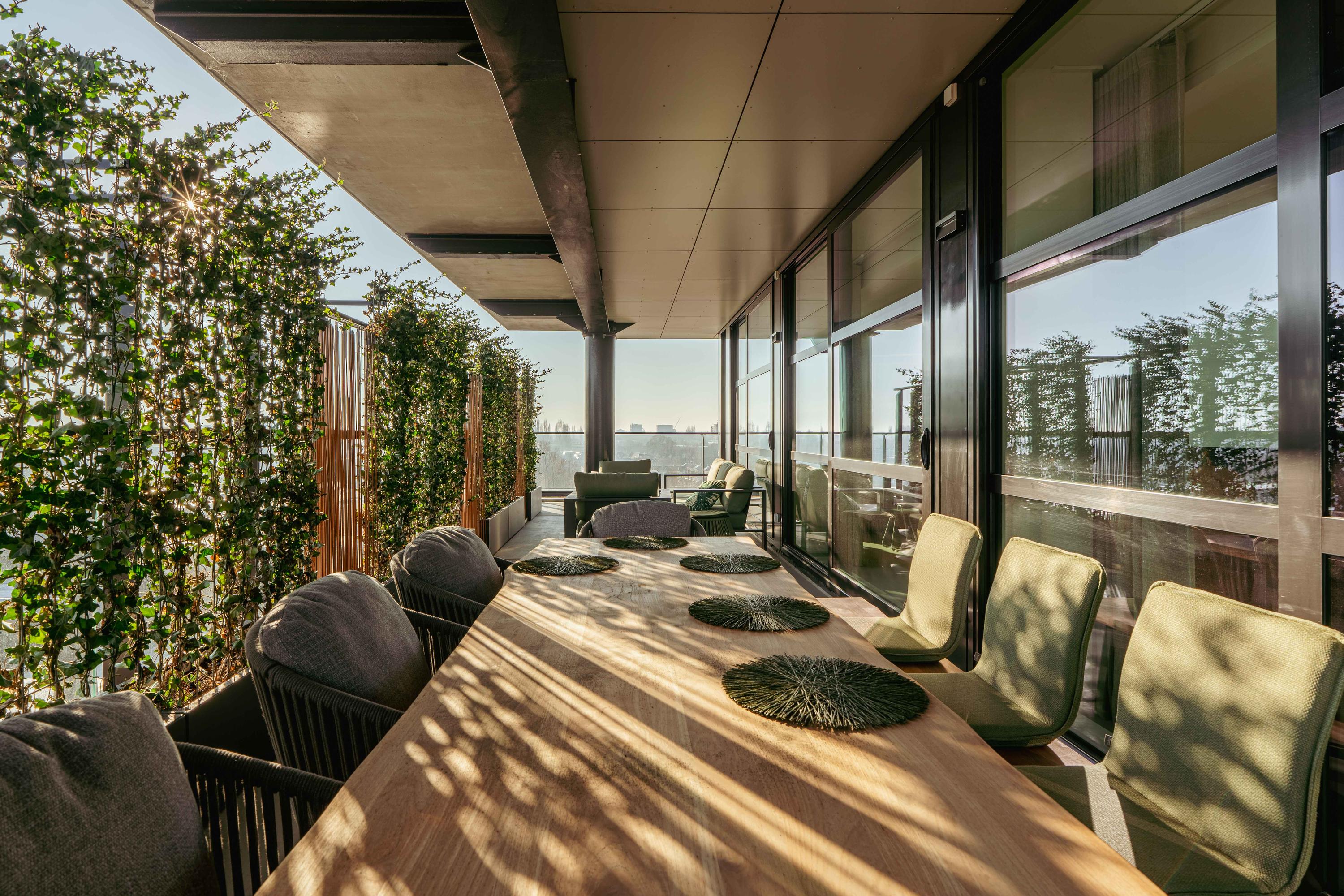 The park-like surroundings and inner gardens of The Mayor were designed by Lodewijk Baljon Landscape Architects, renowned for their craftsmanship and use of new techniques and materials. This firm is also responsible for the new Meander Park, which will be created on top of the recessed and covered A9 highway.