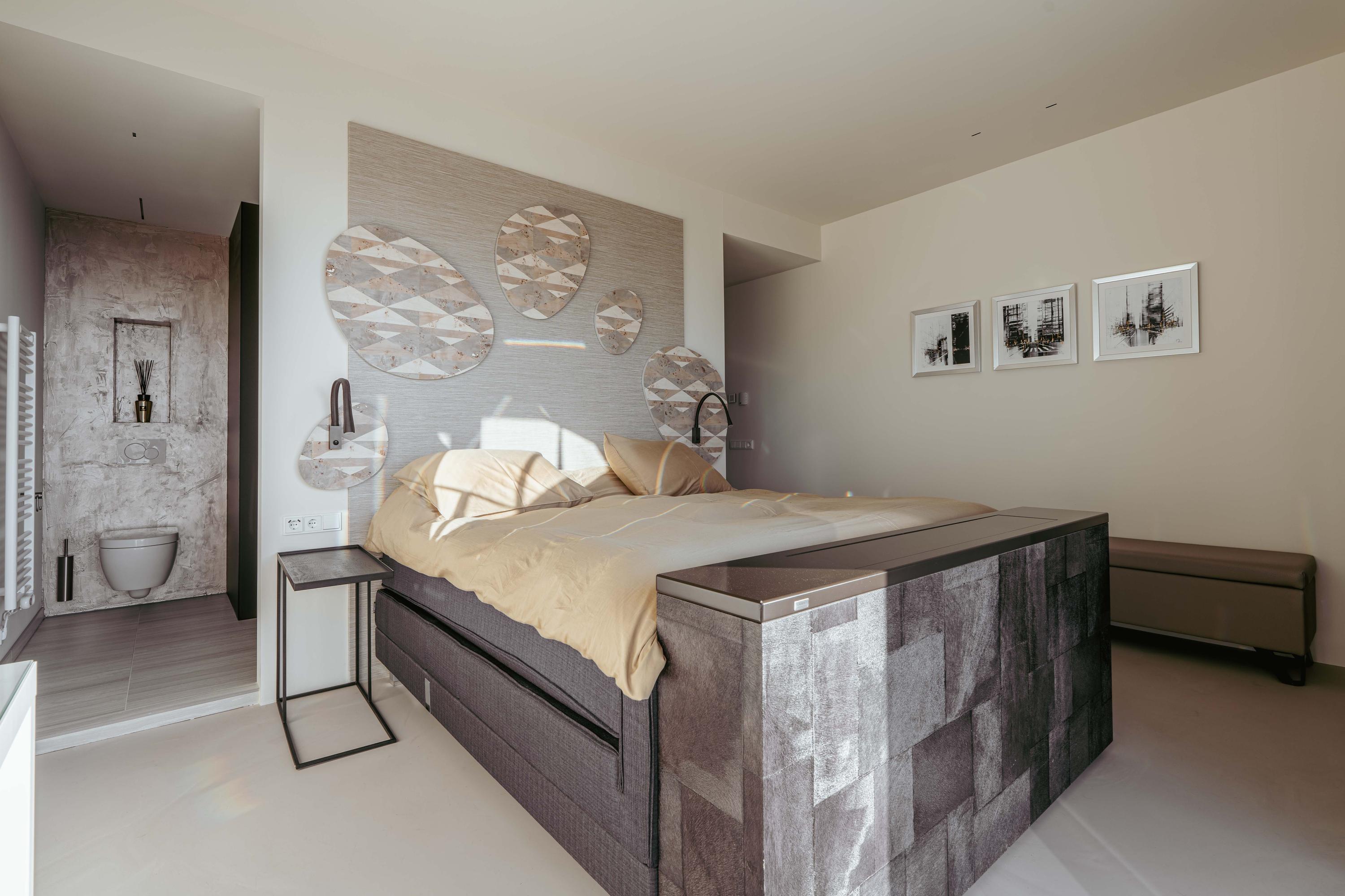 Surrounding the living and dining areas, you have access to a stunning sun terrace of over 63m², facing southeast, offering ample space for a large dining table and a lounge set. Its elevated position ensures breathtaking, unobstructed views.