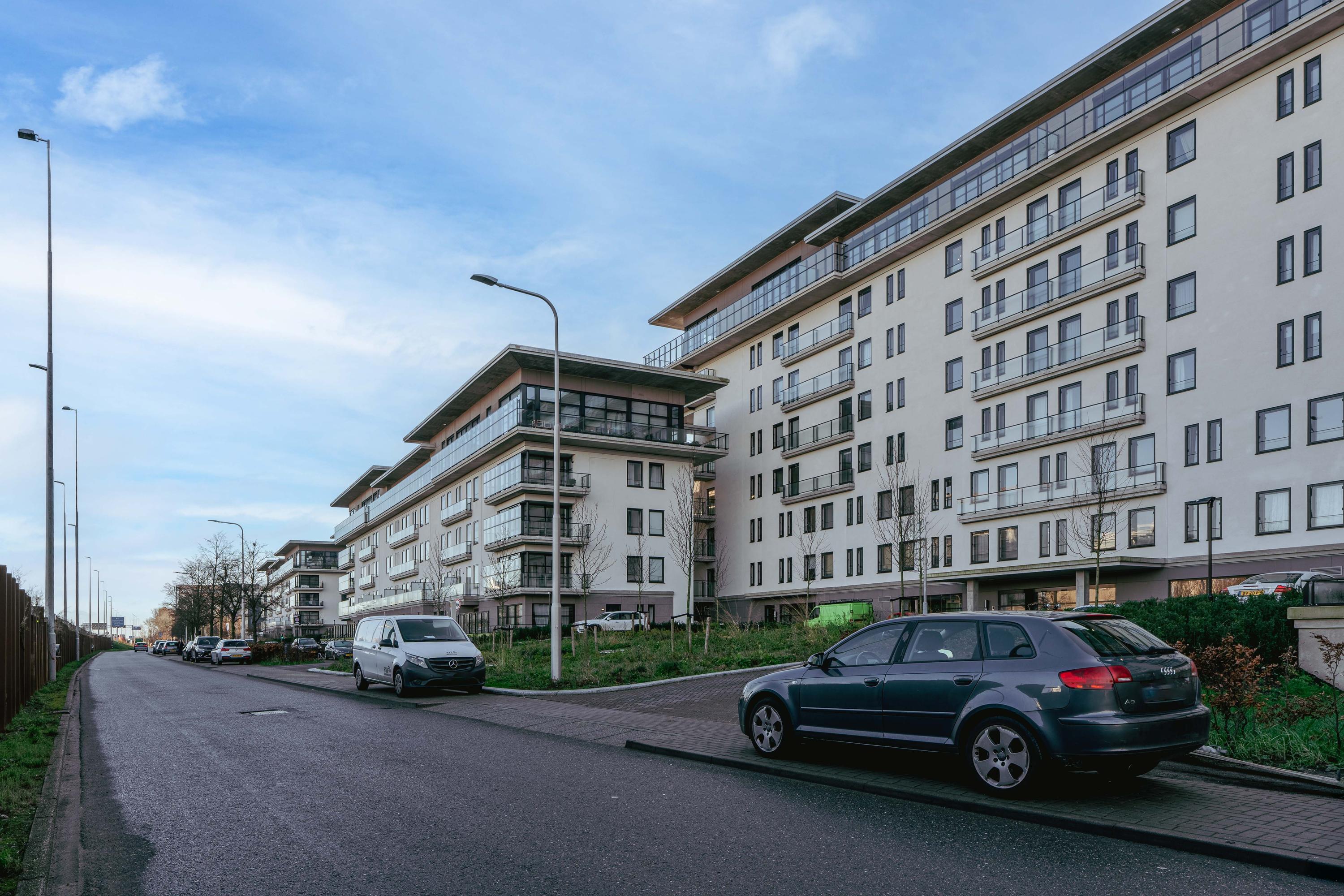 The A9 highway is currently being constructed below ground level, significantly reducing noise pollution. From the secured garage, you can access the highway without encountering traffic lights. The 85-meter-wide overpass above the A9 will soon be transformed into Meander Park, featuring a water feature, seating areas, and dedicated cycling and walking paths. Within a few minutes, you’ll be able to walk from The Mayor through the new park to the city center.