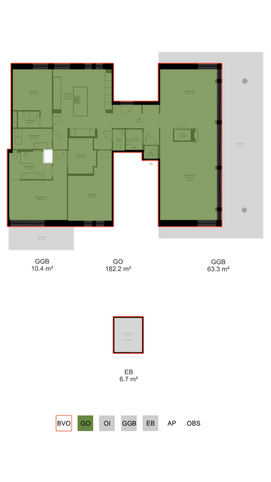 The parking garage is located in the basement of The Mayor, where you have access to two private parking spaces, both equipped with charging stations for electric vehicles. Additionally, a private storage unit of approximately 7m² is available.