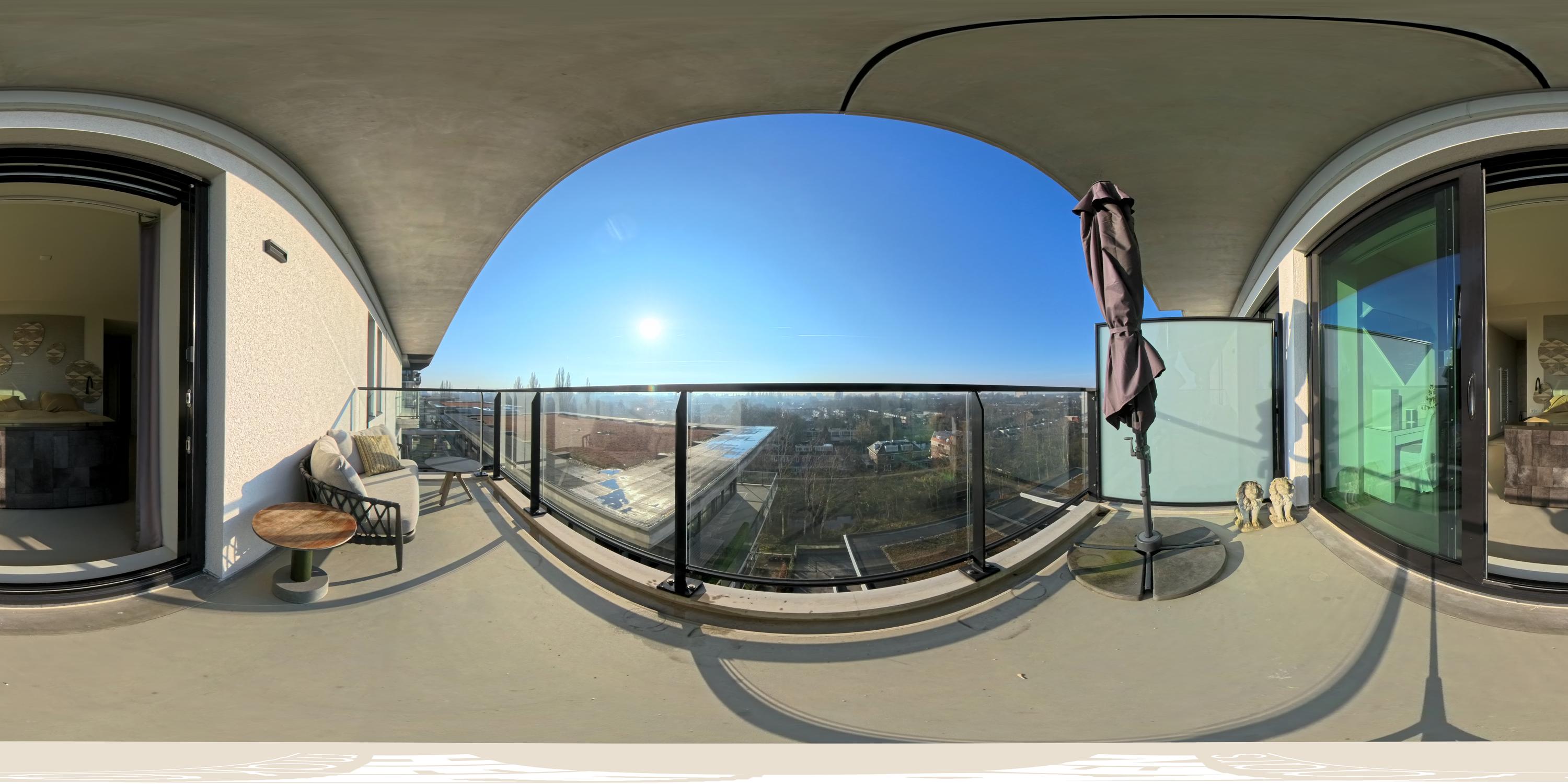 Spacious sun terrace (approx. 63m²) surrounding the entire living room, southeast-facing