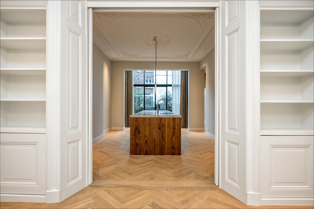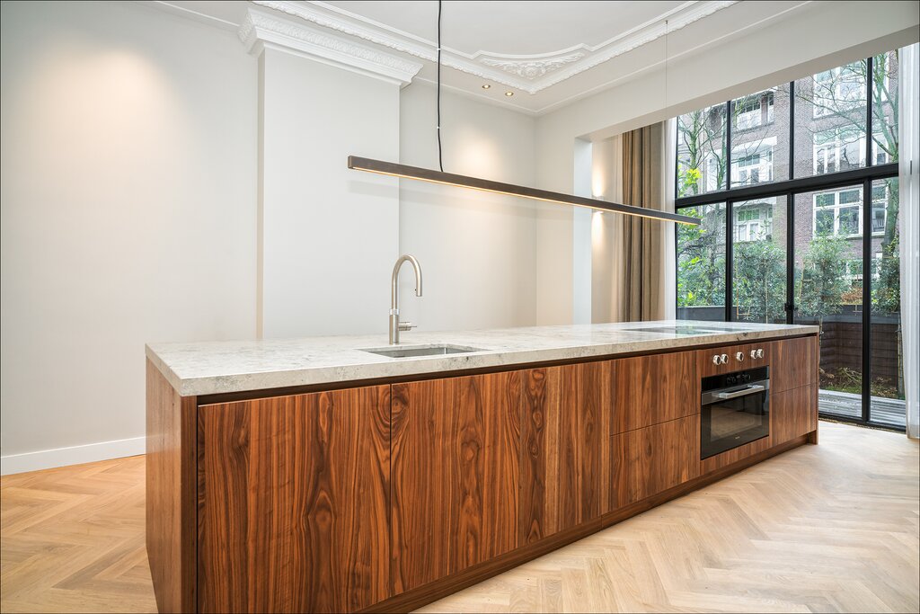 Prachtig herenhuis van ca. 385m². high-end gerenoveerd met behoud van originele details, verdeeld over 5 woonlagen, 6 openhaarden, heeft zowel een tuin als royaal dakterras met buitenkeuken. Een wellness met sauna, stoomdouche, fitnessruimte en een lift waarmee u tot en met het dakterras gebruik van kunt maken. Ook is de woning volledig voorzien van vloerverwarming en Climate Controll. Ongekende luxe in het hartje van Amsterdam Zuid.