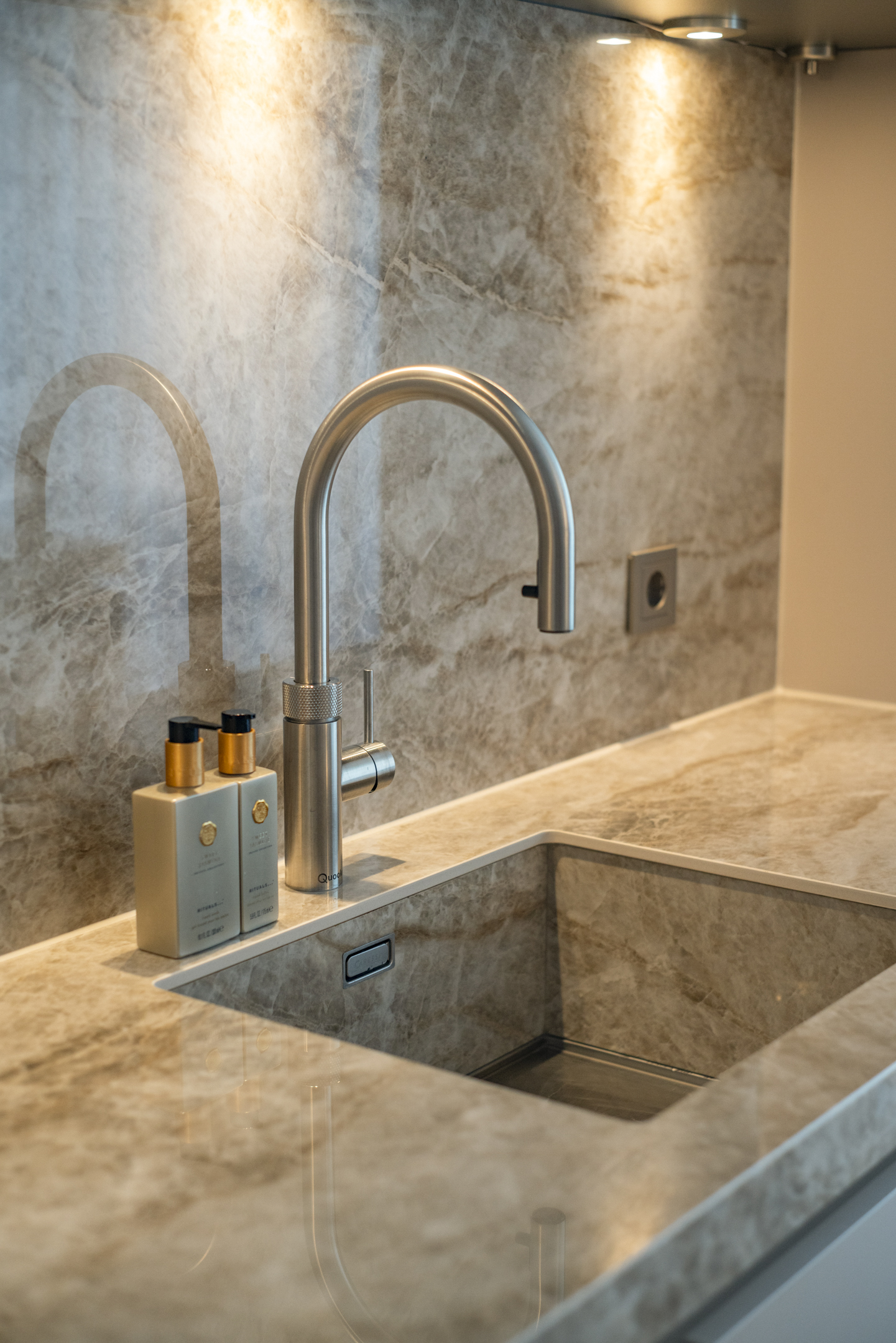 The kitchen is a bespoke dream design with an impressive 2.80-metre-wide Dekton cooking island, high-quality Siemens appliances (with 5-year warranty) and a Quooker boiling water tap. Cooking and living flow seamlessly together here.