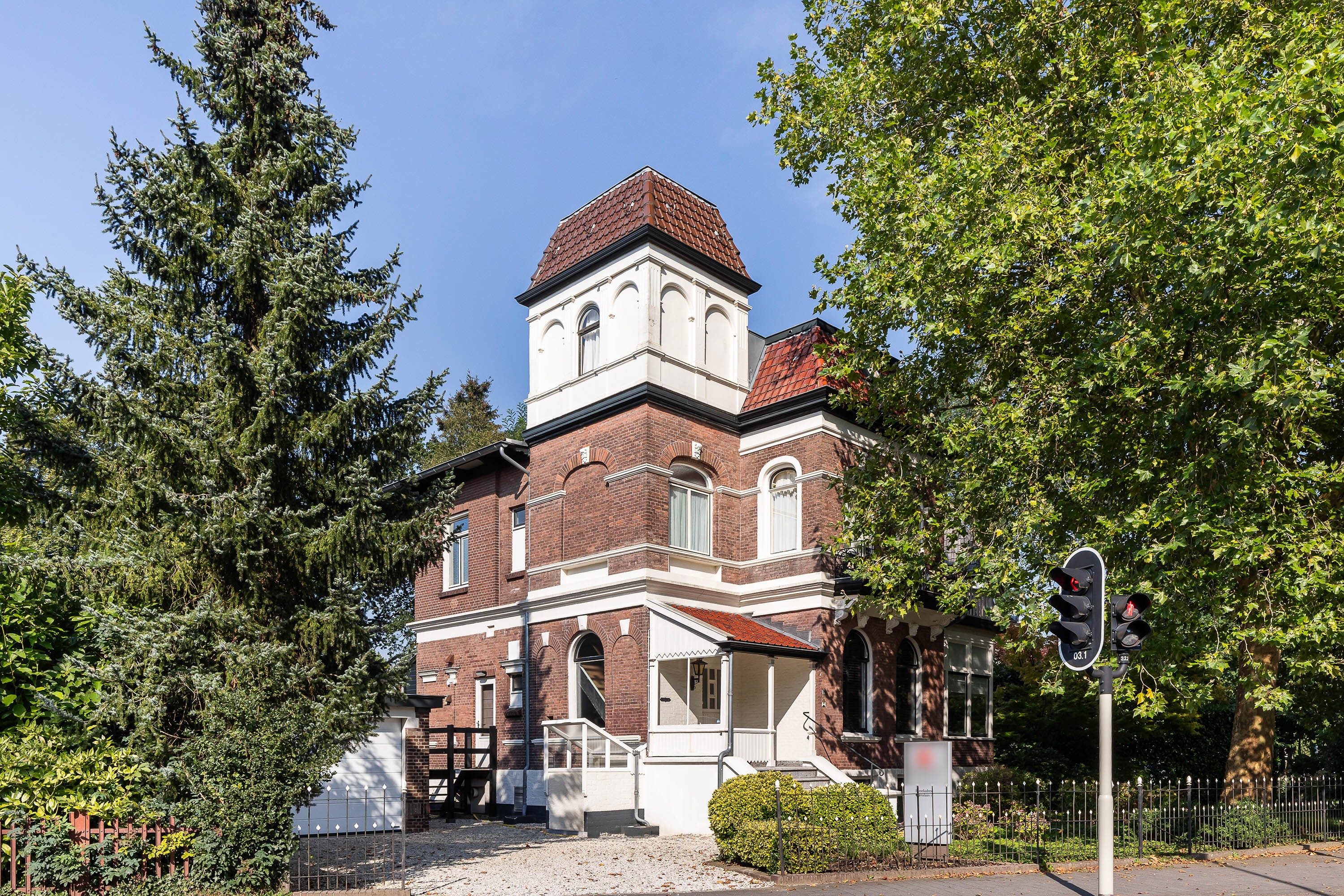 Standing on the corner of the one-way streets Kerklaan and Mr. van Rhemenslaan, this impressive villa was designed in 1878 by architect A.A.M. Beretta. Built in the eclectic style, it is a fine example of 19th-century urban architecture, blending influences from Neo-Renaissance and Neoclassical design. The curved pediments above the arched windows, ornate stonework, decorative cornices and distinctive corner tower lend the property its unmistakable presence. Its architectural quality led to its designation as a listed municipal monument.