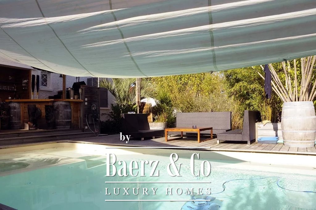 A terrace, private garden, and inviting pool set the scene for tranquil outdoor living, with the property’s setting evoking a calm meditative pace. The existing plot stretches across 668m2, allowing space for quiet reflection or gatherings under the Canéjan light. Daily needs are met by an integrated parking area, and the property’s position offers effortless access to city amenities and leisure pursuits nearby.