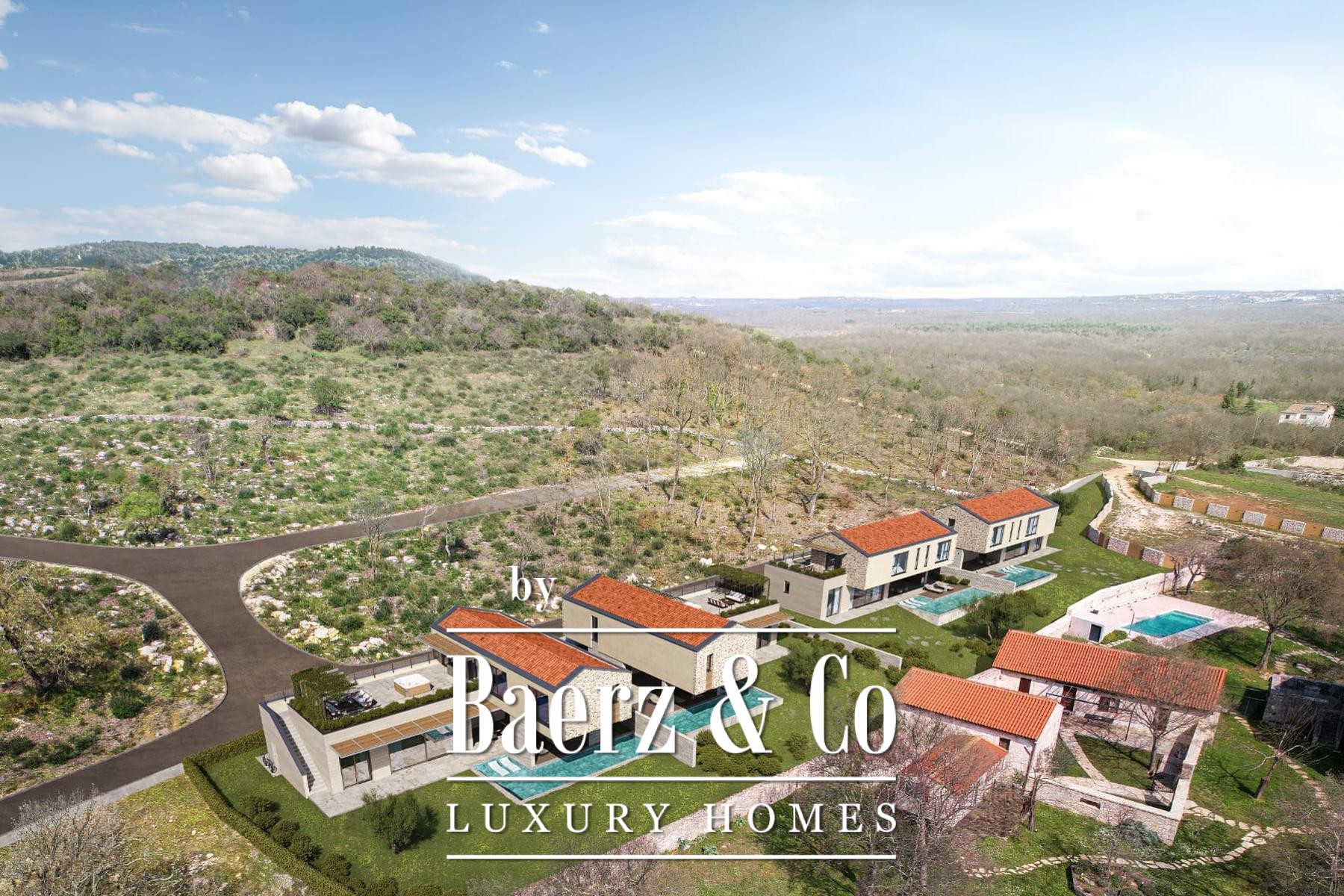 Luxury villa Bale Croatia offers an understated, contemporary retreat on the western coast of Istria. This exclusive development, comprising four villas, stands within a peaceful residential enclave near Bale and in close proximity to Rovinj. Each residence is positioned on an individual plot of approximately 539 m², featuring a gross built area of 365 m² and developed living space of 244.62 m² across two levels.