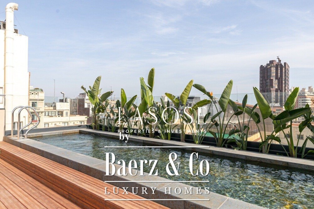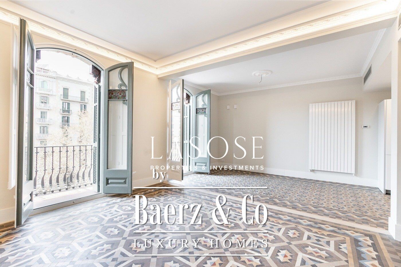 Apartment Barcelona is presented in a building of rare historic integrity on Gran Vía, steps from Passeig de Gràcia. This property offers 170 m² of living space, balancing authentic modernist architecture and refined restoration. The three bedrooms and three bathrooms are set across luminous spaces, with light flowing from original bay windows and balconies. The building’s interiors celebrate carefully revived mosaic flooring, stained glass, intricate woodwork, and restored ceiling mouldings, cultivating a sense of timeless quality and spatial rhythm. Open living areas are marked by cast pillars, bespoke kitchens with leading appliances, and functional layouts intended for elevated city life. Residents enjoy access to a gymnasium and an exclusive wellness spa with a sauna, as well as a community rooftop pool and solarium offering panoramic Barcelona views. Eixample is central to the city’s cultural pulse, rich in art nouveau landmarks and tree-lined elegance. Discreet quality extends to every detail, underscored by considered amenities such as wardrobe cupboards, heating, and elevator access, defining a residence built for contemporary urban living with provenance.