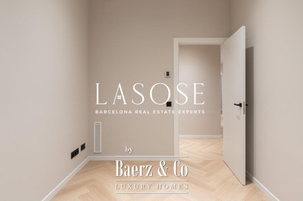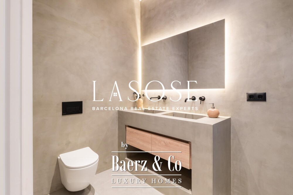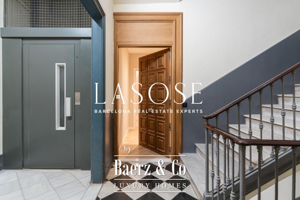 Three bedrooms, including a master suite with private bathroom and separate dressing room, are complemented by fitted wardrobes and custom carpentry. Comfort is assured through aerothermal air conditioning and double-glazed wooden windows. Residents benefit from the convenience of an elevator, concierge service, video intercom, and secure armored door. The long-tail variation luxury apartment for sale in Barcelona is well-suited for those who value discretion and design.