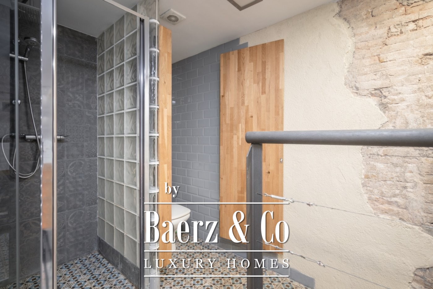 . . This catalan style apartment consists of 218 m2 plus 74 m2 of private terrace with pool. Upon entering, we find a corridor with huge windows that overlooks a large interior patio offering the space plenty of natural light. Ithis area connects the three double bedrooms; each one with its private bathroom, and another room that acts as a large multifunctional space that can perfectly be used as an office space.. . Following the corridor we find the day area, a huge and spacious space with very high ceilings up to 5 meters, composed of a large open kitchen, original brick walls and tiles, a toilet and a beautiful living room with a (wood) fireplace from which you can access the wonderful terrace with a pool shared with the neighbour next door. The terrace is private and is recently restored with new roofing to guarantee privacy. The whole house was completely renovated keeping original elements and decorated with great