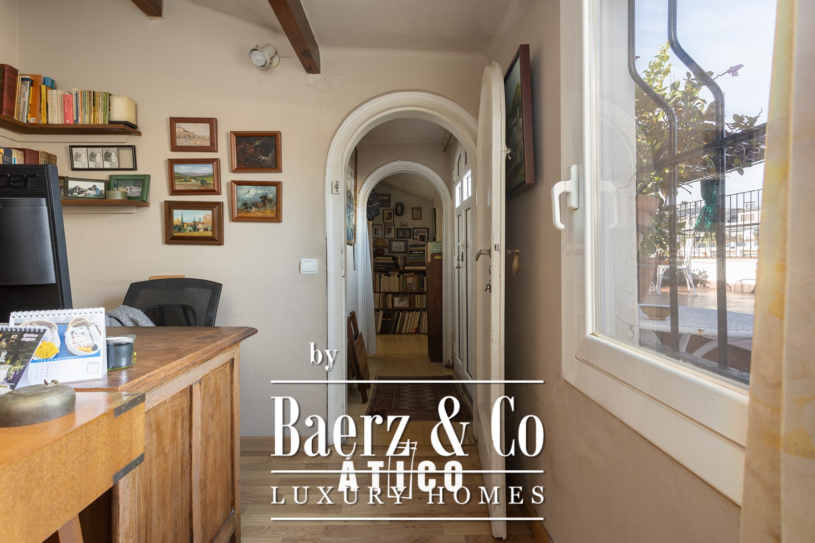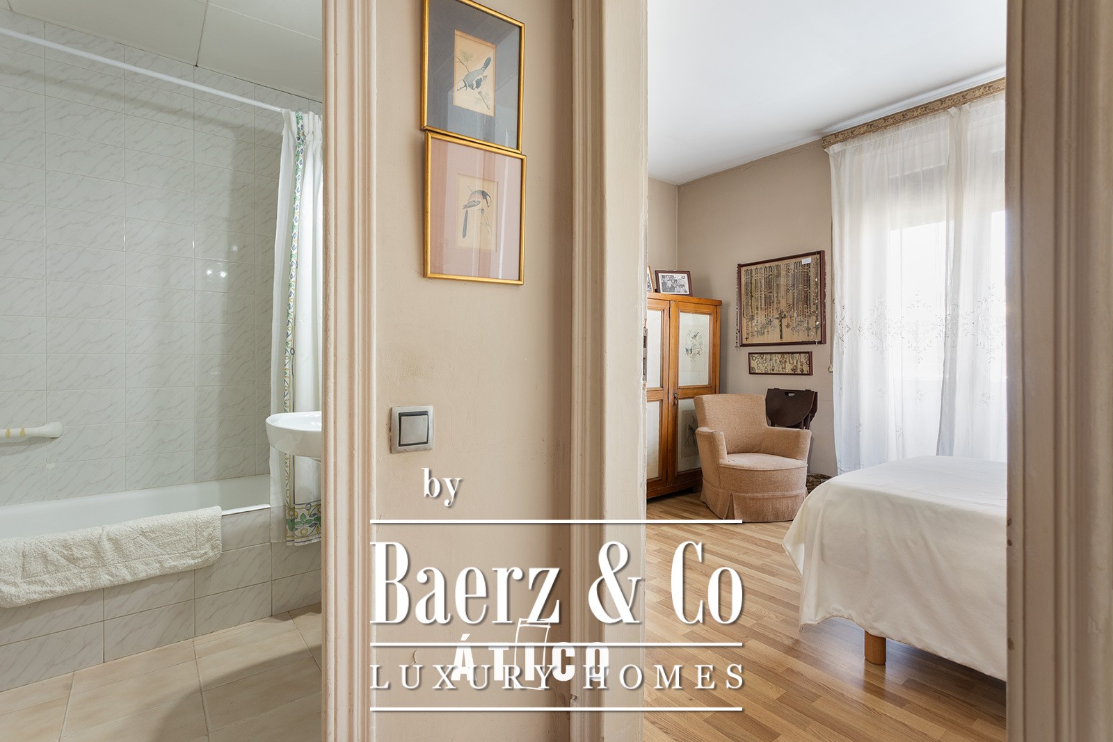 This duplex penthouse Barcelona occupies the ninth floor of a distinguished building by architect Mitjans at the corner of General Mitre and Muntaner. Bathed in natural light and tranquility, the 188m² residence offers a rare template for transformation in one of the city’s most sought-after quarters, only steps from Monterols Gardens. The penthouse requires renovation, presenting an opportunity to create a space of timeless character and individuality.