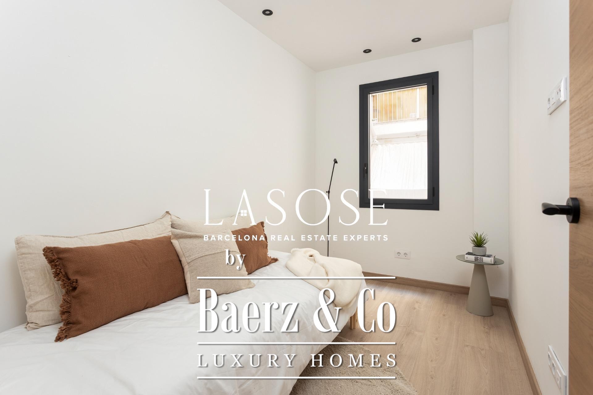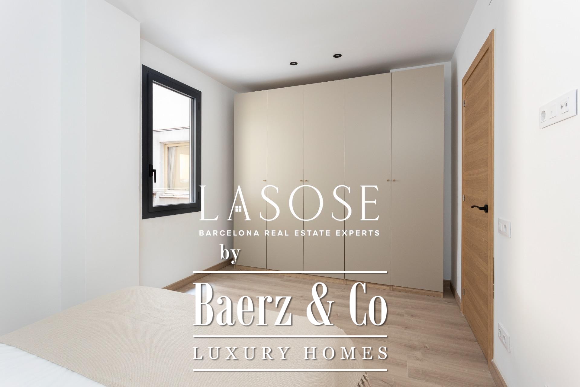 Three bedrooms include a main suite with terrace access, fitted wardrobes, and a private bathroom, complemented by a double and single bedroom. Both bathrooms feature concealed taps, LED illumination, and porcelain detail. Amenities include ducted Mitsubishi air conditioning, advanced insulation, laundry room, and a parking space in the building for a small car or motorbike, offering discreet comfort in the core of Barcelona. This luxury apartment for sale in Barcelona presents the equilibrium of modern design and metropolitan lifestyle.