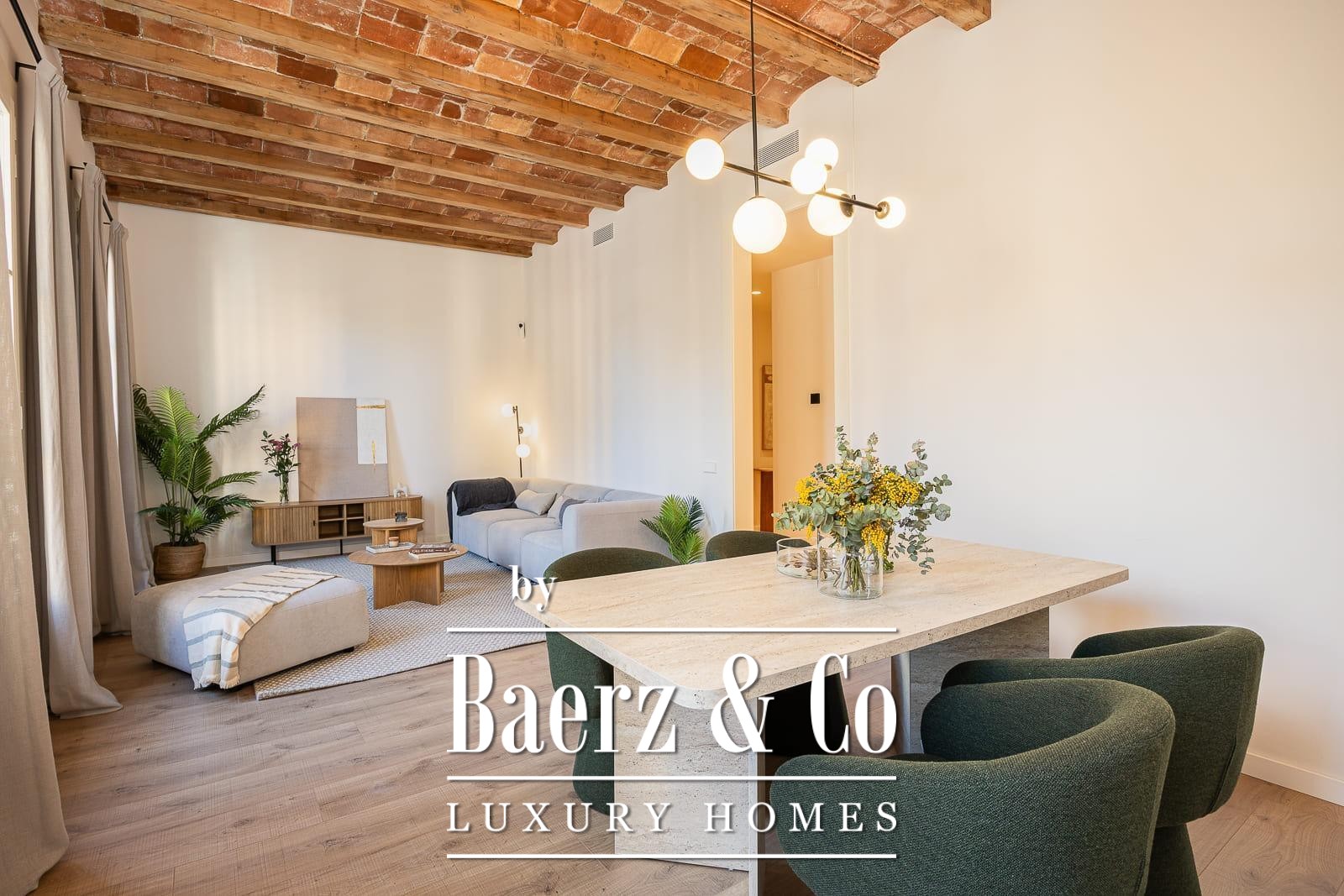 The comprehensive renovation integrates original architectural details, such as restored Catalan vaulted ceilings, with contemporary craftsmanship and quality materials. Oak flooring, updated carpentry, and refined finishes are present in every detail. Climate control, modern installations, and energy-efficient systems ensure day-to-day comfort.