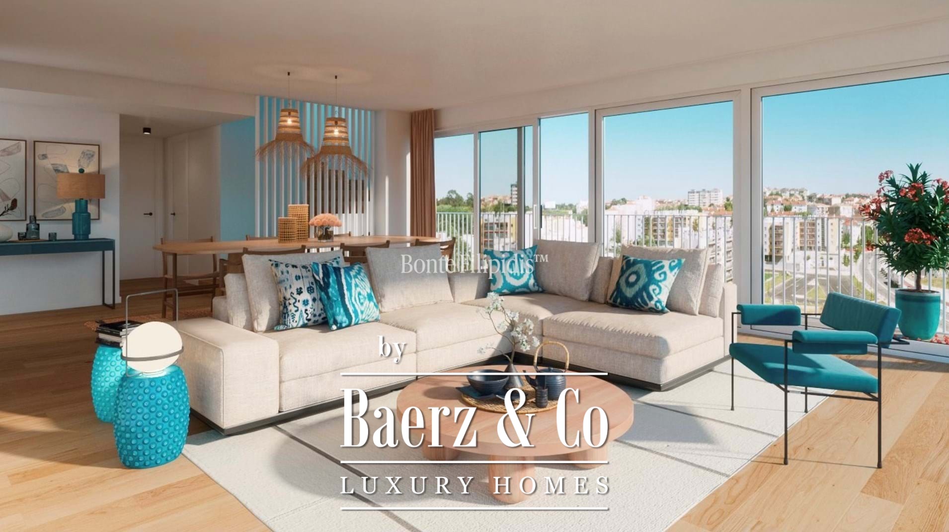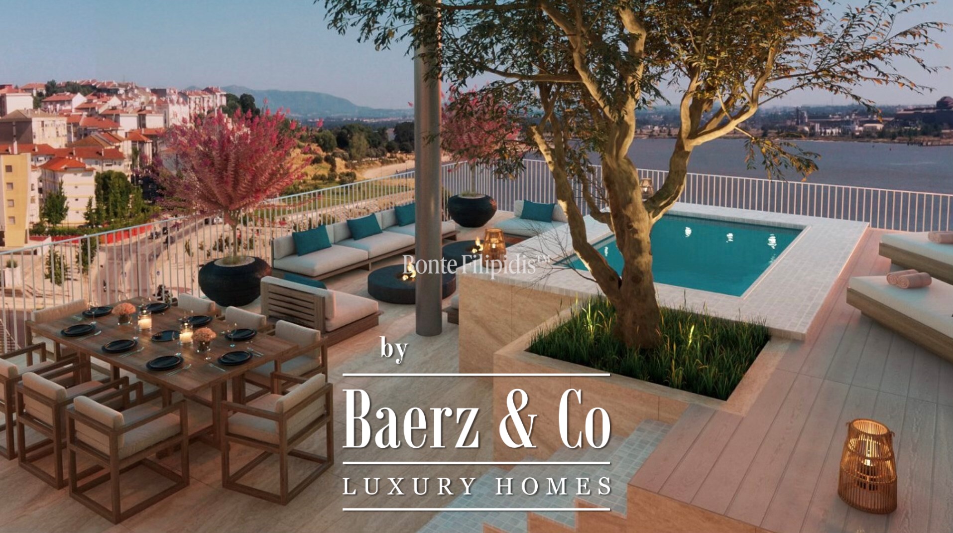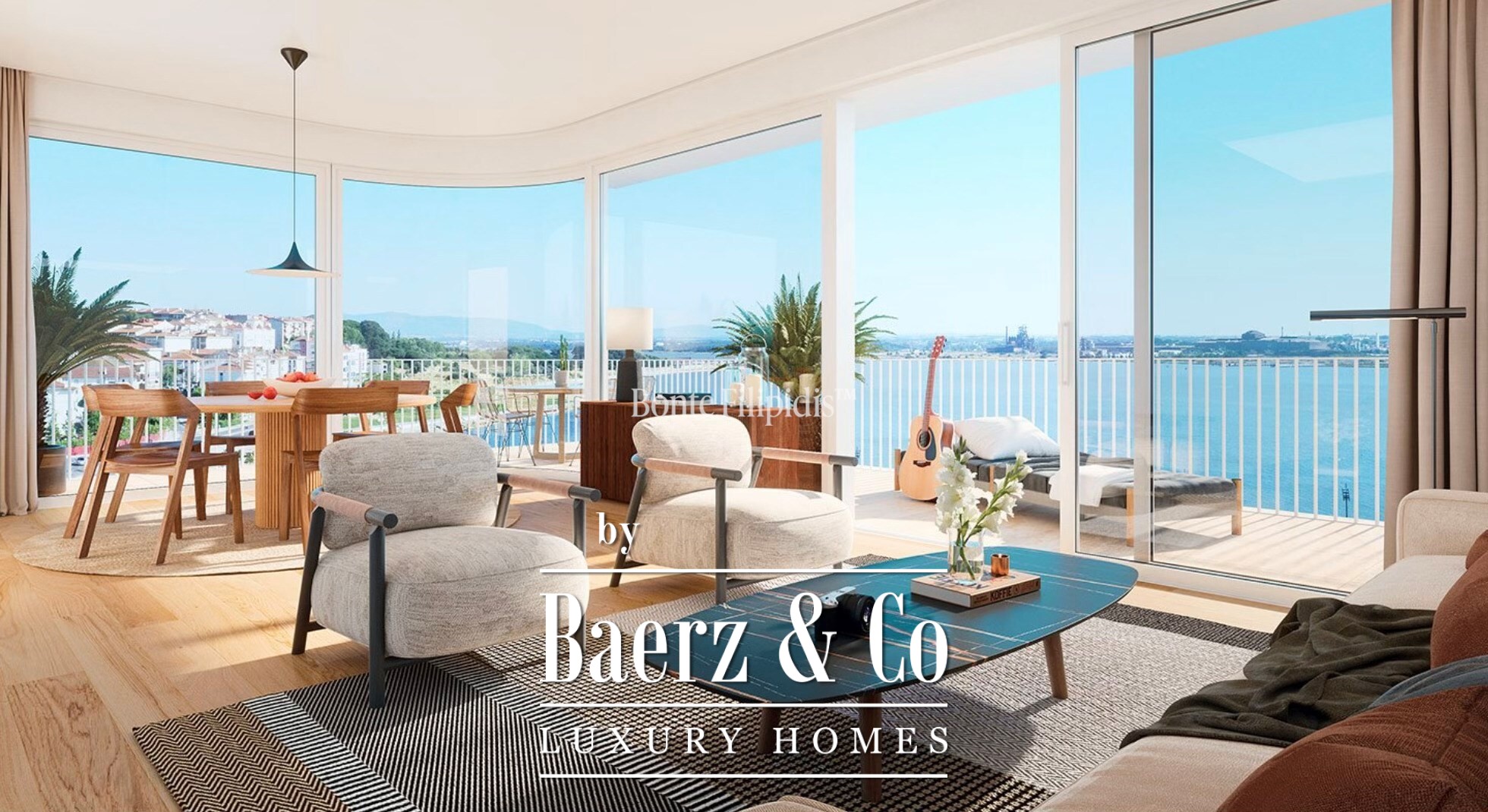 The duplex penthouse Barreiro e Lavradio commands panoramic views over the Tagus River from its privileged position on Avenida da Liberdade. With 147.58 m² of interior living space and 126.48 m² of outdoor areas, the residence balances openness and intimacy within a contemporary development, just minutes from Lisbon.