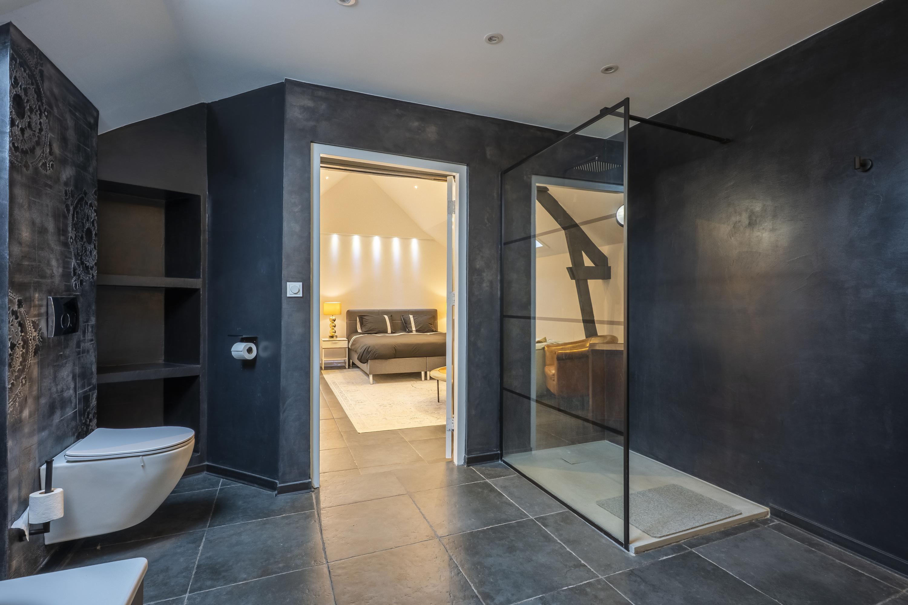 • its own bathroom in warm betonfresco