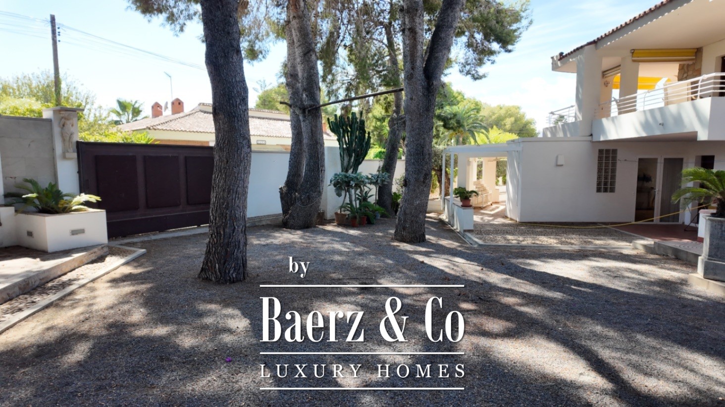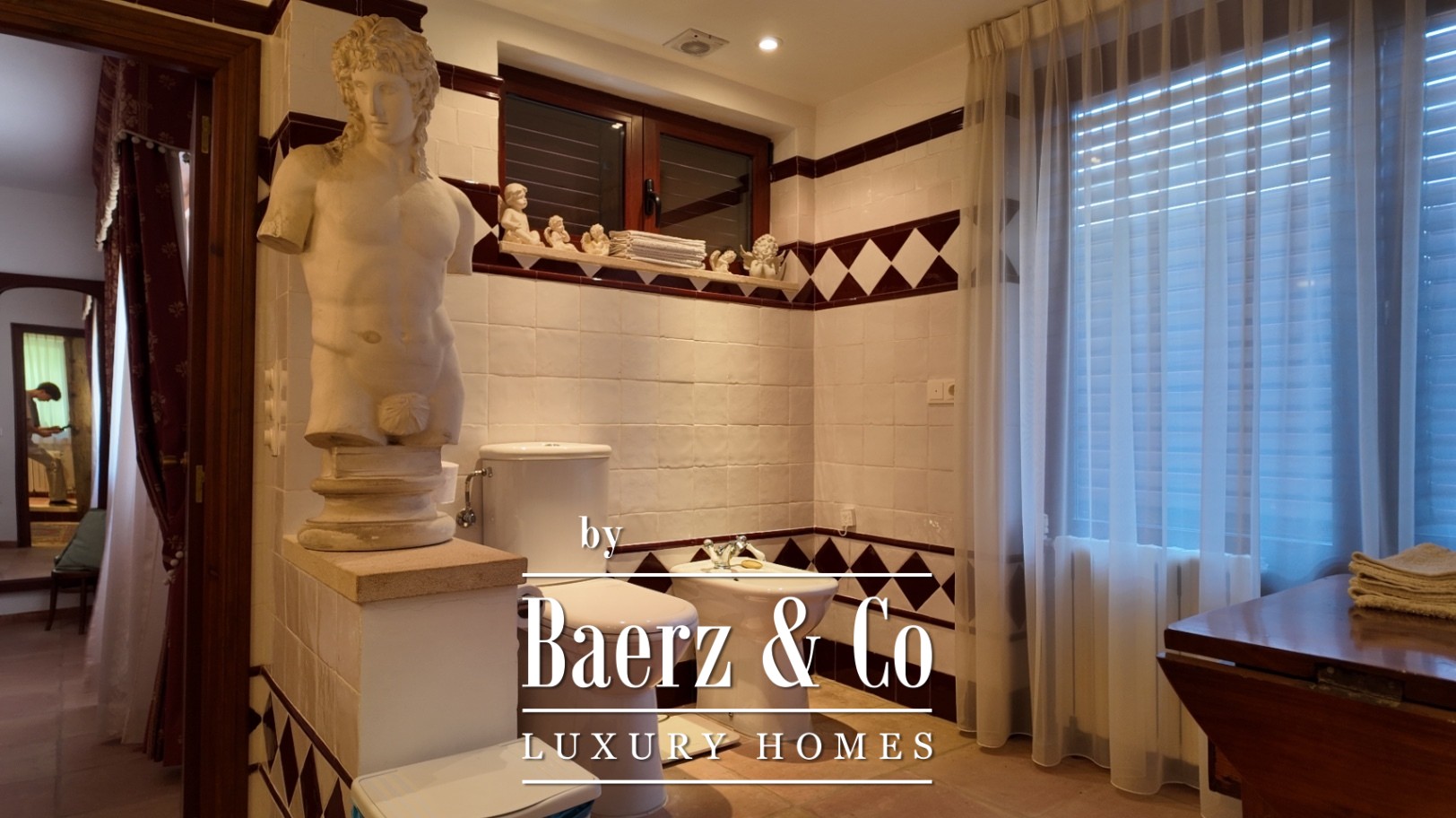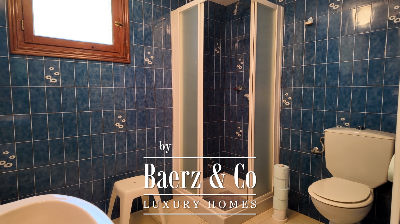 Villa Benidorm in Rocas Blancas presents a distinctive blend of tranquility and proximity, set discreetly in a gated enclave between Albir and Benidorm. This villa offers 423 m² of considered living space, with four bedrooms and three bathrooms arranged to balance spaciousness and privacy. The property includes a dedicated guest apartment on the ground floor with its own entrance, kitchen, living or bedroom space, and a bathroom—a thoughtful design for extended stays or family visits.