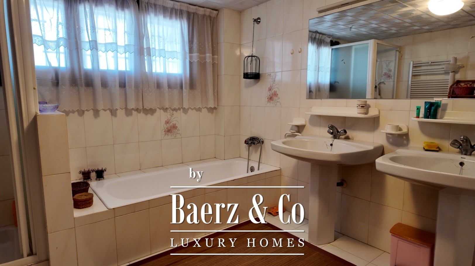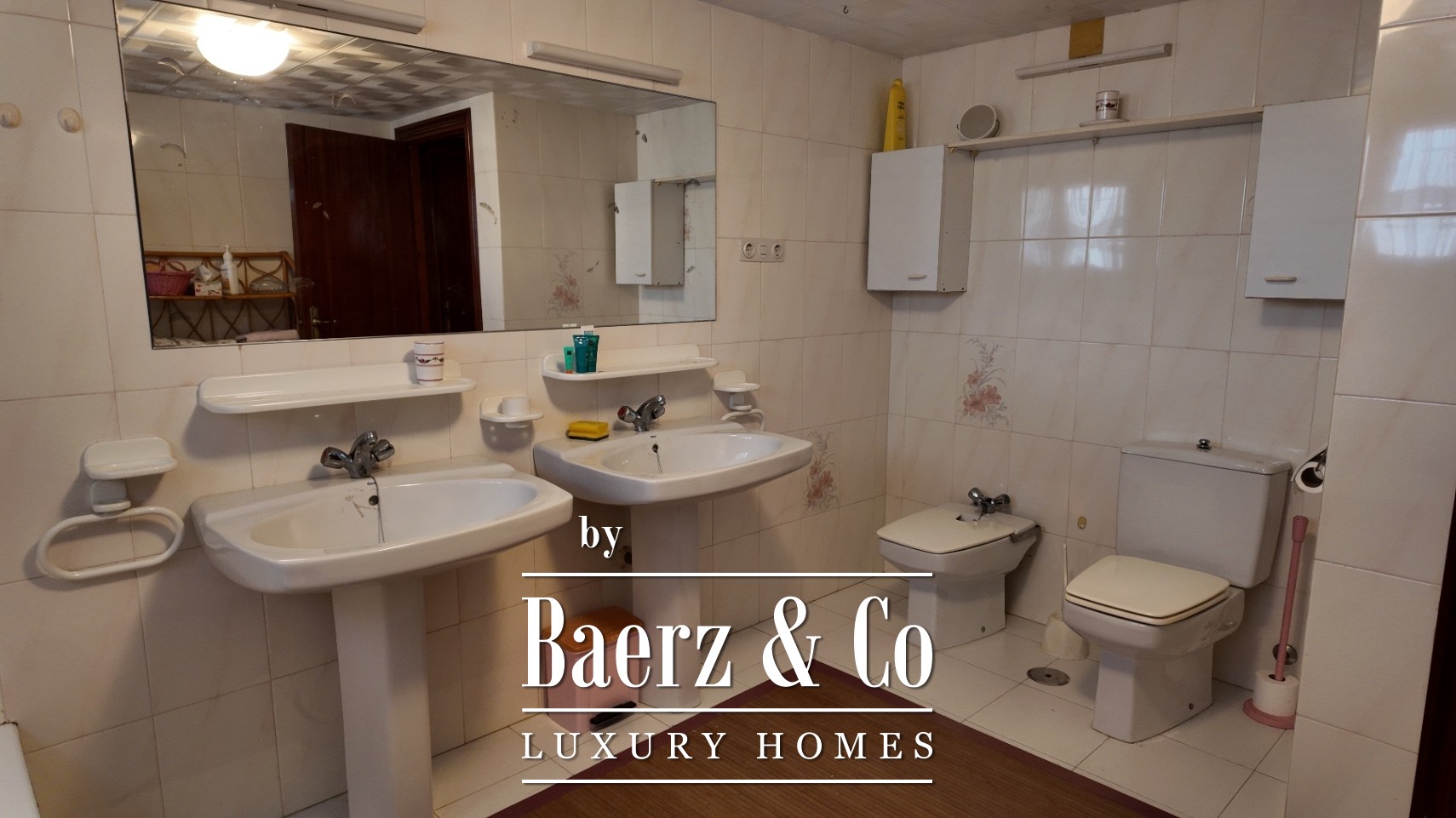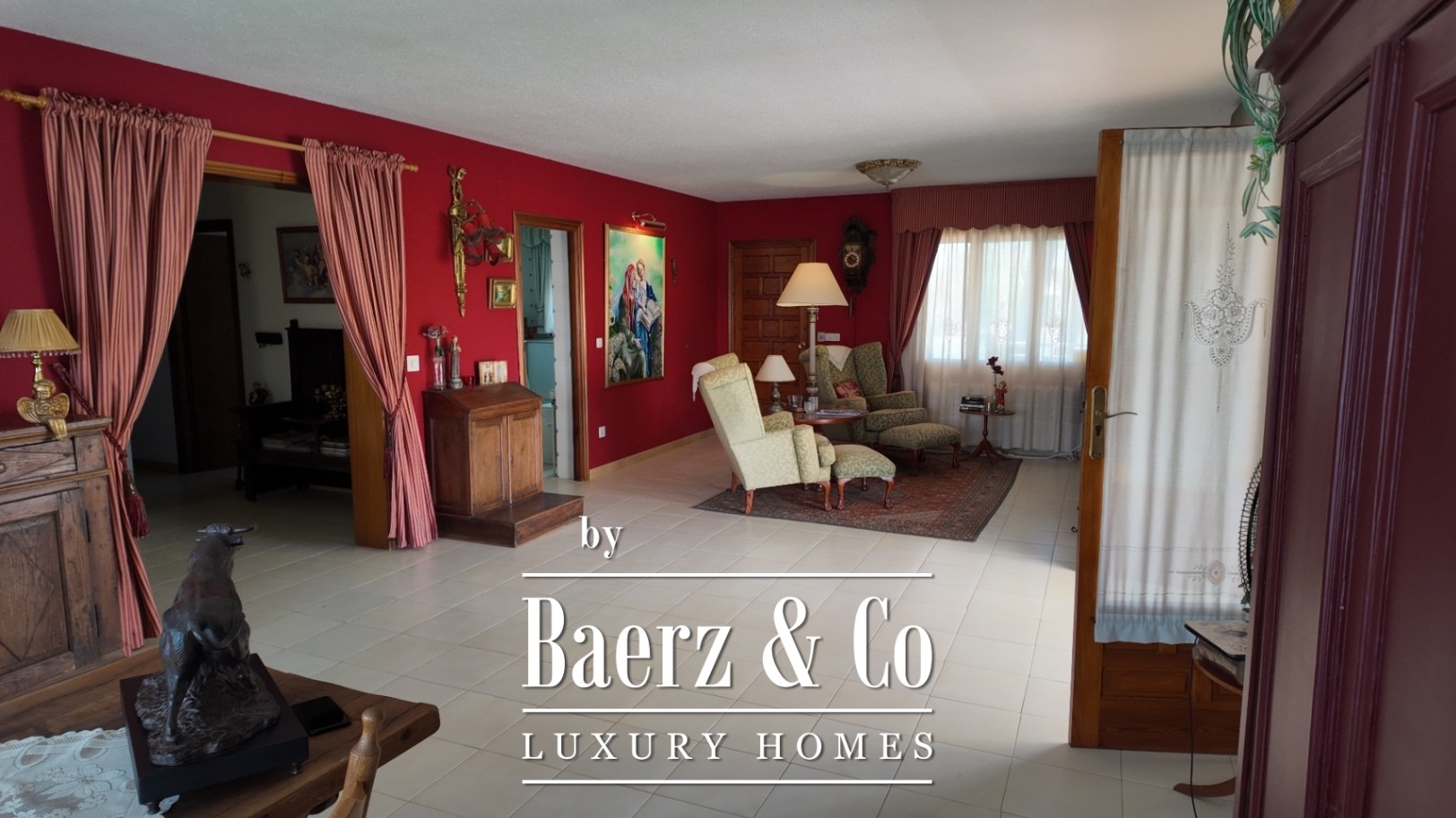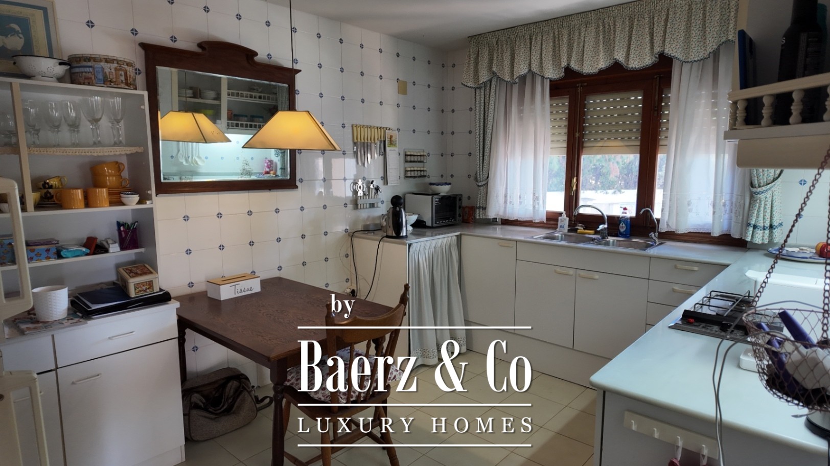Villa Benidorm in Rocas Blancas presents a distinctive blend of tranquility and proximity, set discreetly in a gated enclave between Albir and Benidorm. This villa offers 423 m² of considered living space, with four bedrooms and three bathrooms arranged to balance spaciousness and privacy. The property includes a dedicated guest apartment on the ground floor with its own entrance, kitchen, living or bedroom space, and a bathroom—a thoughtful design for extended stays or family visits.