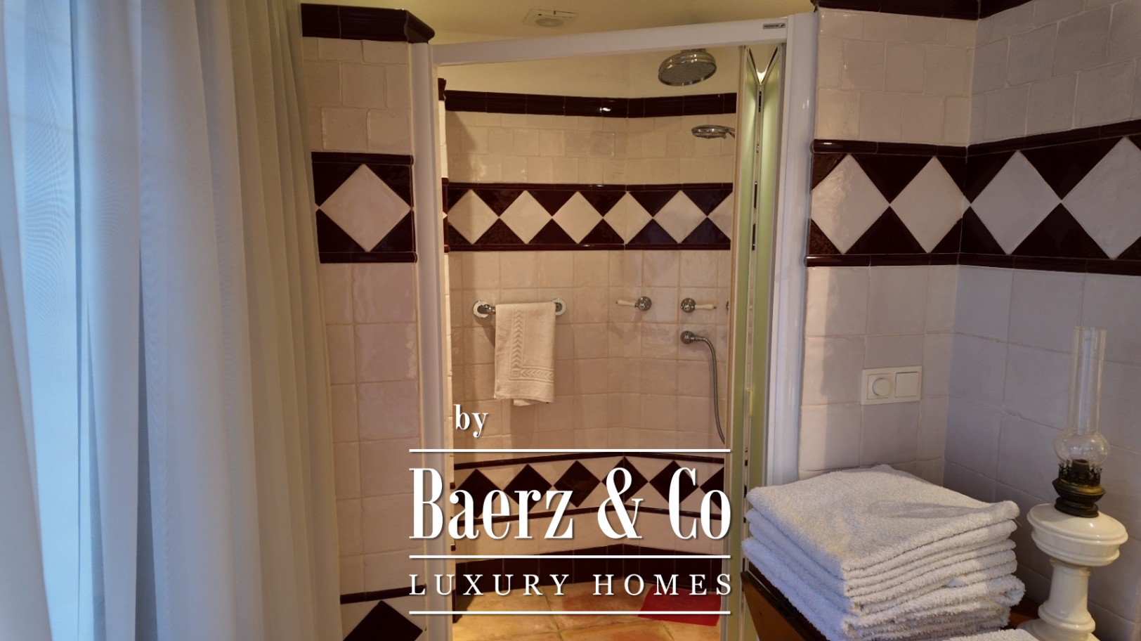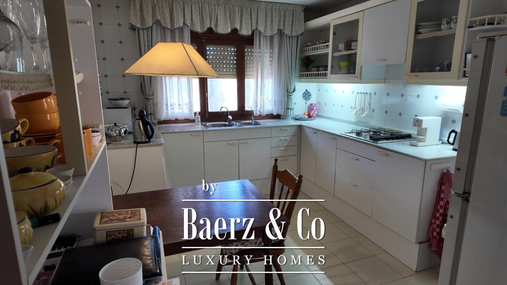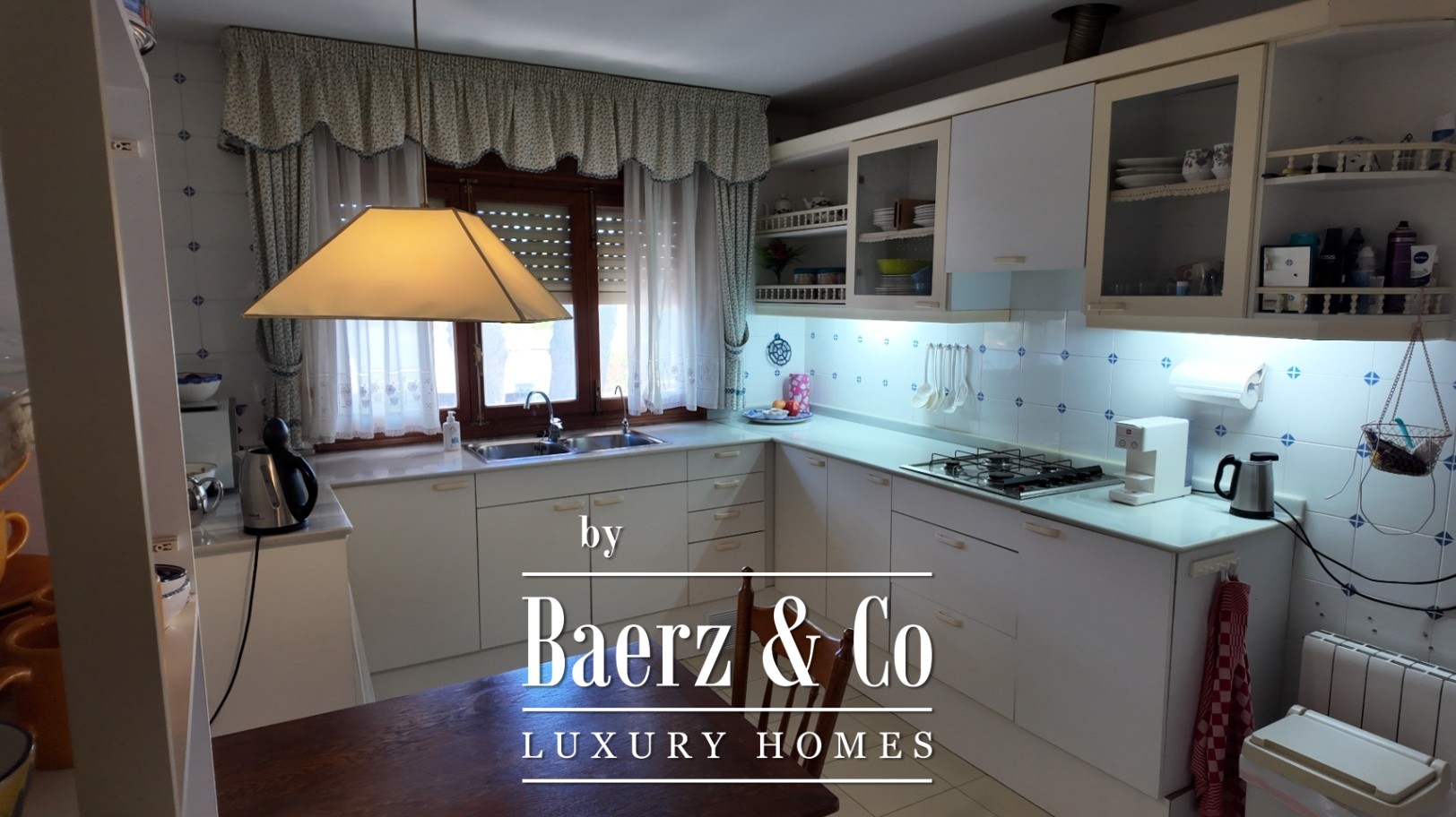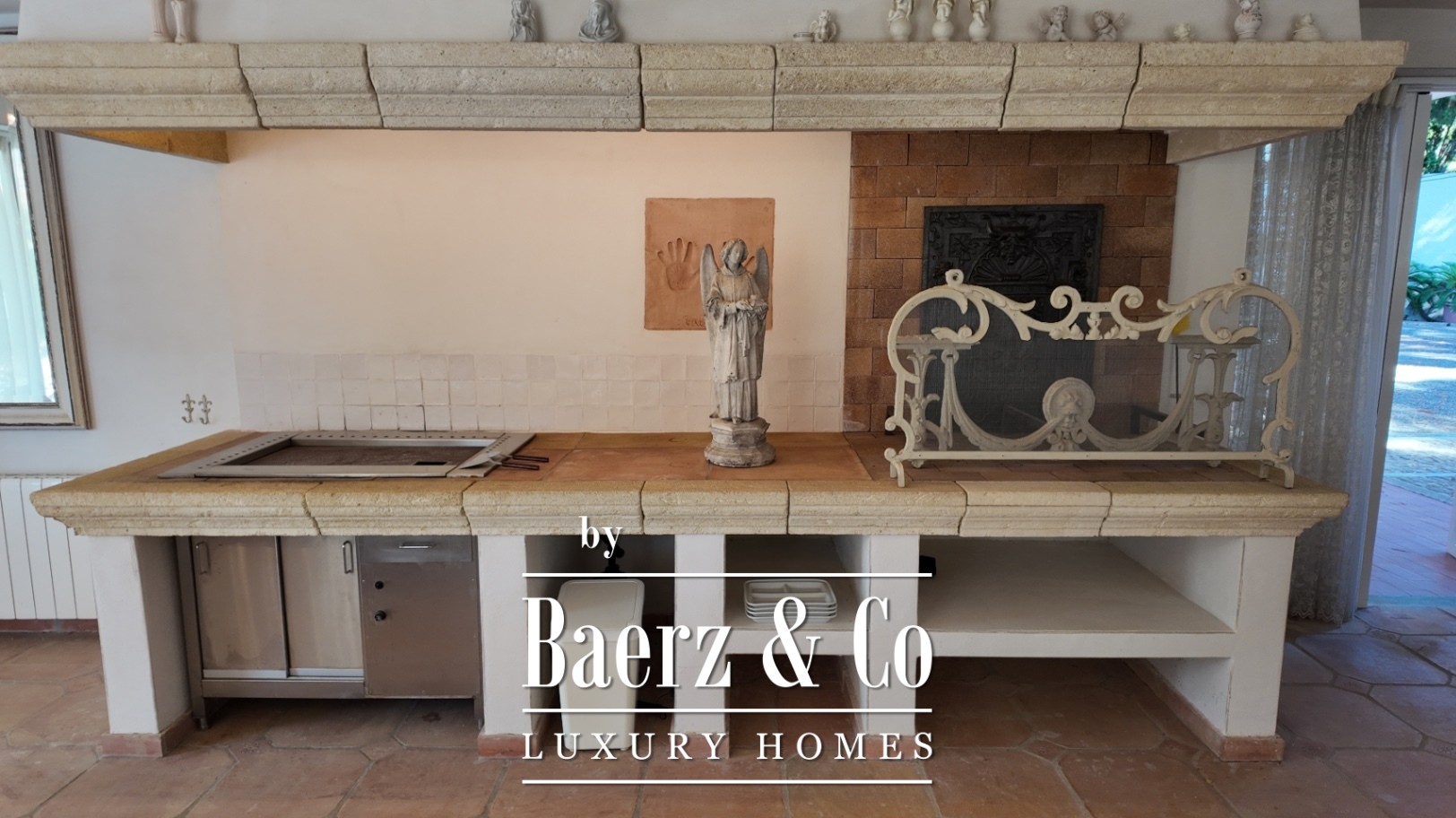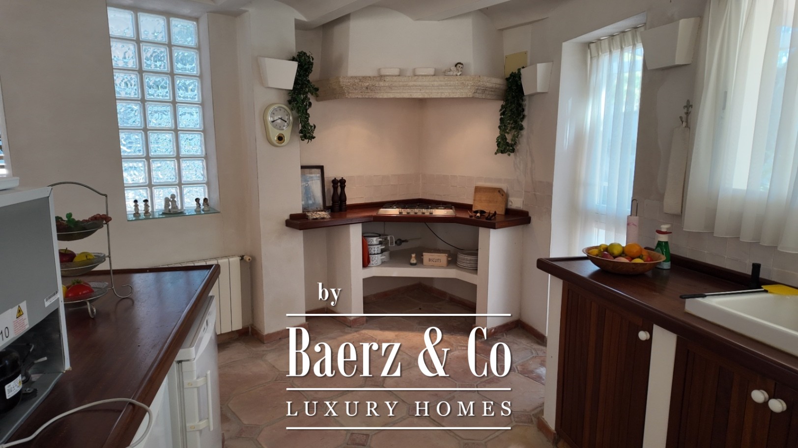 The main house features a luminous living room linking seamlessly to a terrace that frames open mountain and pool views, while the adjacent kitchen ensures everyday function with a sense of calm continuity. Outdoors, the plot spans 1,034 m², hosting a large pool, a terrace for gathering, and a summer kitchen suited for both quiet evenings and convivial gatherings.