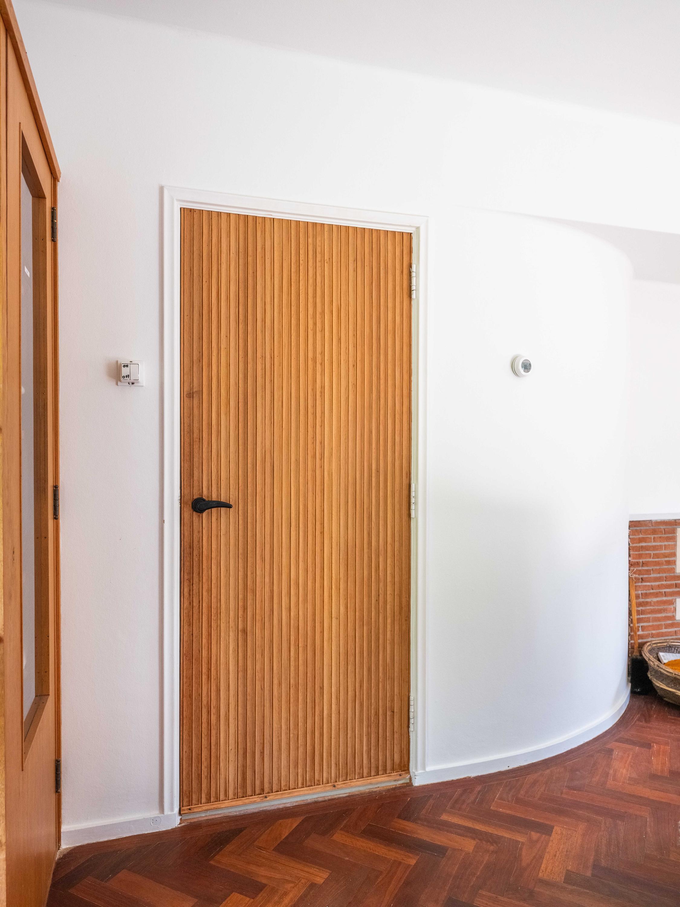 Let us take you inside. Upon entering, you will immediately notice the beautiful entrance hall with a stylish staircase with wrought iron banister, a modern toilet and a handy basement cupboard. The living room is light and cosy with original wooden parquet flooring, a wood-burning stove and French doors opening onto the green garden. Built-in custom wooden cupboards add extra charm and storage space.