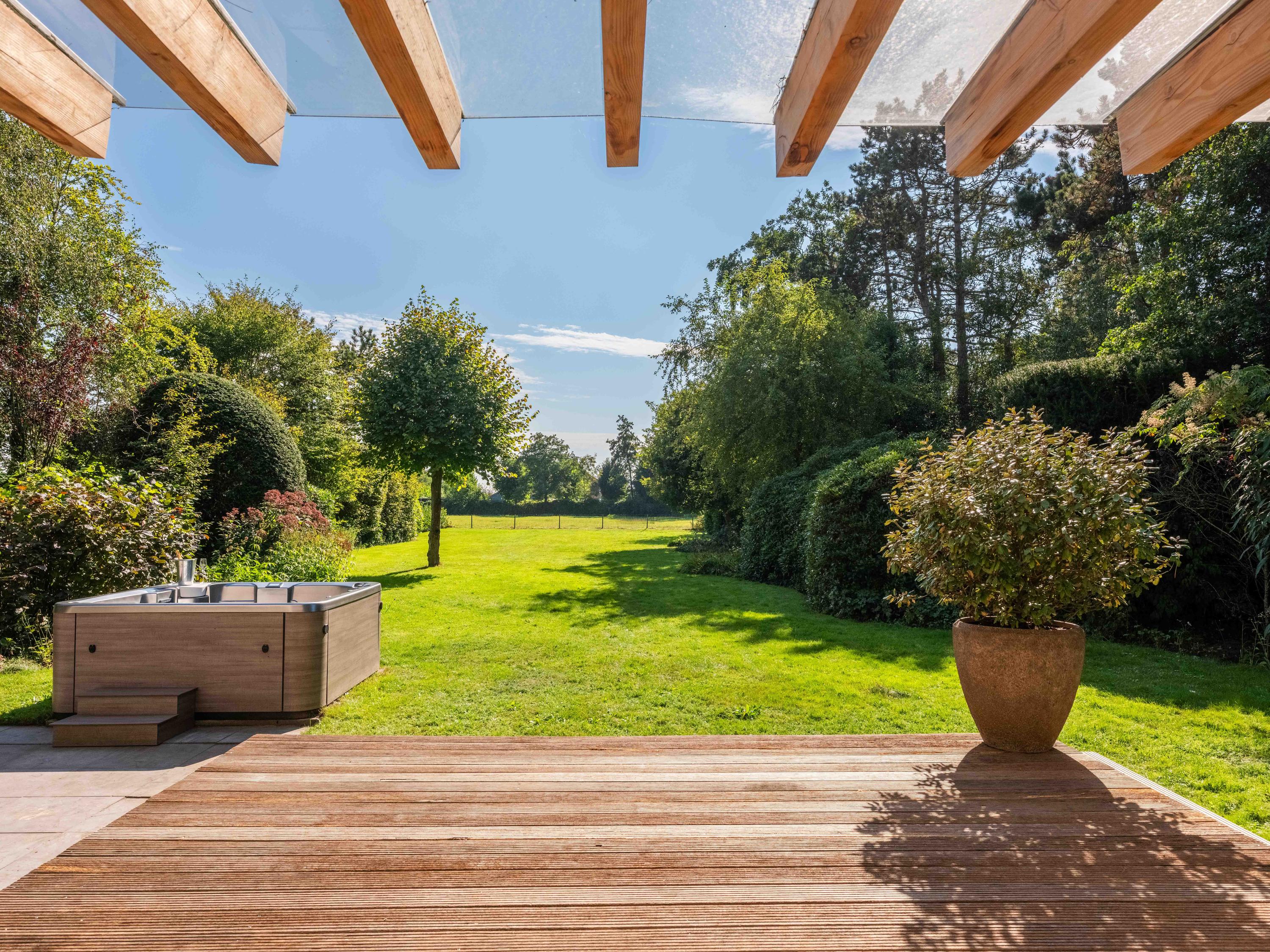 At the front is ample space for parking several cars on site. At the rear of the villa you will find a beautiful spacious garden with several terraces where you can enjoy the sun, nature and the beautiful view of the meadow behind.