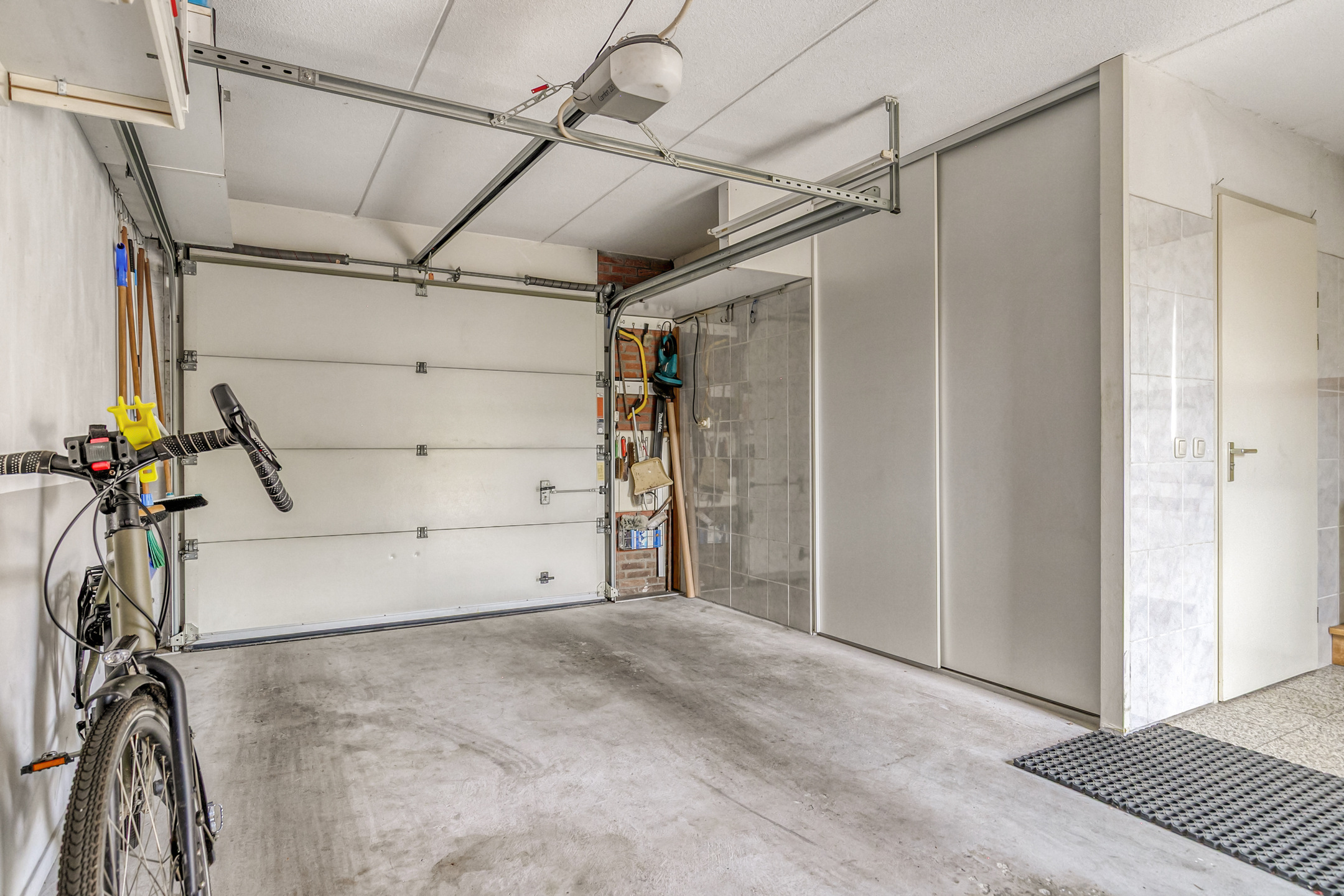 The garage is fitted with an electrically operated door, built-in cupboards, and a connection for a washing machine. From the garage, there is access to a practical utility room with a sink.