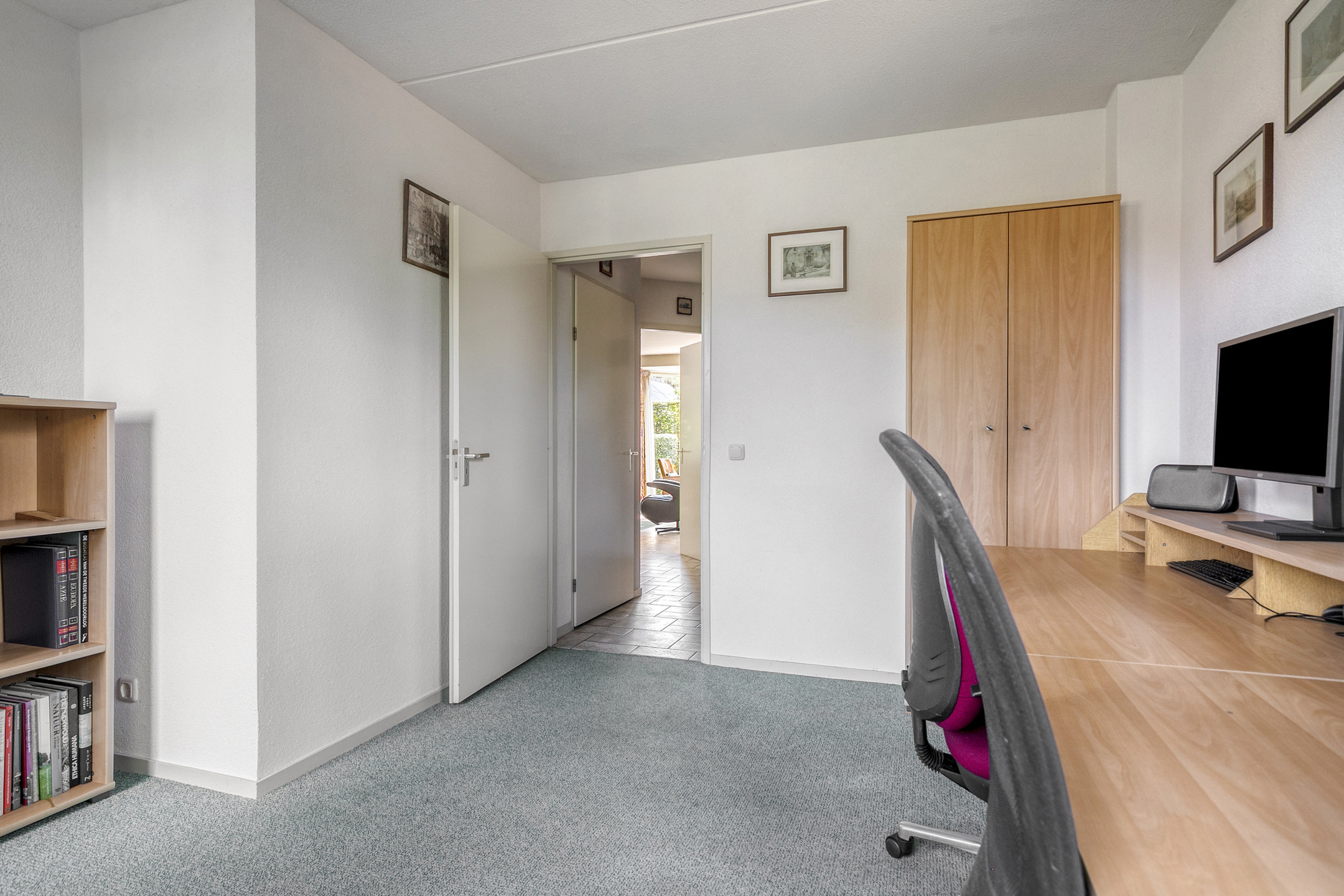 The study features carpet flooring and an electric shutter, offering a quiet spot for working from home or hobbies.