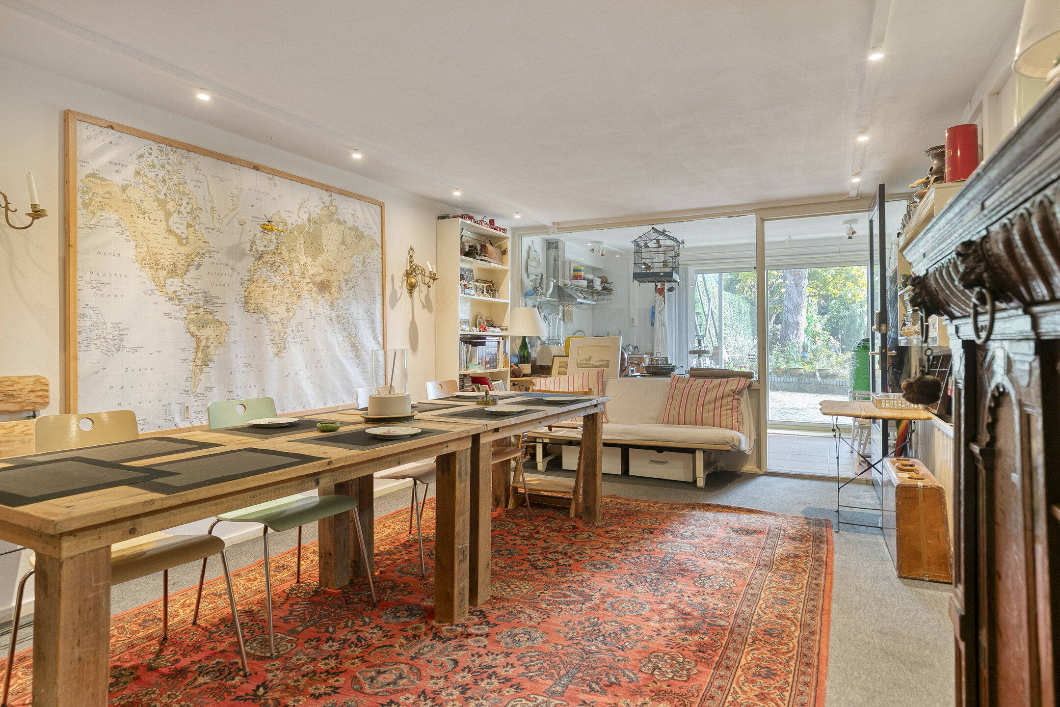 There is also a second kitchen with gas stove, refrigerator, dishwasher and sink with mixer tap. Sliding doors provide direct access to the expansive garden. A versatile floor, ideal for work, relaxation or guest accommodation.