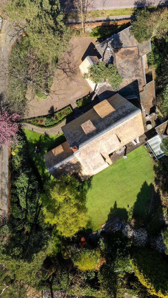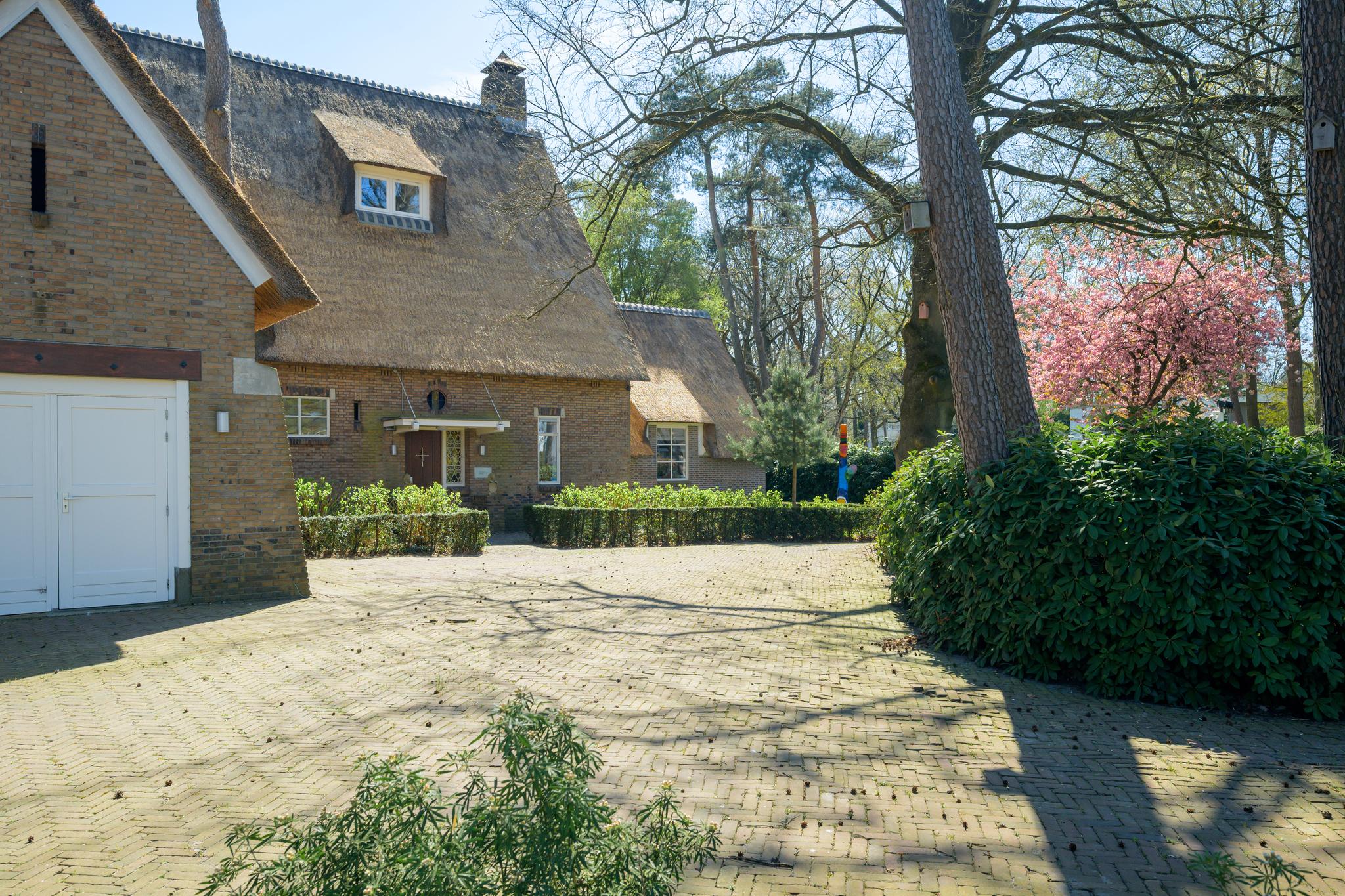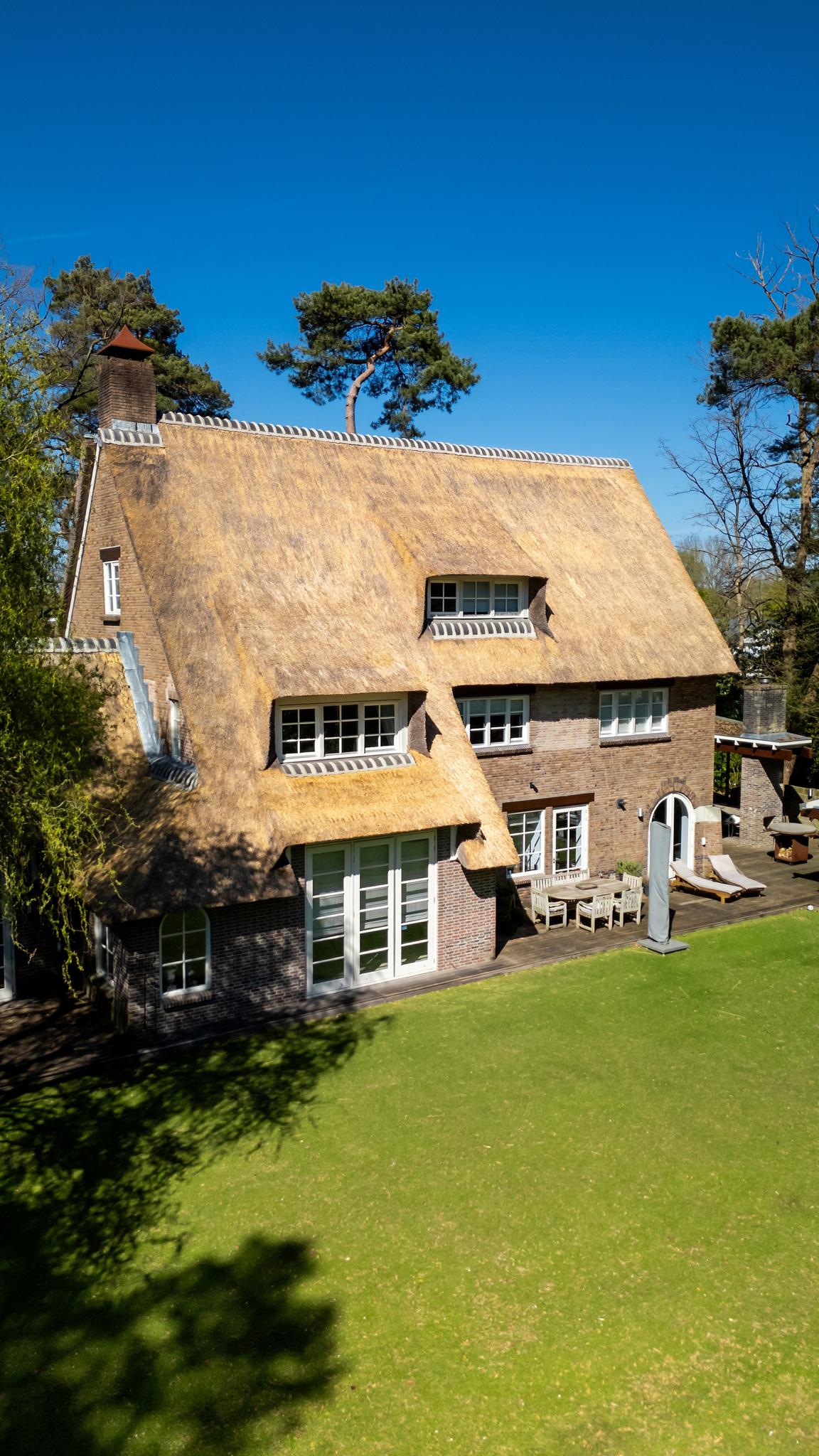 Very unique, perfectly maintained, thatched country house with, among other things, a luxurious wellness area with indoor swimming pool and fantastic outdoor space, situated at a prominent point in the middle of the popular and stately residential area "Ruitersbos" with its beautiful trees and within walking distance of the Mastbos.