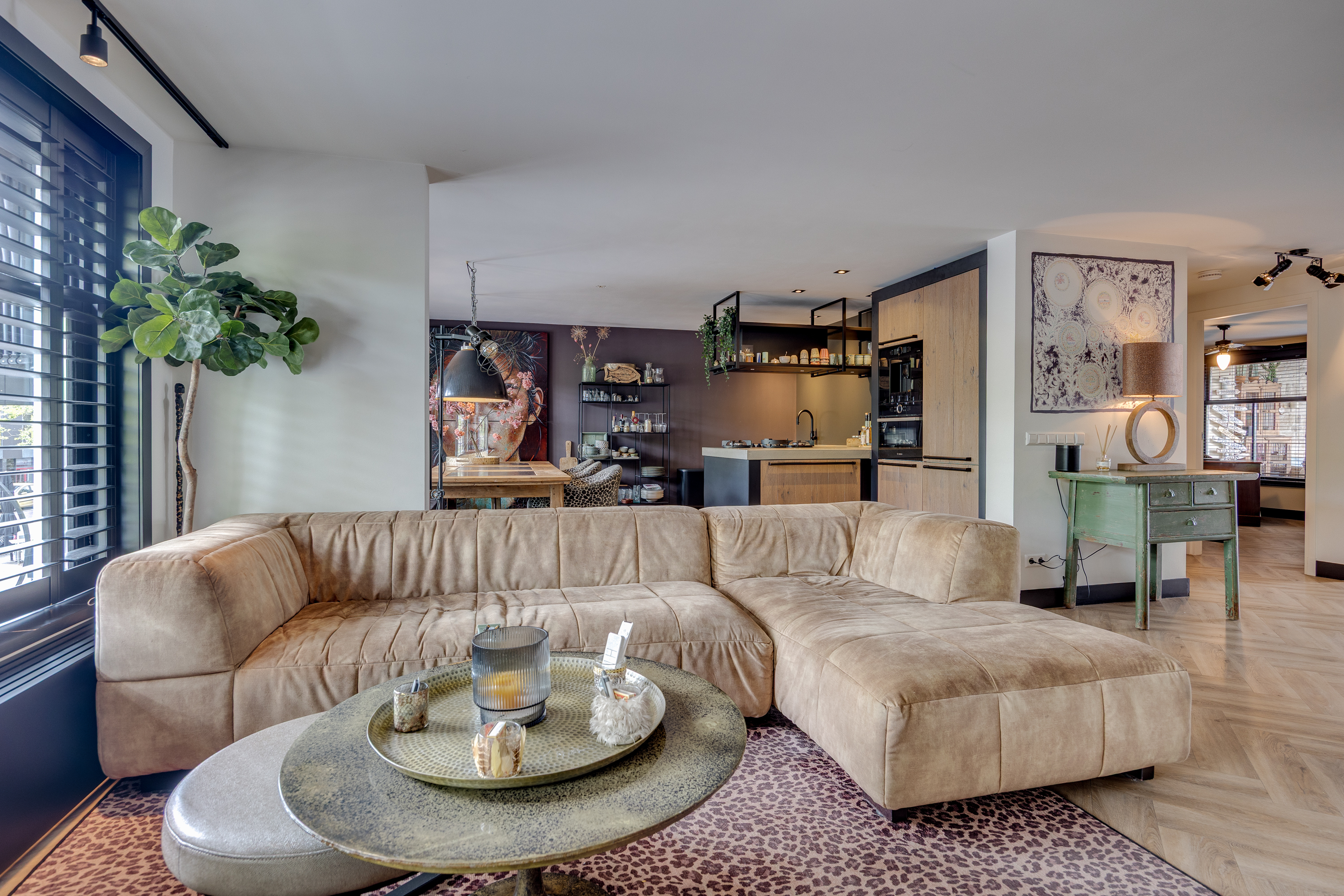 The spacious living room at the front is a real eye-catcher, with large windows that provide an abundance of natural light and offer a beautiful view of the lively Kerkbrink. The stylish PVC flooring that runs throughout the entire living area is immediately noticeable. This flooring combines a warm, soothing look with practical features such as durability and ease of maintenance. It forms the perfect basis for any interior. The modern gas fireplace creates a cozy ambiance, ideal for atmospheric evenings. In addition, the air conditioning ensures that the indoor climate remains pleasant throughout the year. Everything about this floor exudes comfort, style, and luxury.